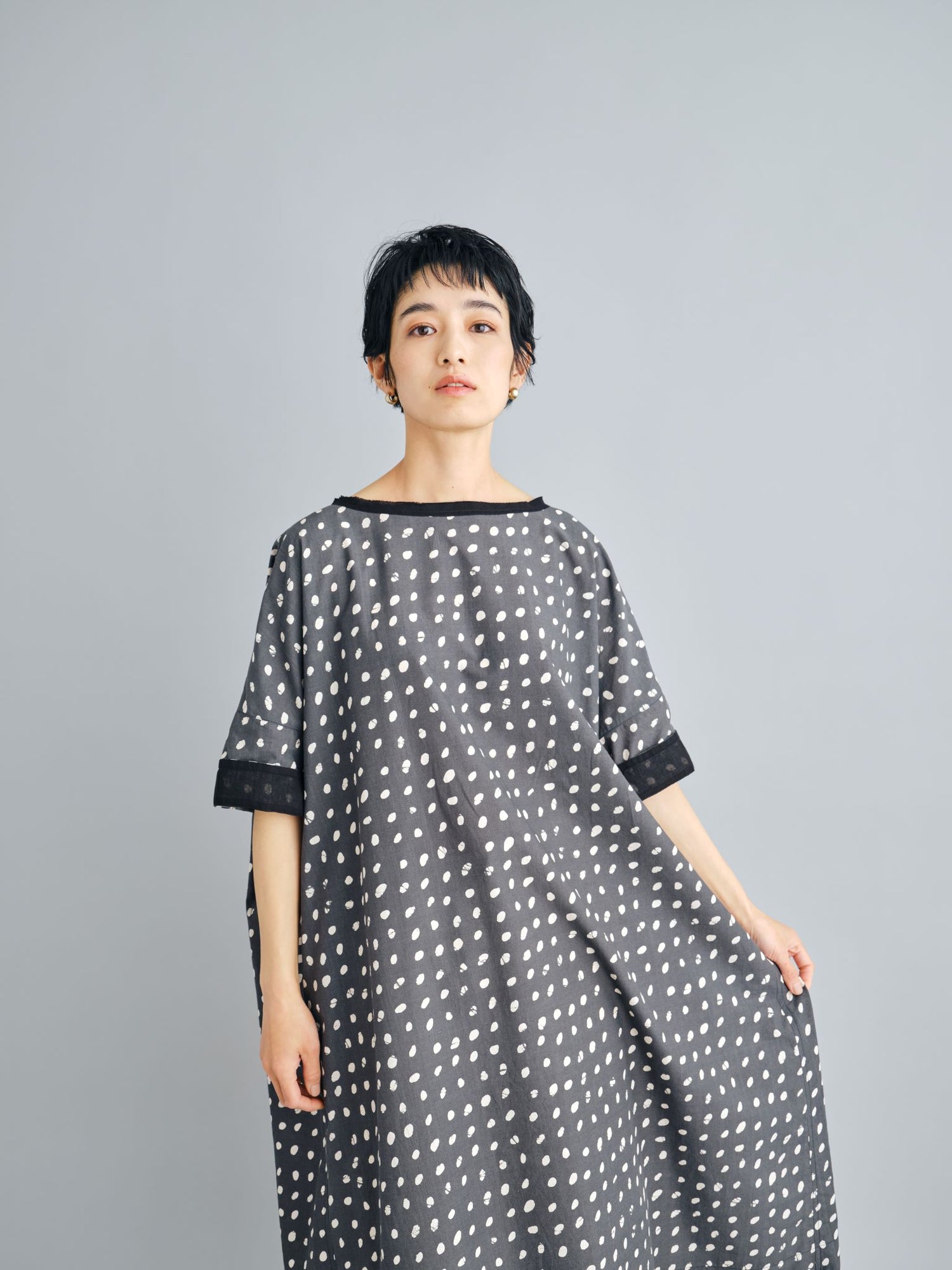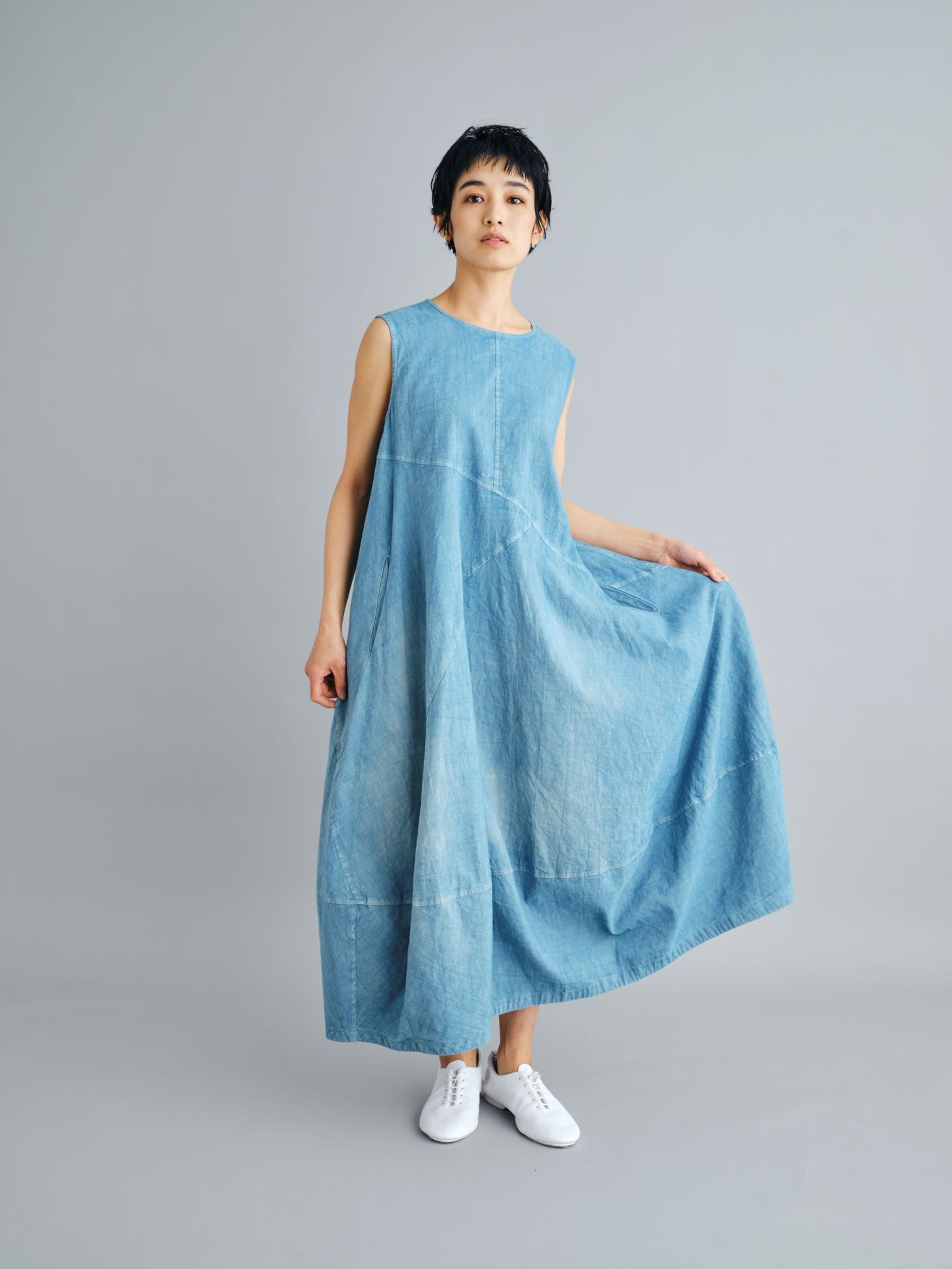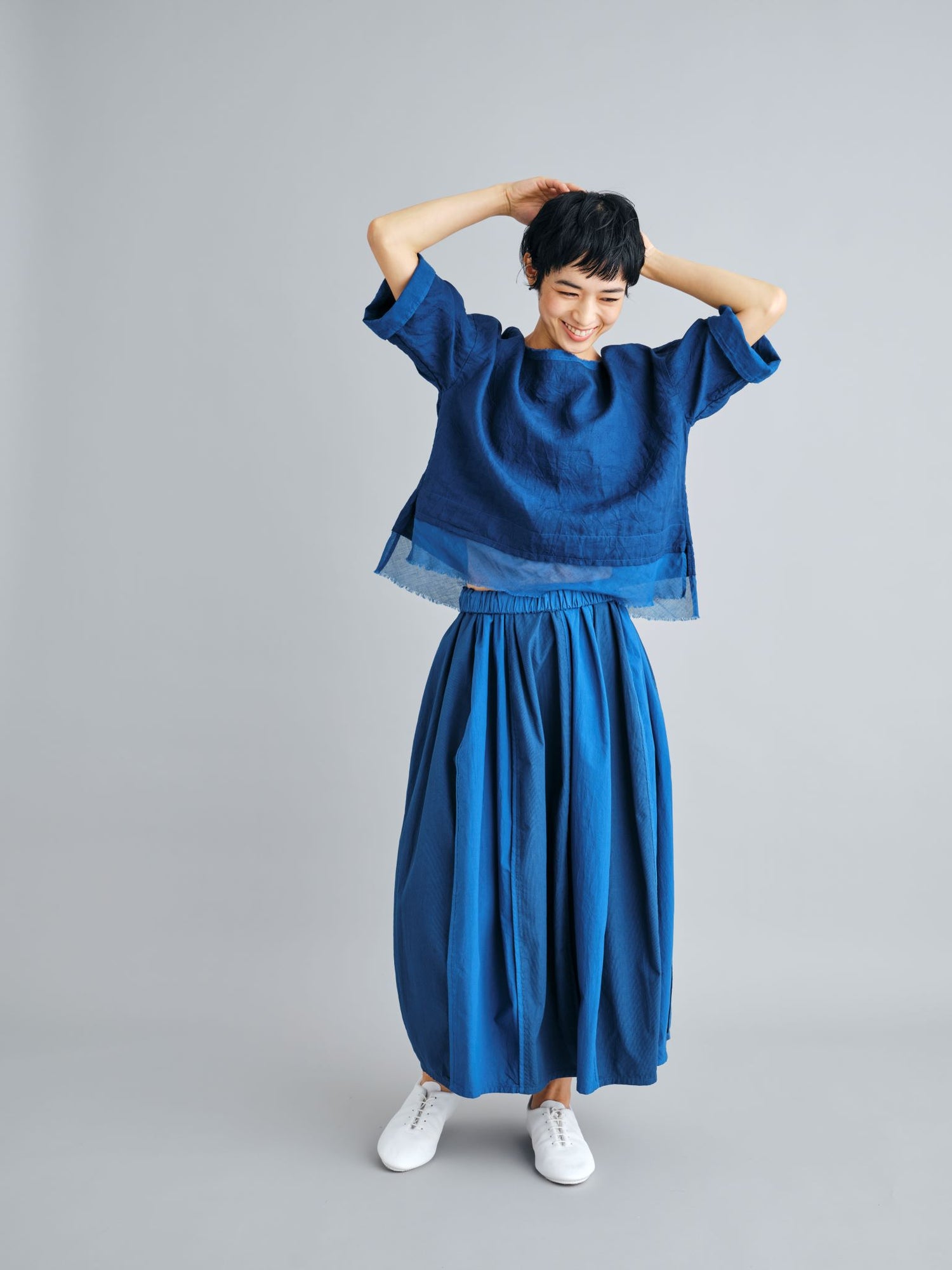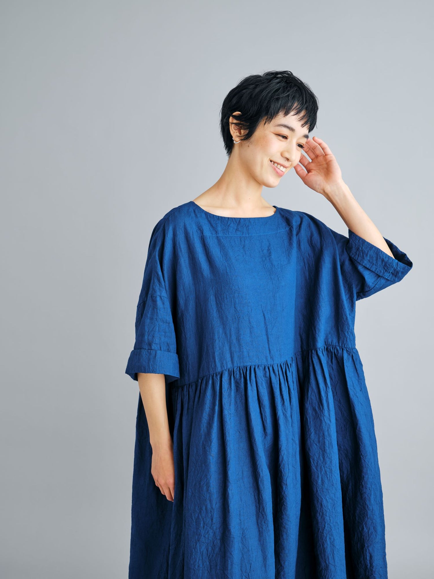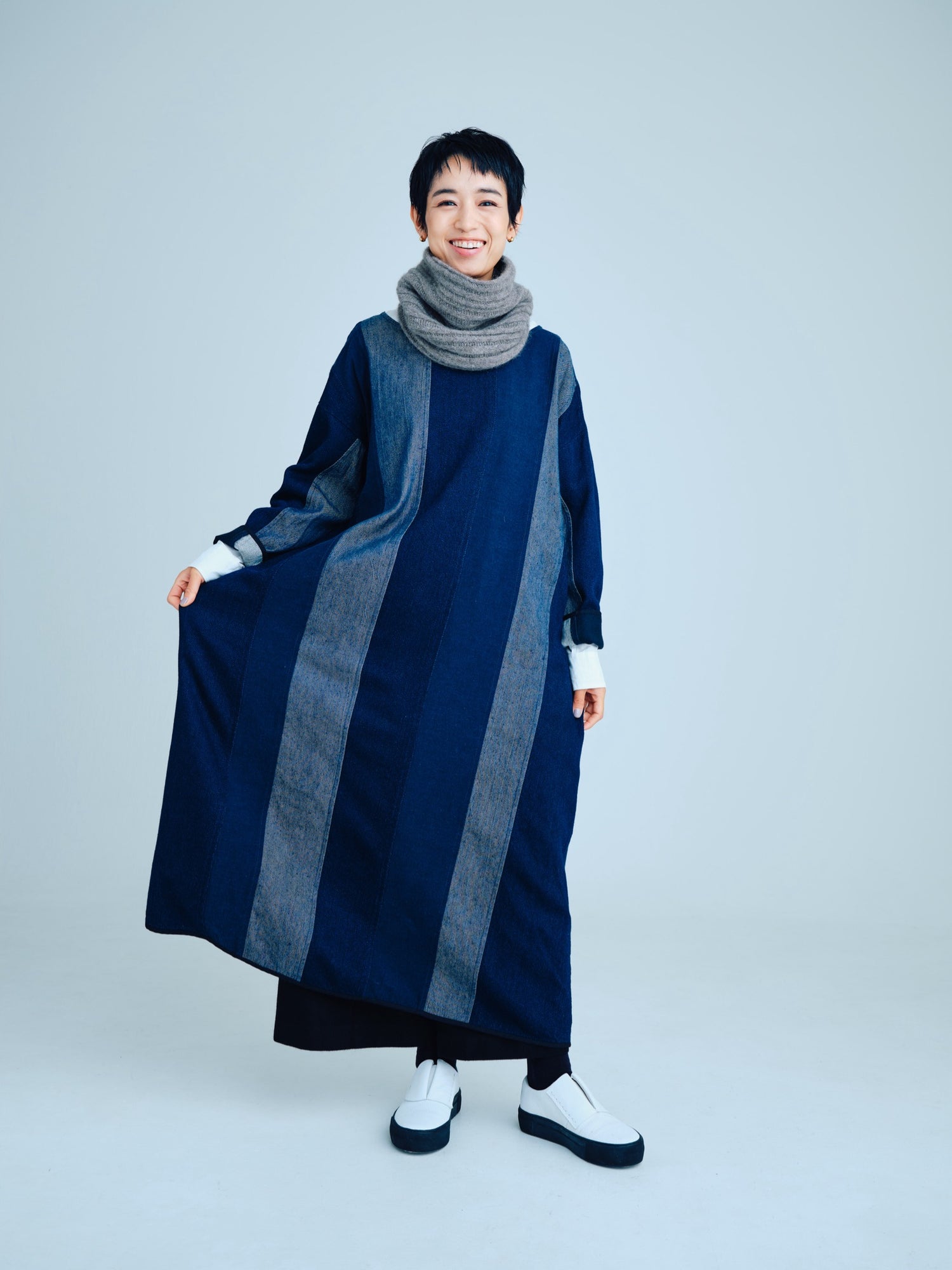 エゴンシーレ 『小さな街3』オーストリアの画家・エゴンシーレの作品『小さな街3』からインスピレーションを受けて、今期のカラーと染色方法を作成。エゴンシーレの絵画に見られる特徴的なタッチや凹凸感を、「ムラ染め」で表現しました。
