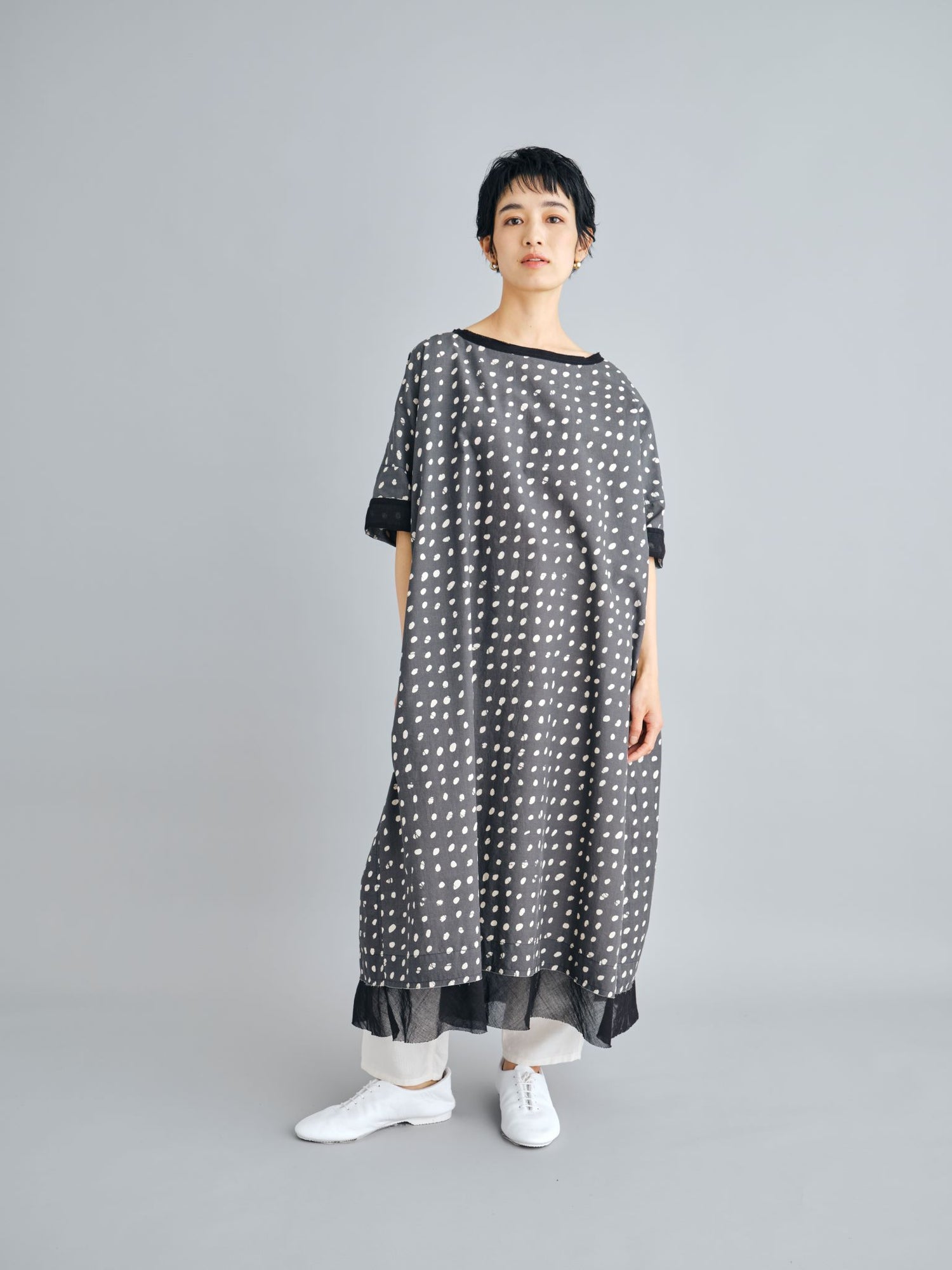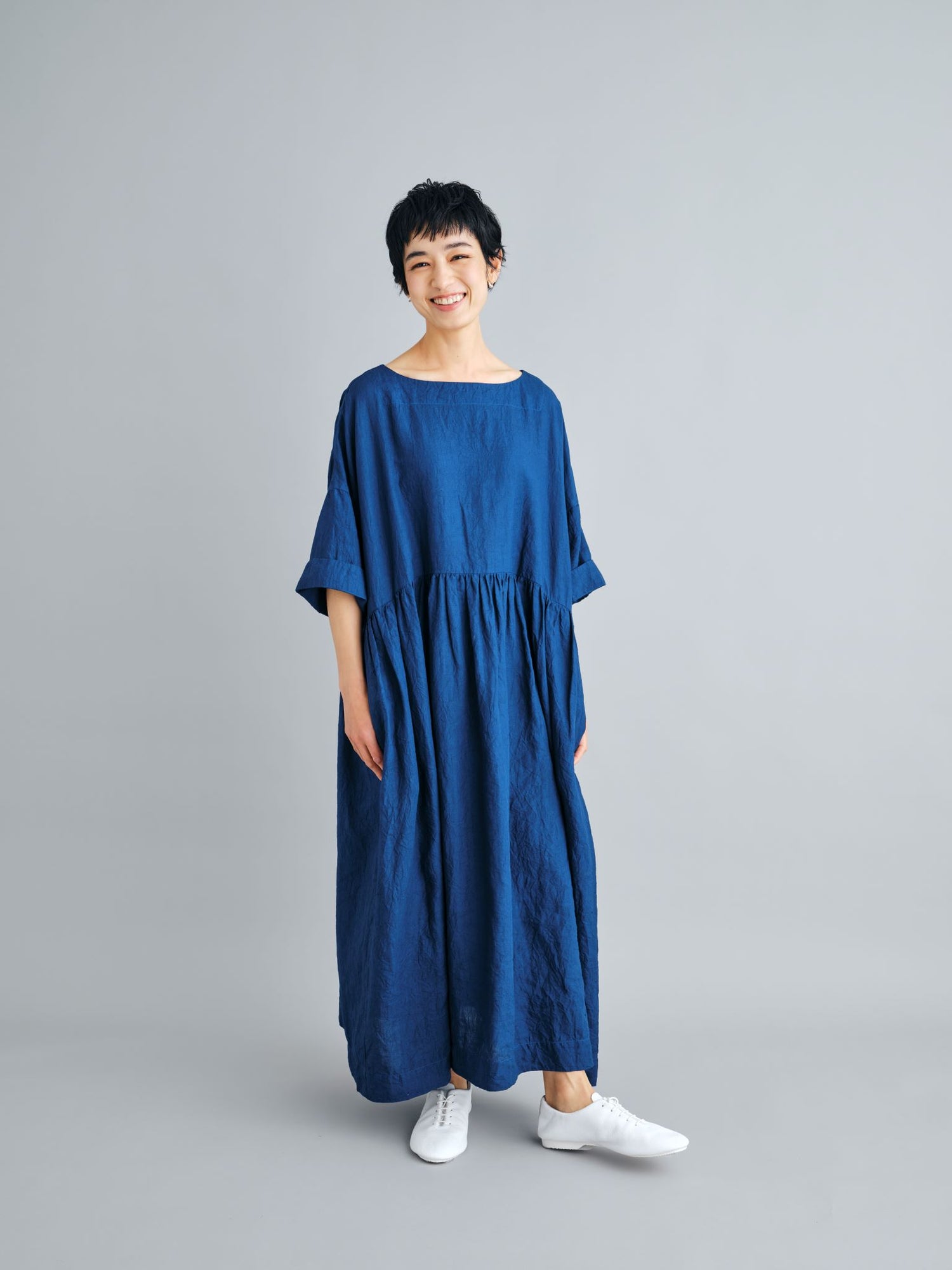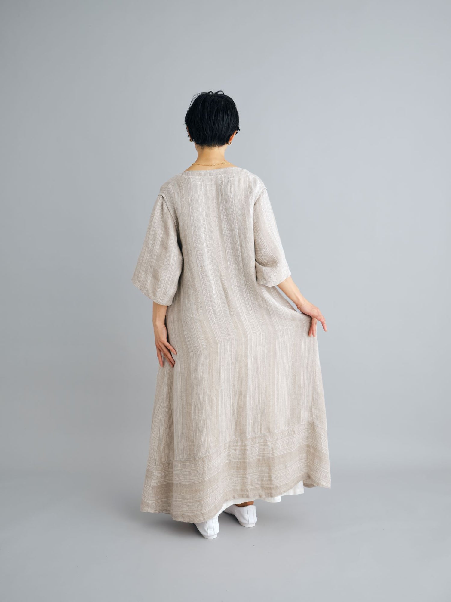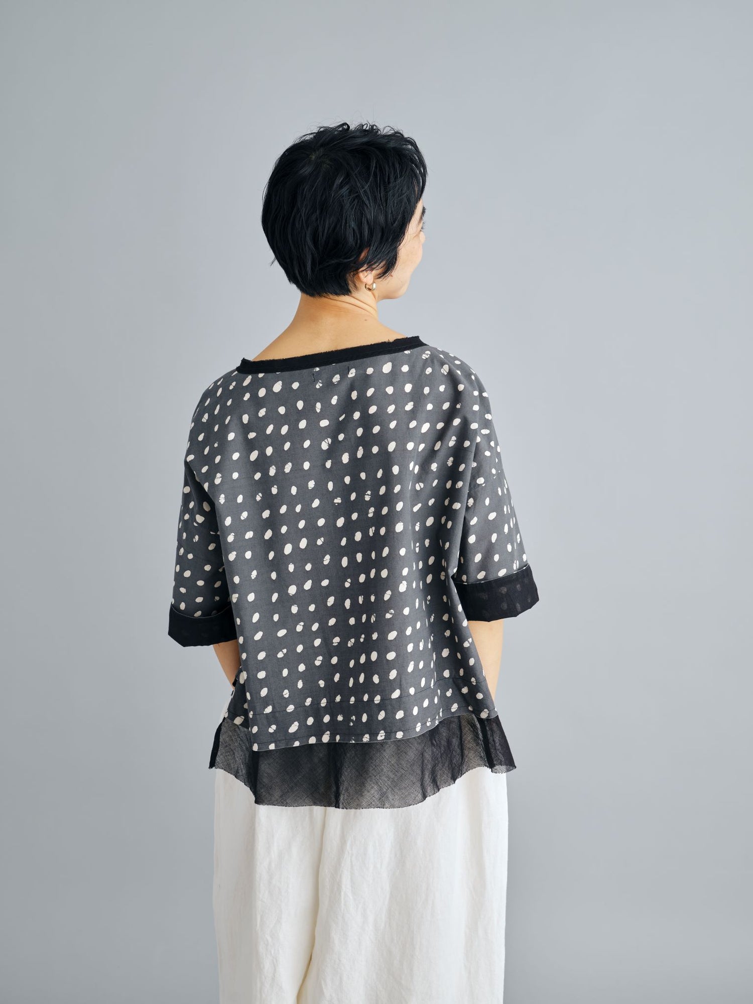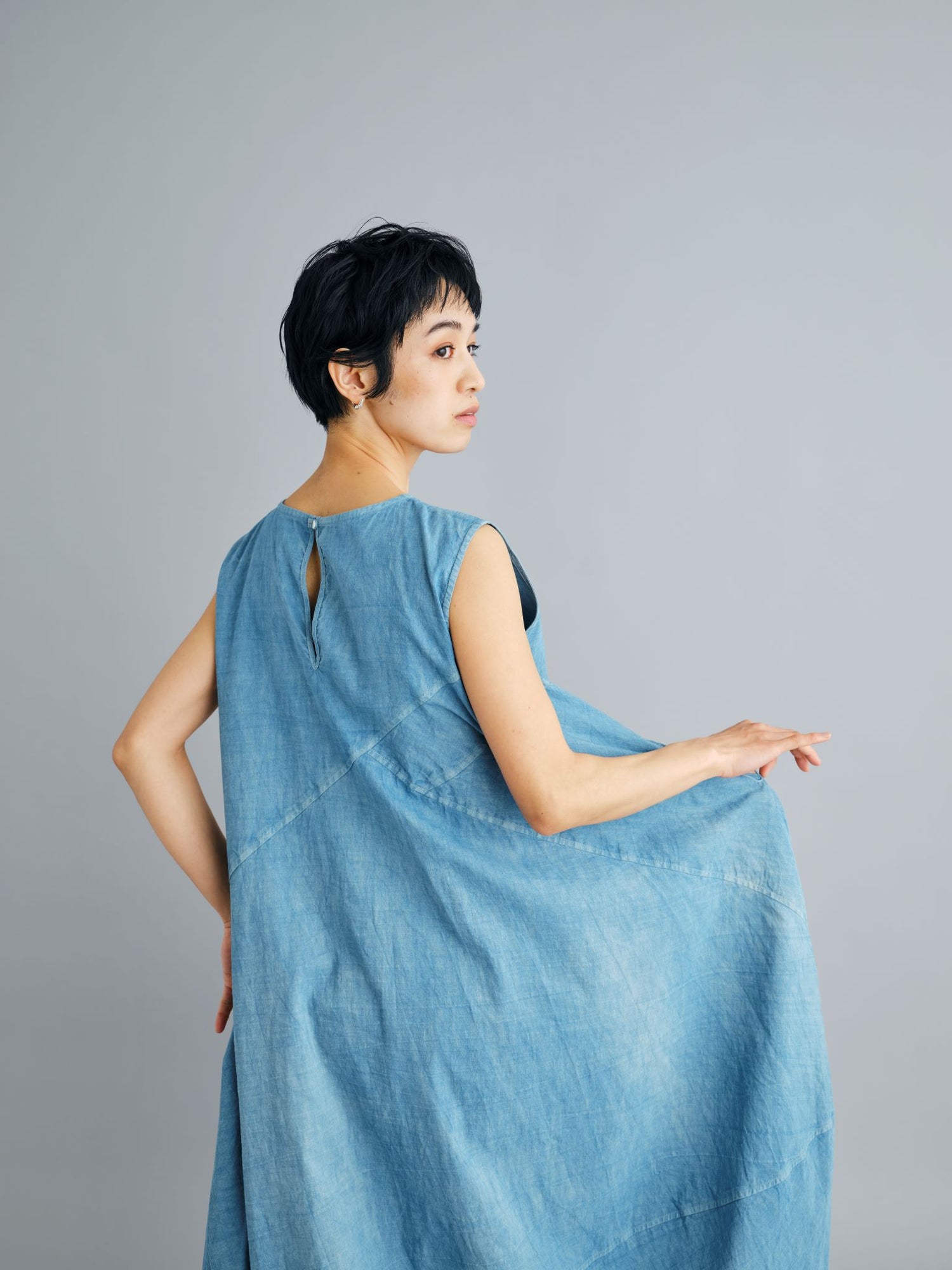 エゴンシーレ 『小さな街3』オーストリアの画家・エゴンシーレの作品『小さな街3』からインスピレーションを受けて、今期のカラーと染色方法を作成。エゴンシーレの絵画に見られる特徴的なタッチや凹凸感を、「ムラ染め」で表現しました。