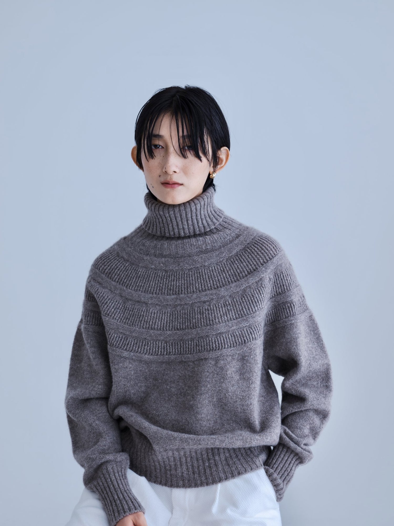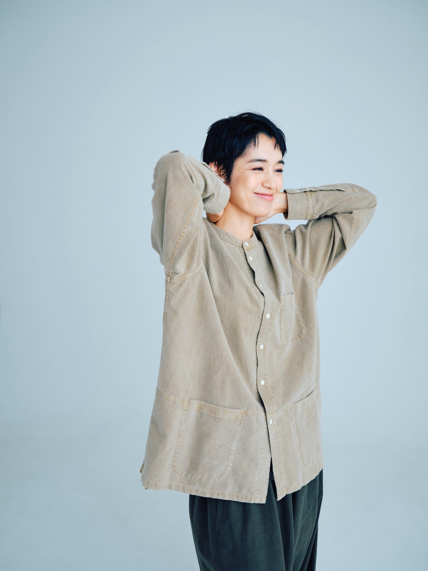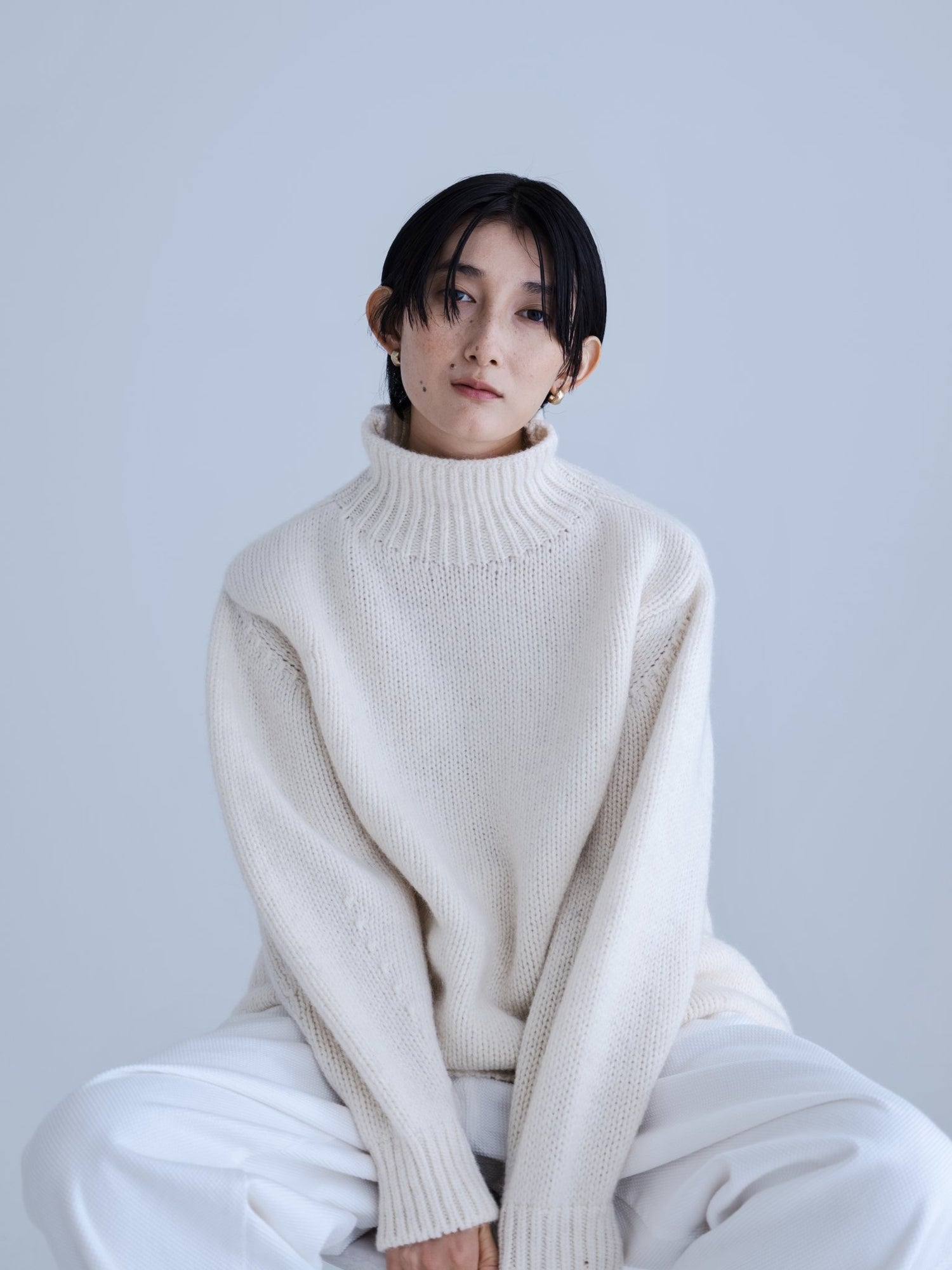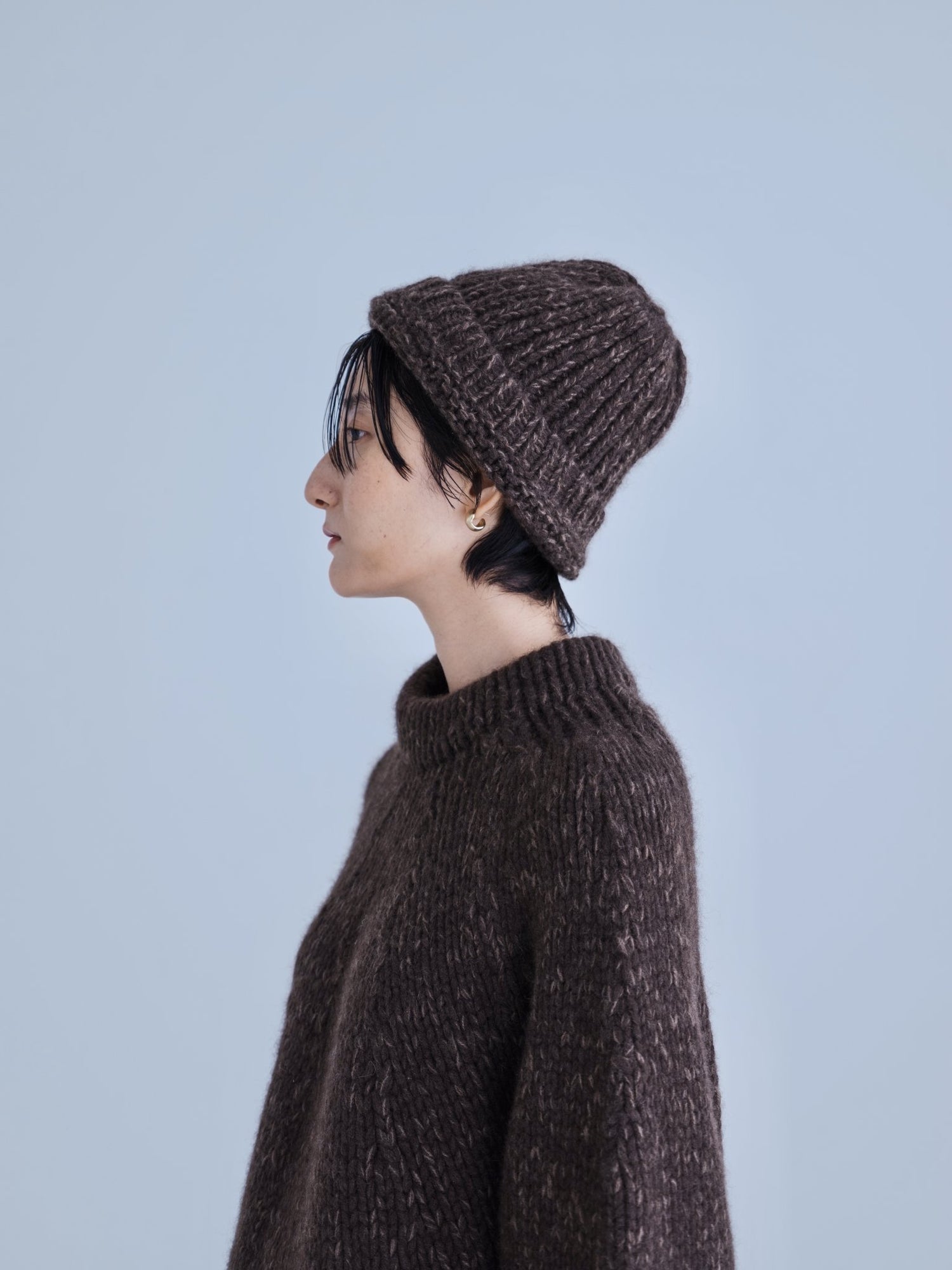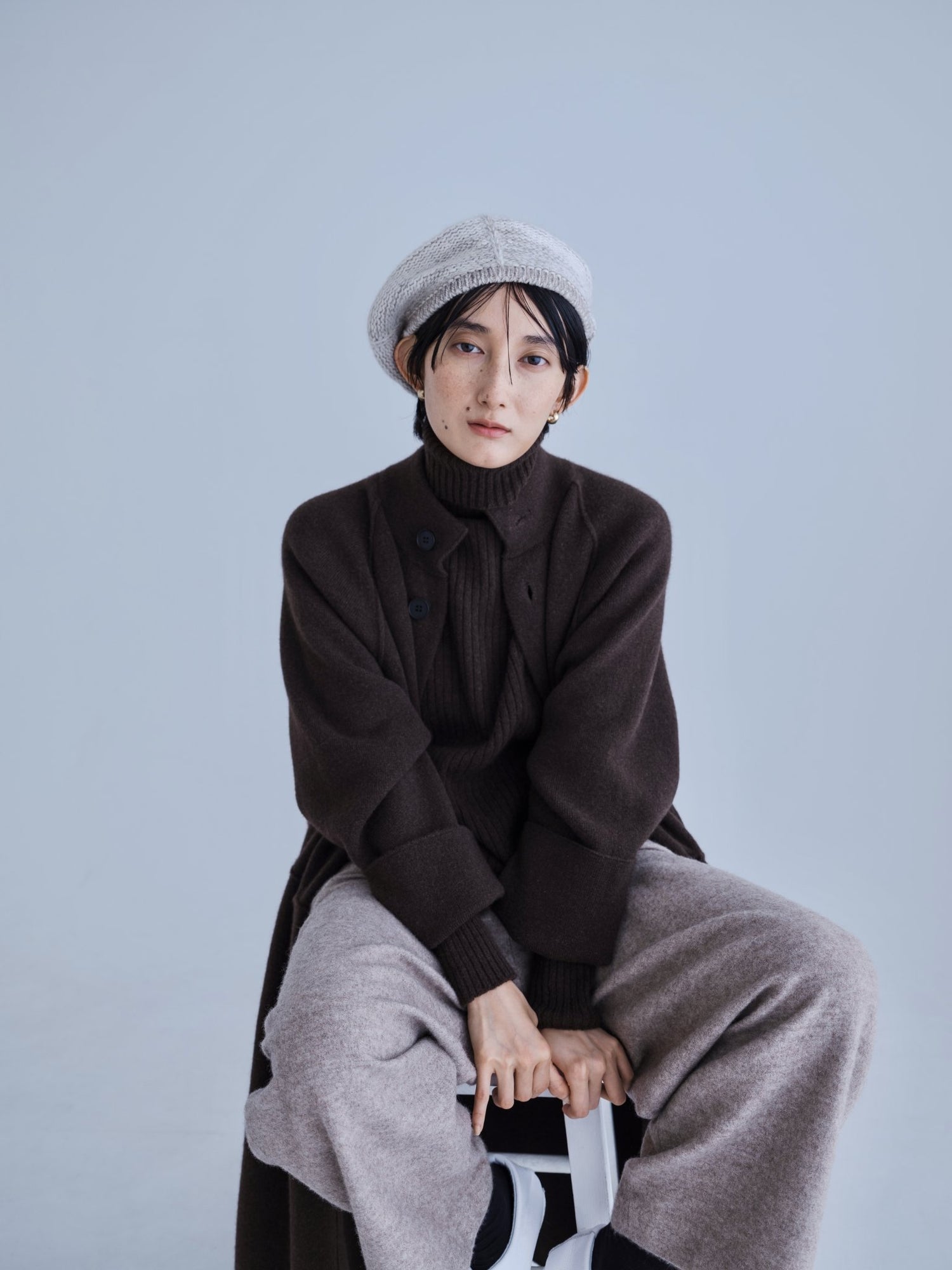 モンゴリアンウール、ヤク、カシミヤ、キャメル など、モンゴルの大自然でのびのび育った動物たちの原毛を、ニットはもちろん、布帛にも贅沢に使用しました。モンゴリアンウールの良さを存分に感じてもらえるよう、初秋から活躍する薄手から、真冬まであたたかくお過ごしいただけるような、ふっくらとしたウール素材まで幅広くご用意しました。ウール素材には起毛加工を施し、見た目からもあたたかさを感じていただけるようにお作りしています。