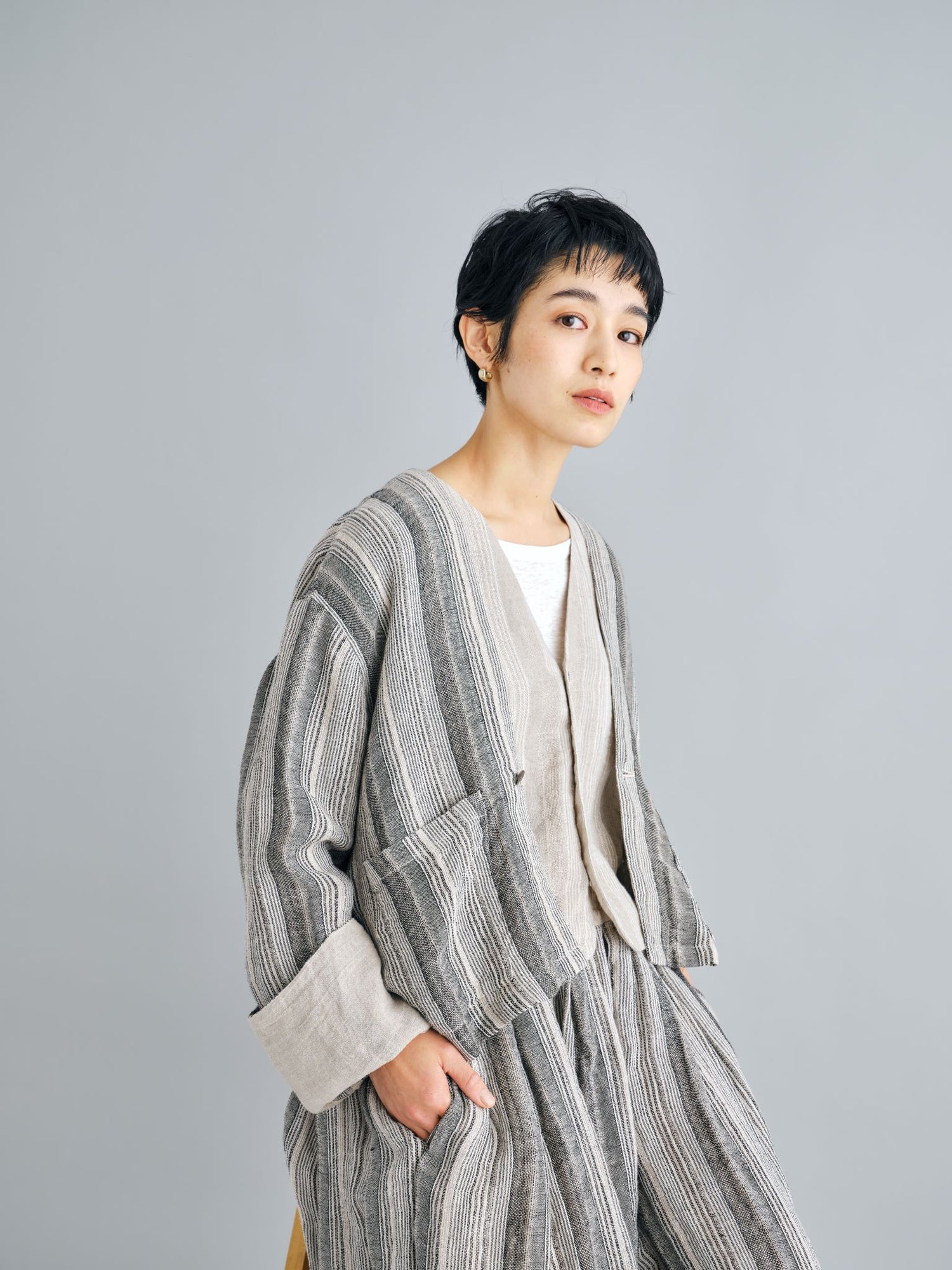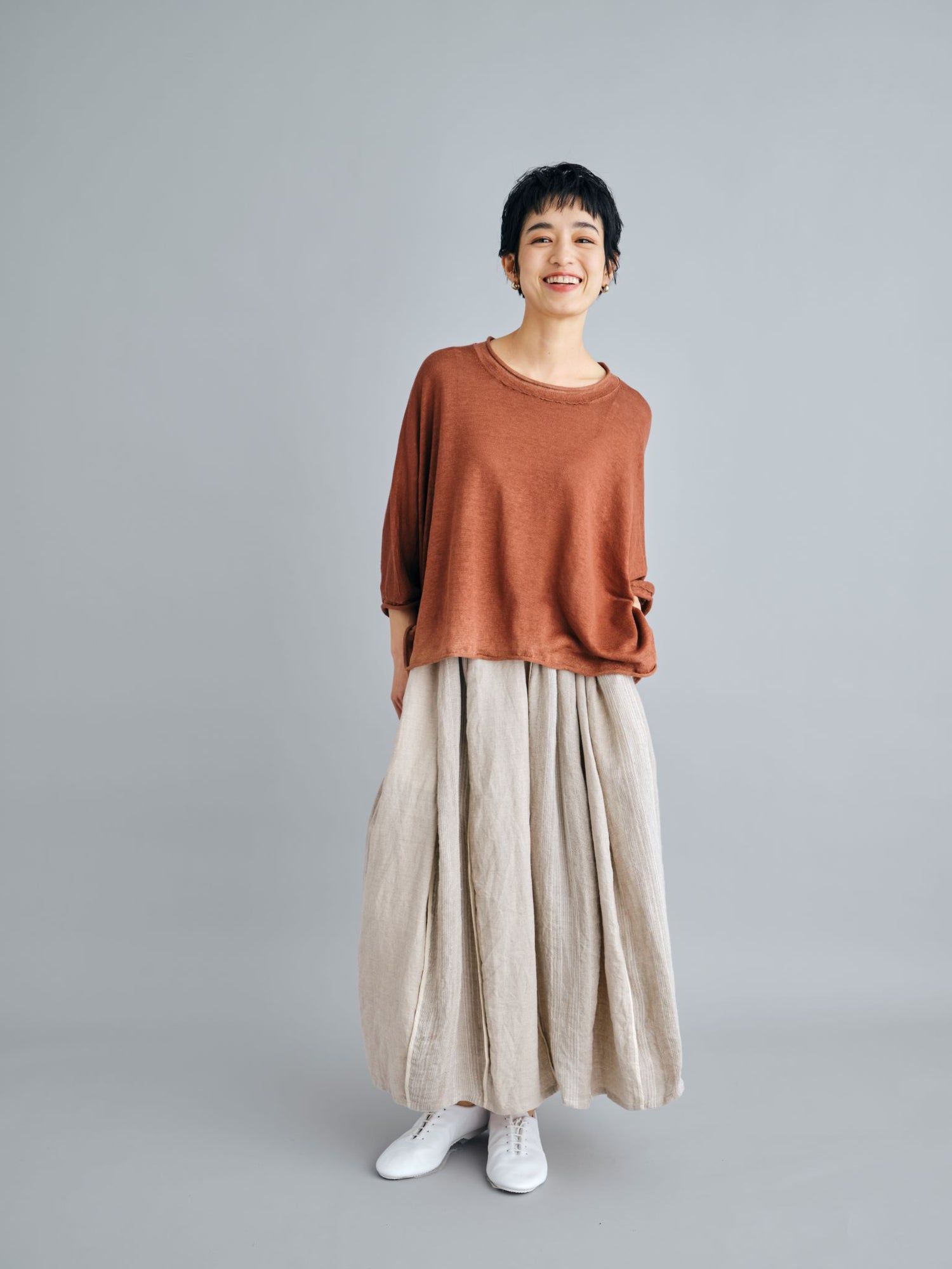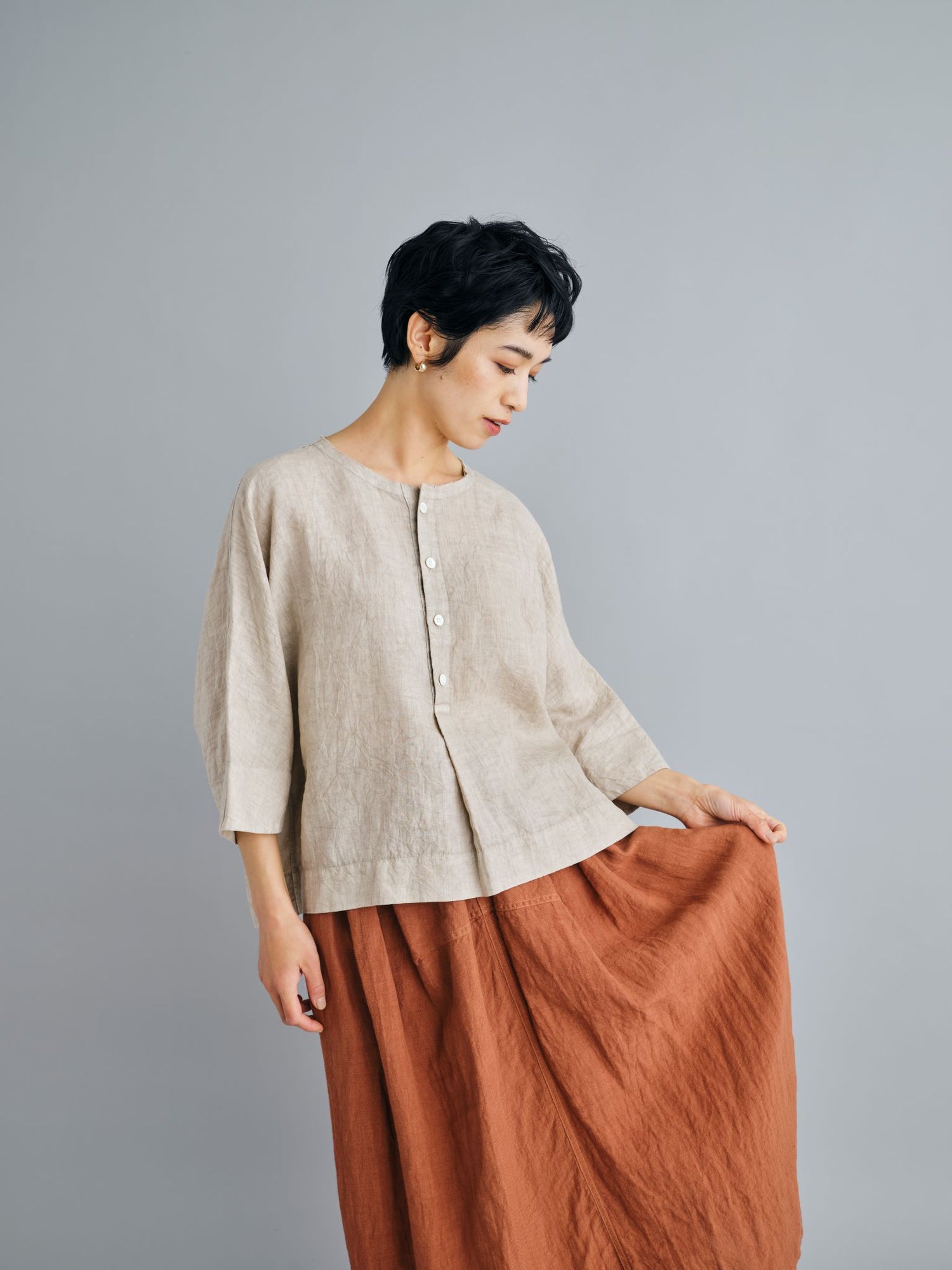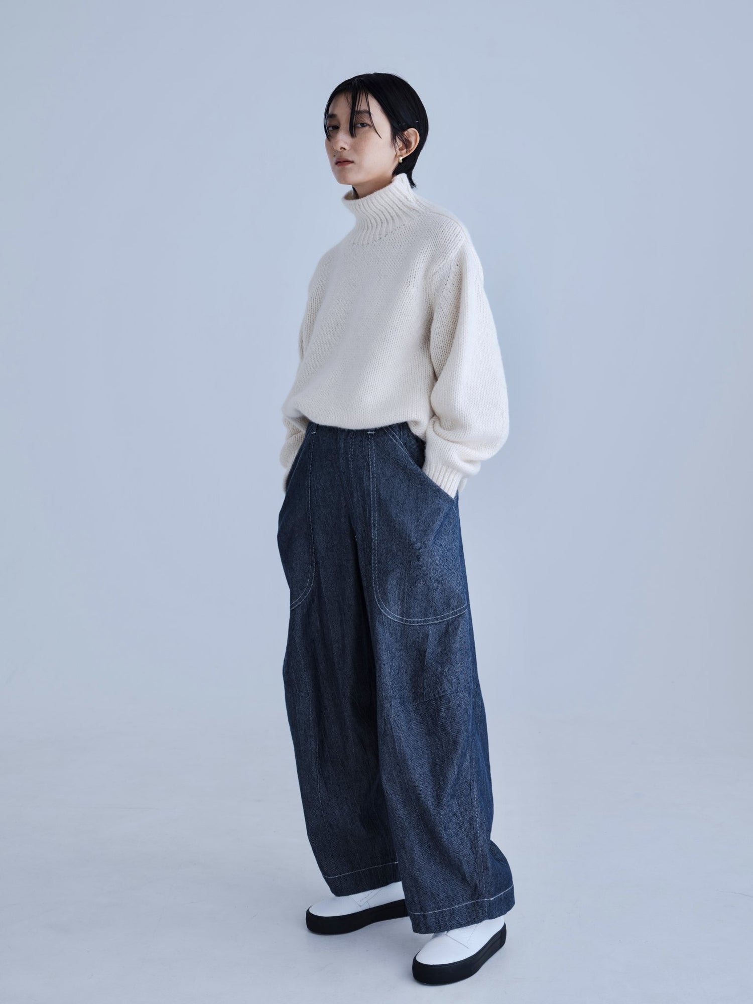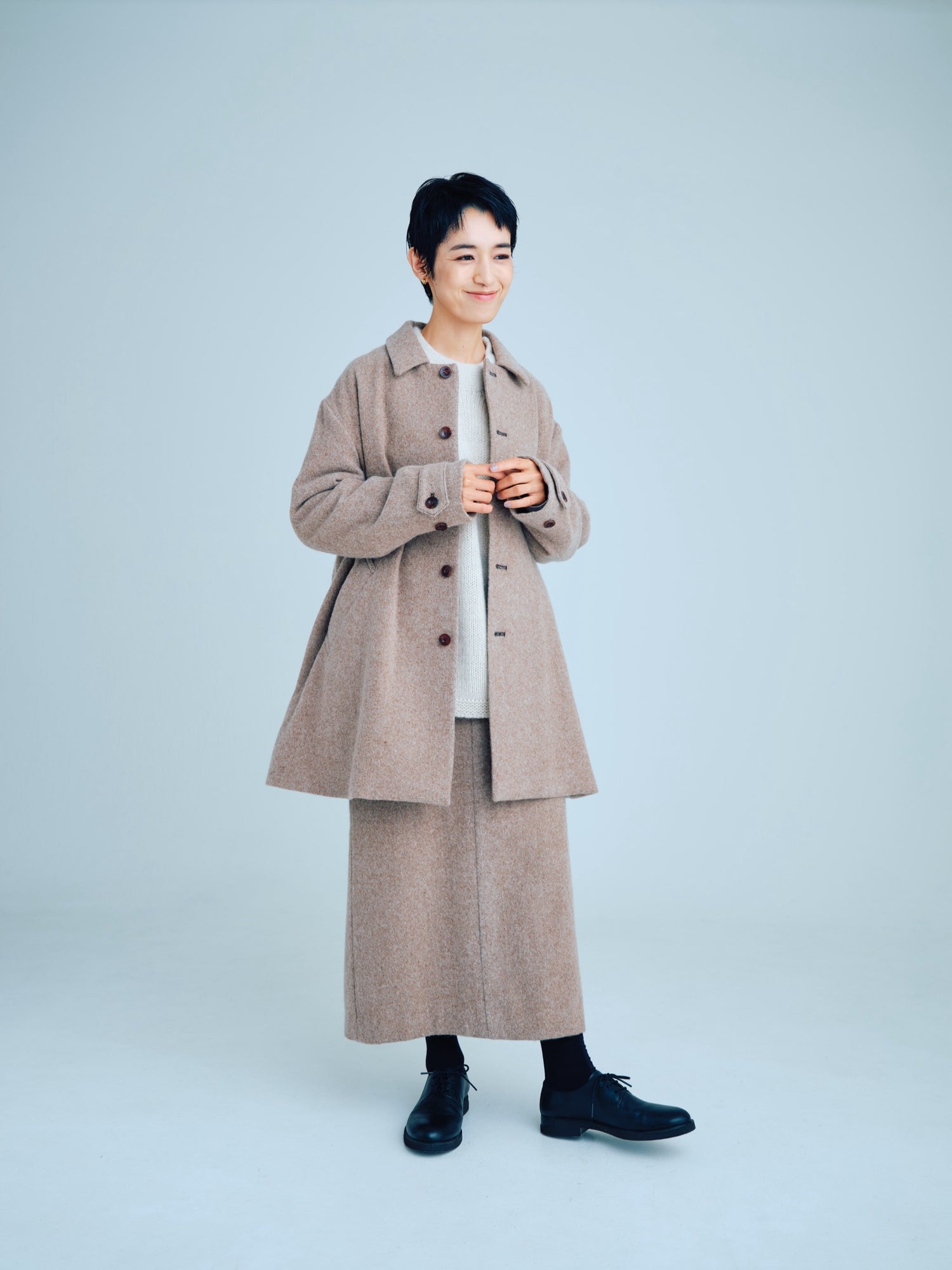 モンゴリアンウール、ヤク、カシミヤ、キャメル など、モンゴルの大自然でのびのび育った動物たちの原毛を、ニットはもちろん、布帛にも贅沢に使用しました。モンゴリアンウールの良さを存分に感じてもらえるよう、初秋から活躍する薄手から、真冬まであたたかくお過ごしいただけるような、ふっくらとしたウール素材まで幅広くご用意しました。ウール素材には起毛加工を施し、見た目からもあたたかさを感じていただけるようにお作りしています。