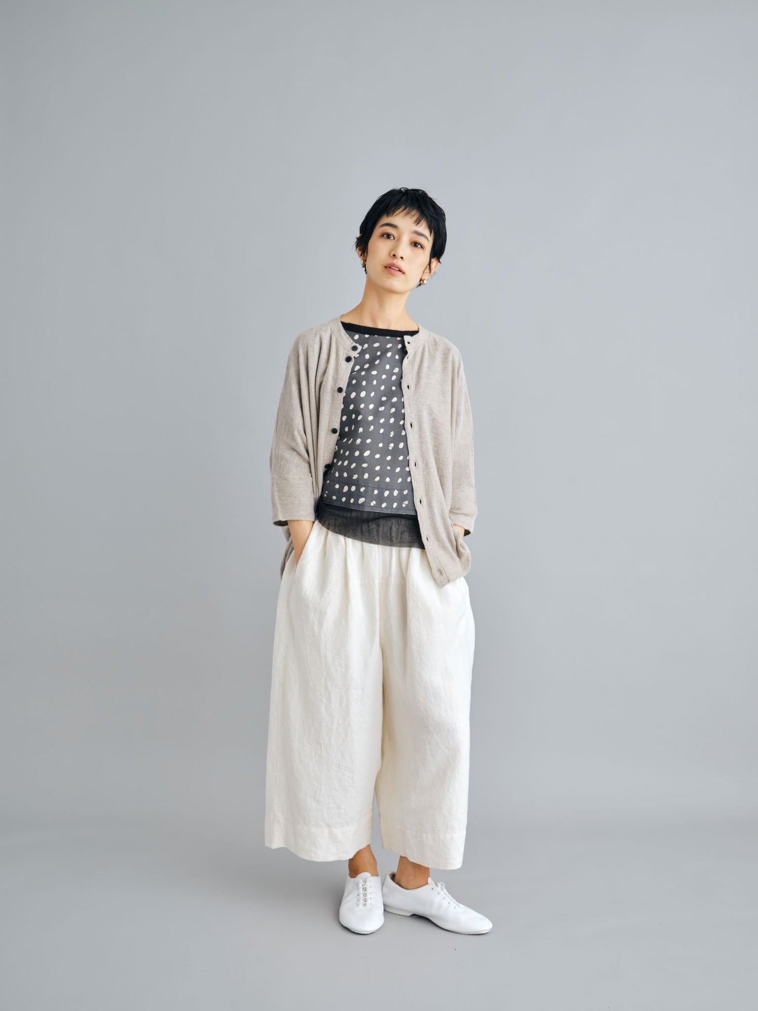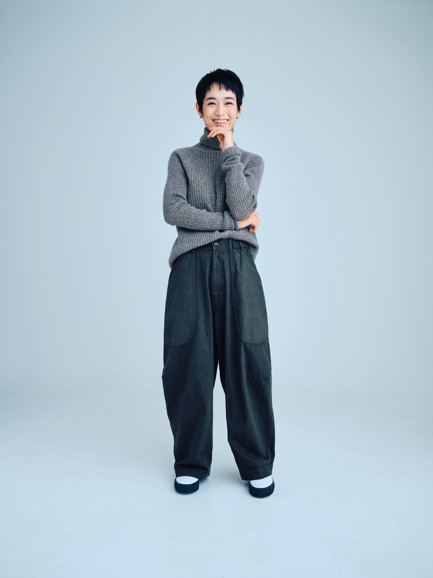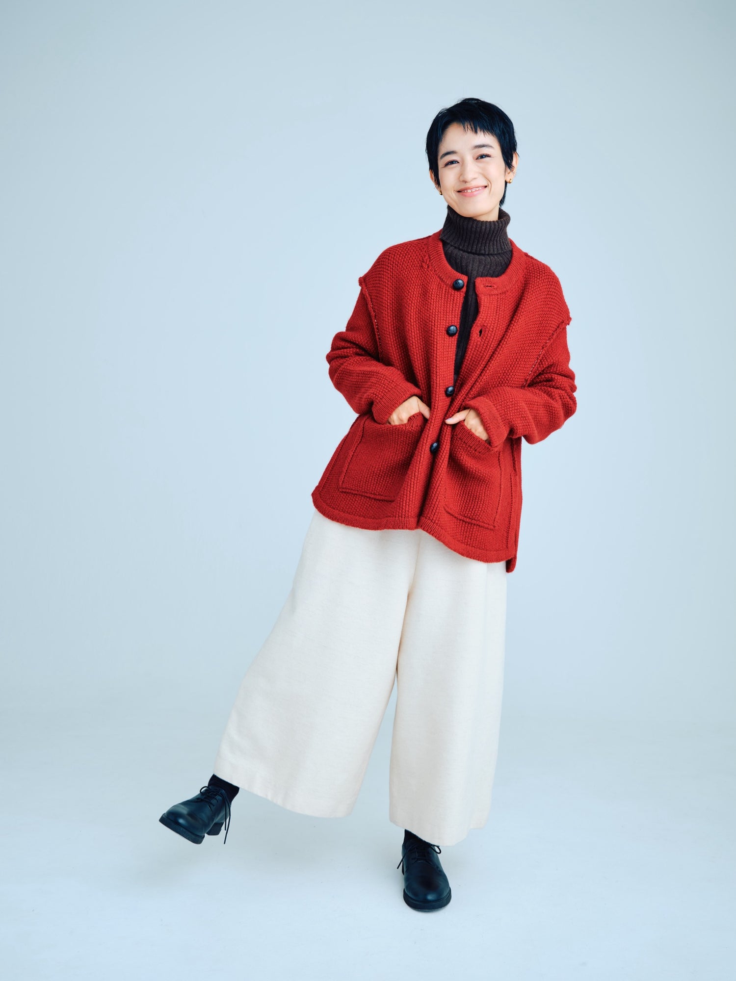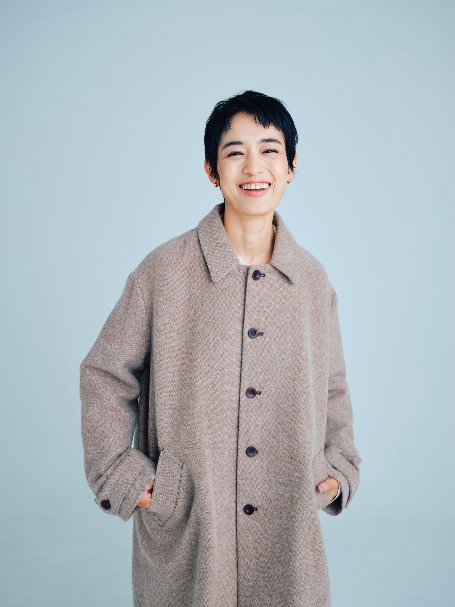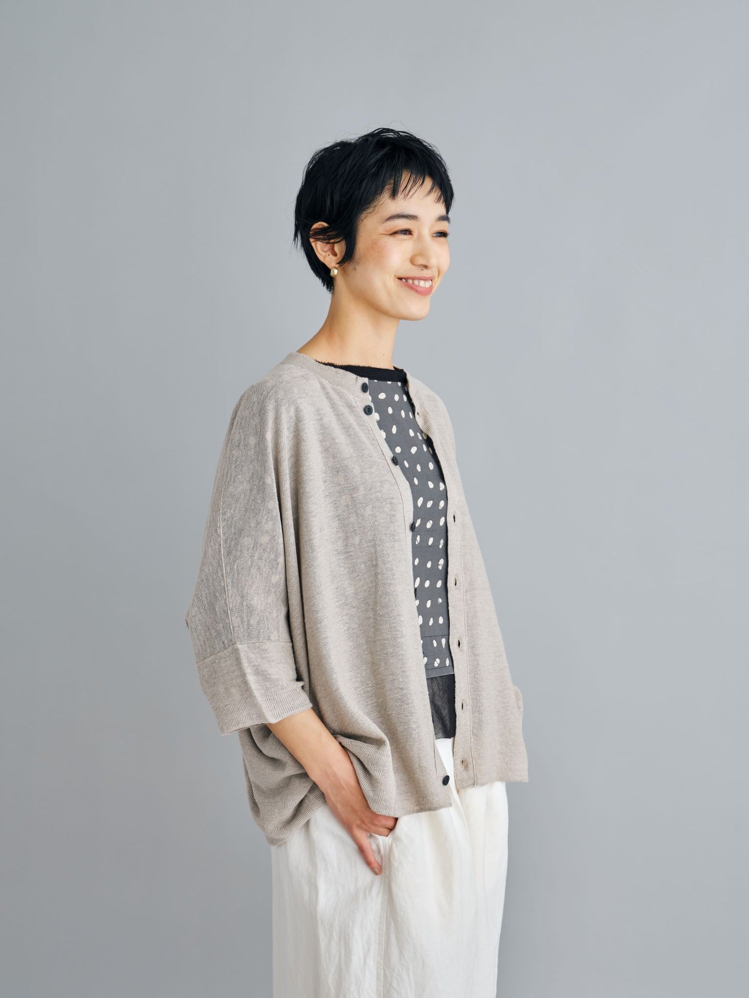 モンゴリアンウール、ヤク、カシミヤ、キャメル など、モンゴルの大自然でのびのび育った動物たちの原毛を、ニットはもちろん、布帛にも贅沢に使用しました。モンゴリアンウールの良さを存分に感じてもらえるよう、初秋から活躍する薄手から、真冬まであたたかくお過ごしいただけるような、ふっくらとしたウール素材まで幅広くご用意しました。ウール素材には起毛加工を施し、見た目からもあたたかさを感じていただけるようにお作りしています。