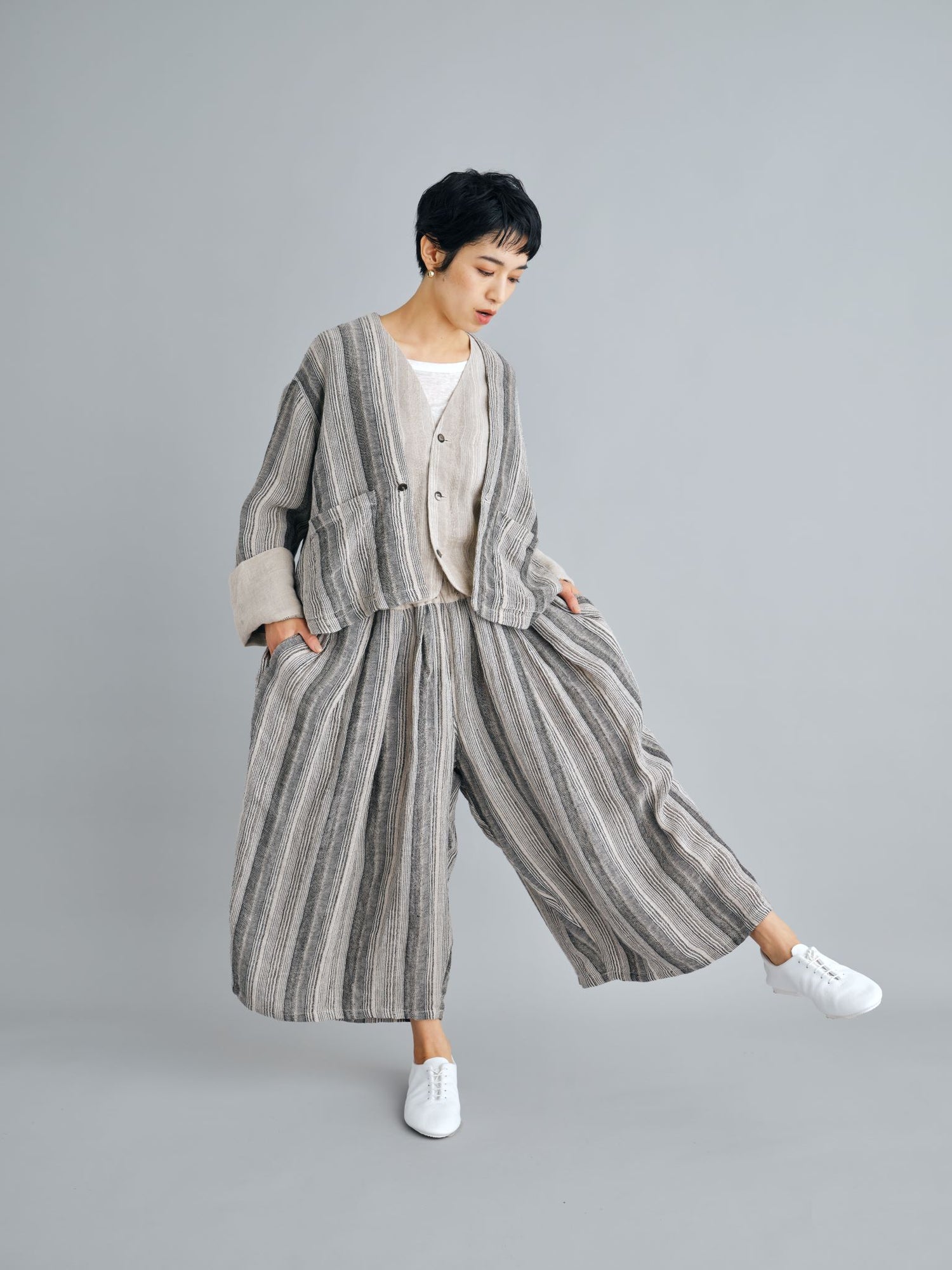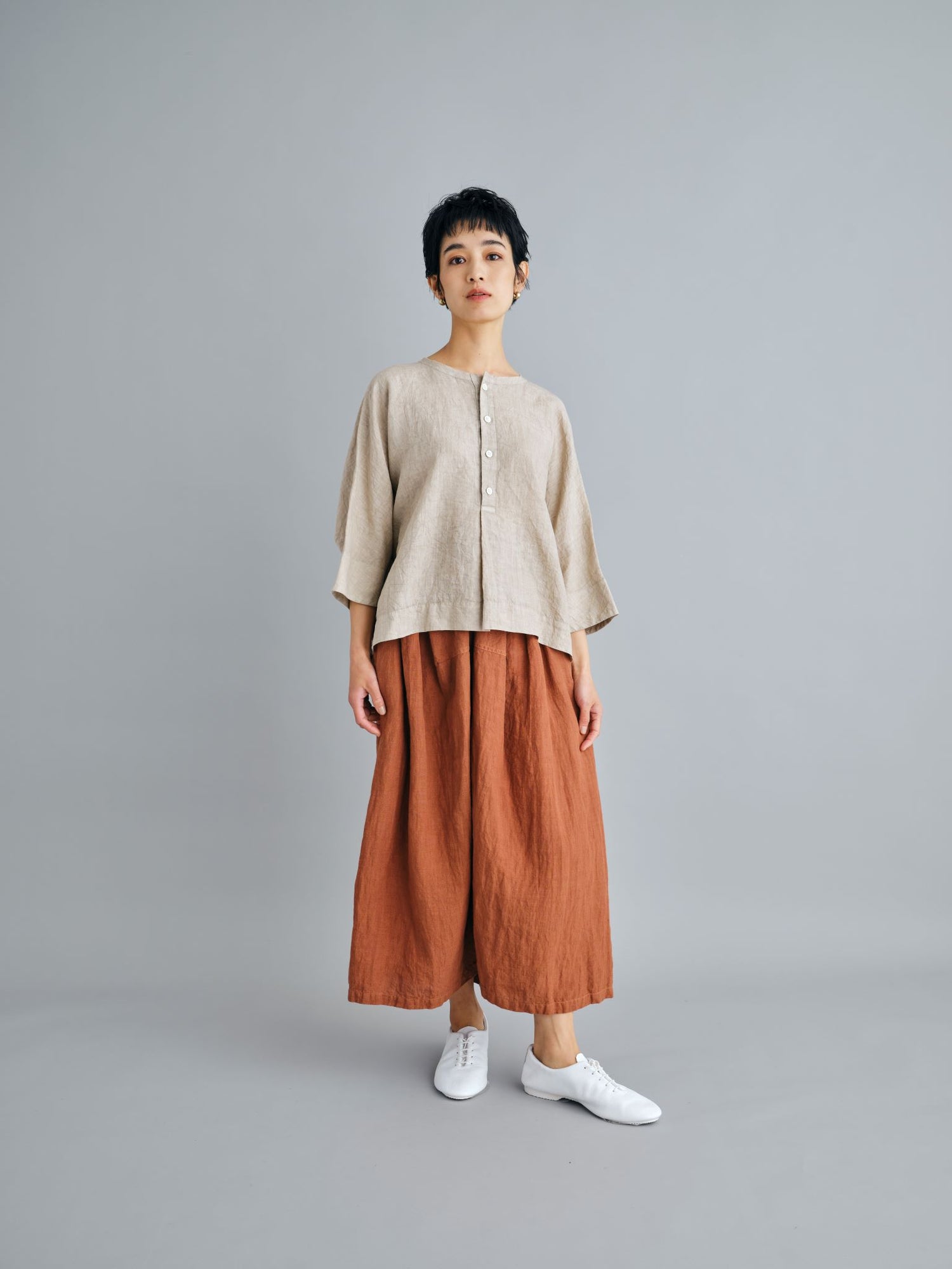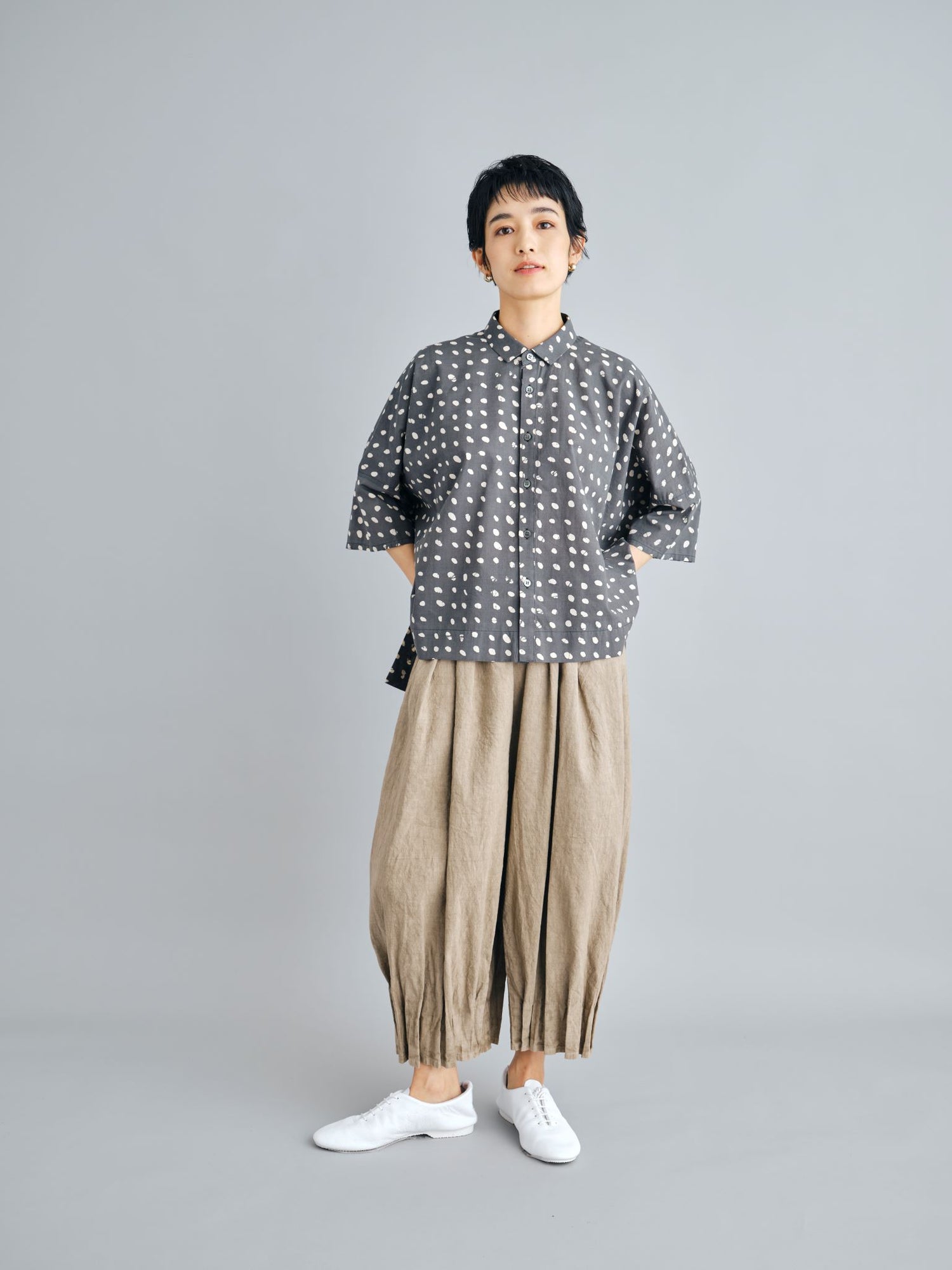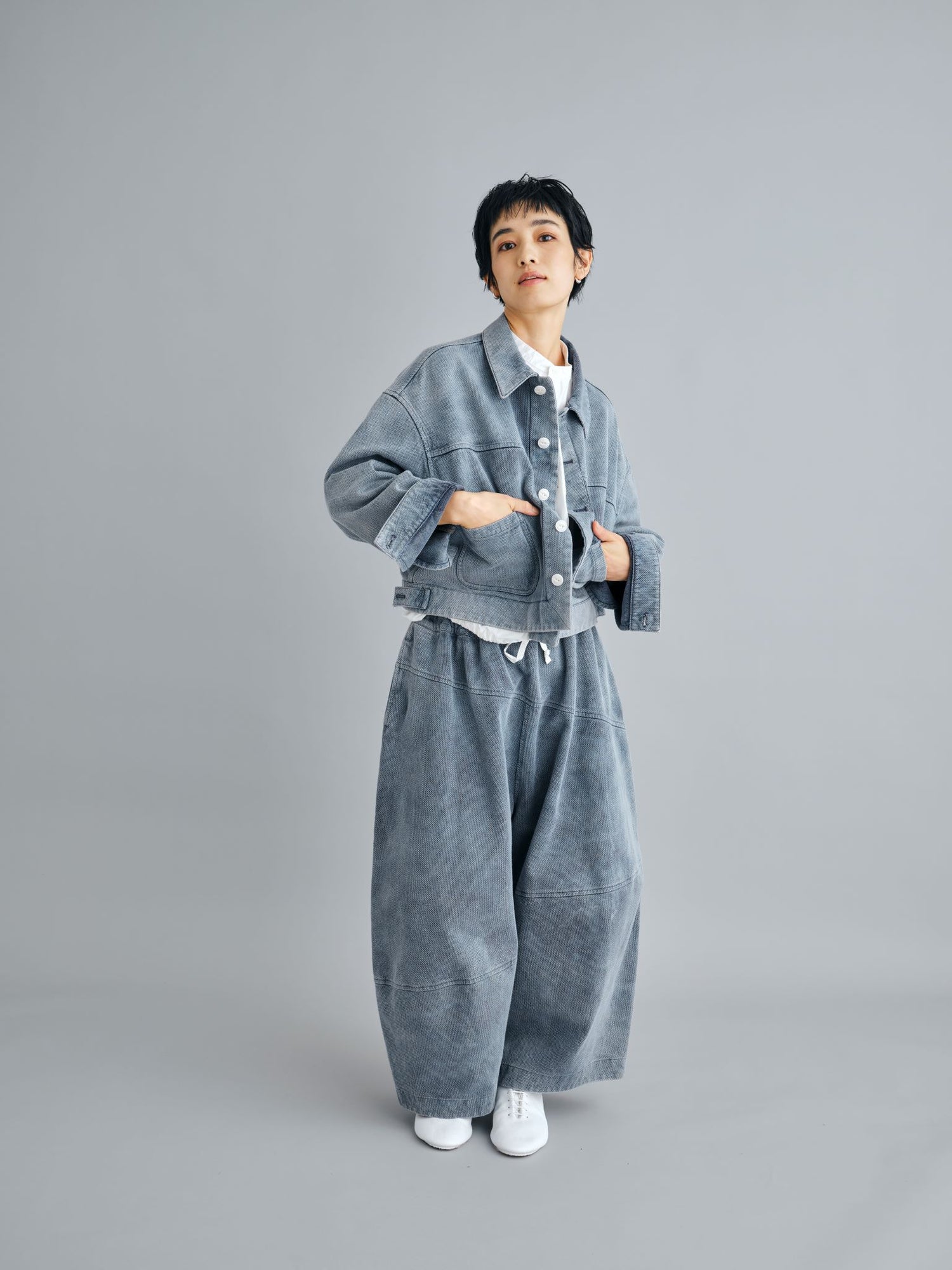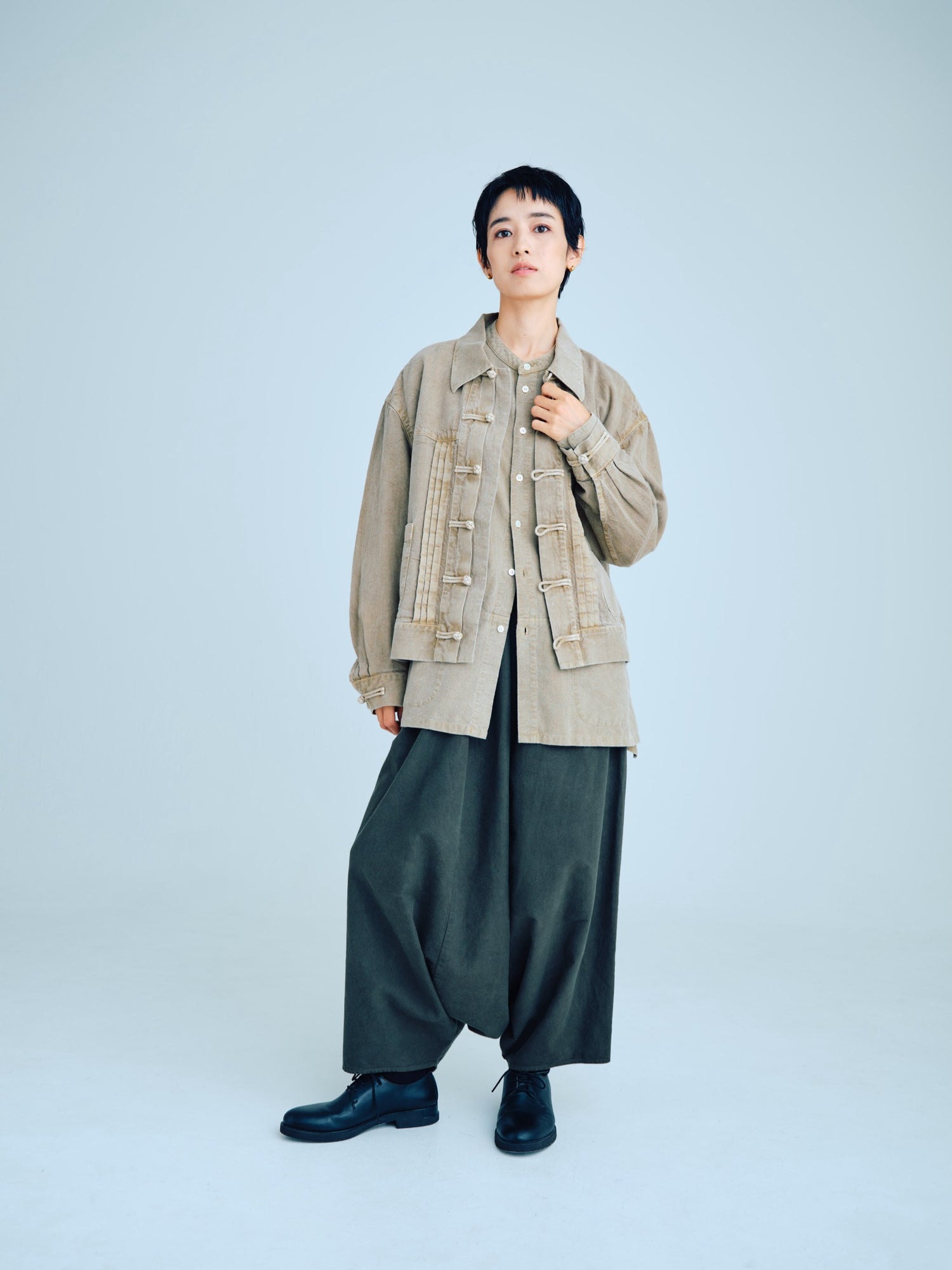 24SS collection では、素材をめぐる旅で訪れた、モロッコの土の色、色彩豊かな街並みを FACTORY の洋服を通して表現しています。