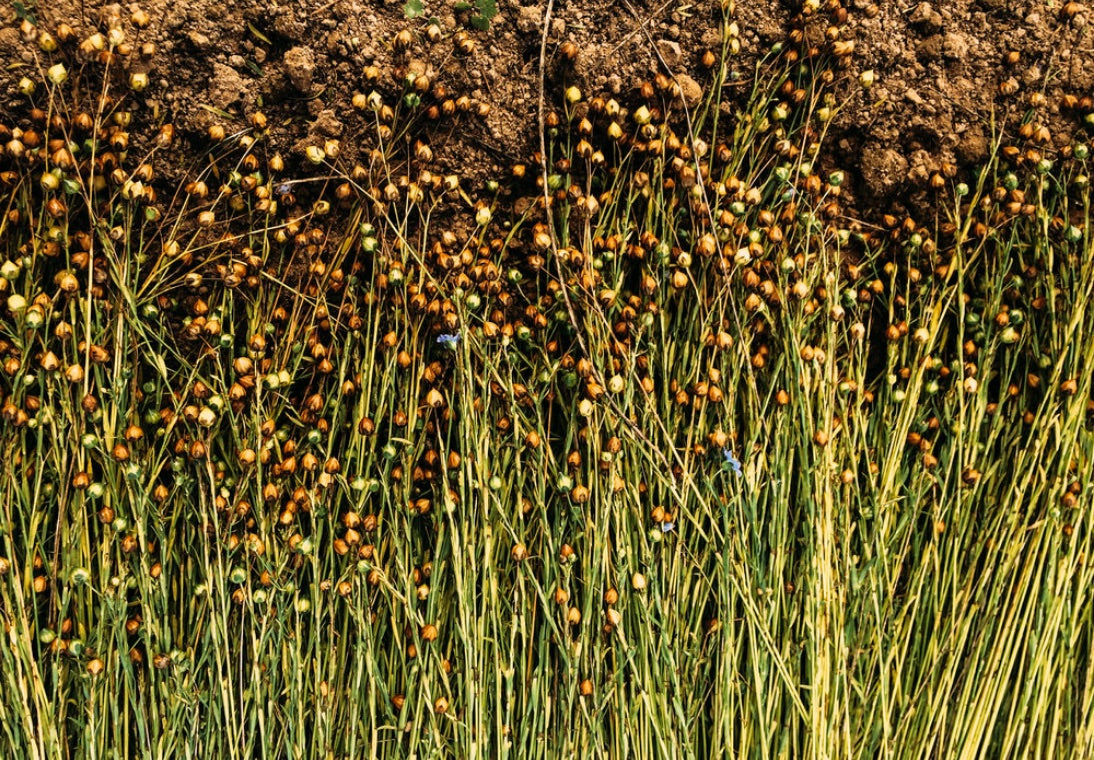 ベルギーリネンは、自然の力だけを用いて繊維が収穫されています。リネンの種が実って花が咲き、咲き終わった花を大地に寝かせ、雨に打たれ、風に晒され、太陽の光をたっぷりと浴び、そうして外皮の剥がれた時が繊維の収穫時期になります。