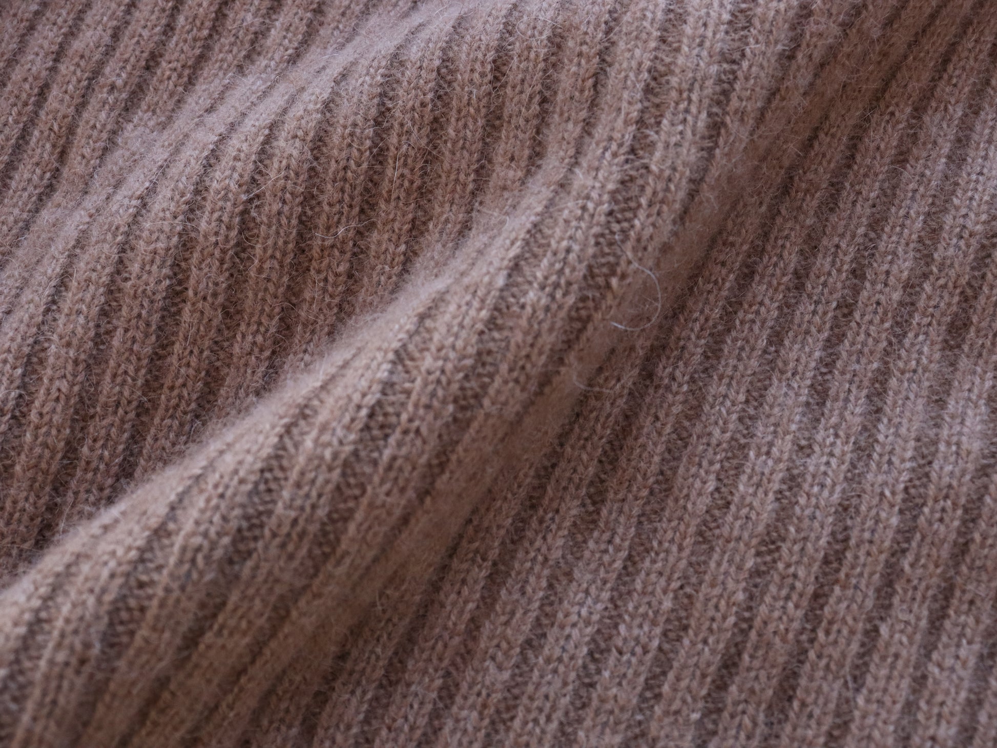 肌に触れても快適な柔らかさのあるベビーキャメルのハイネックセーターです。