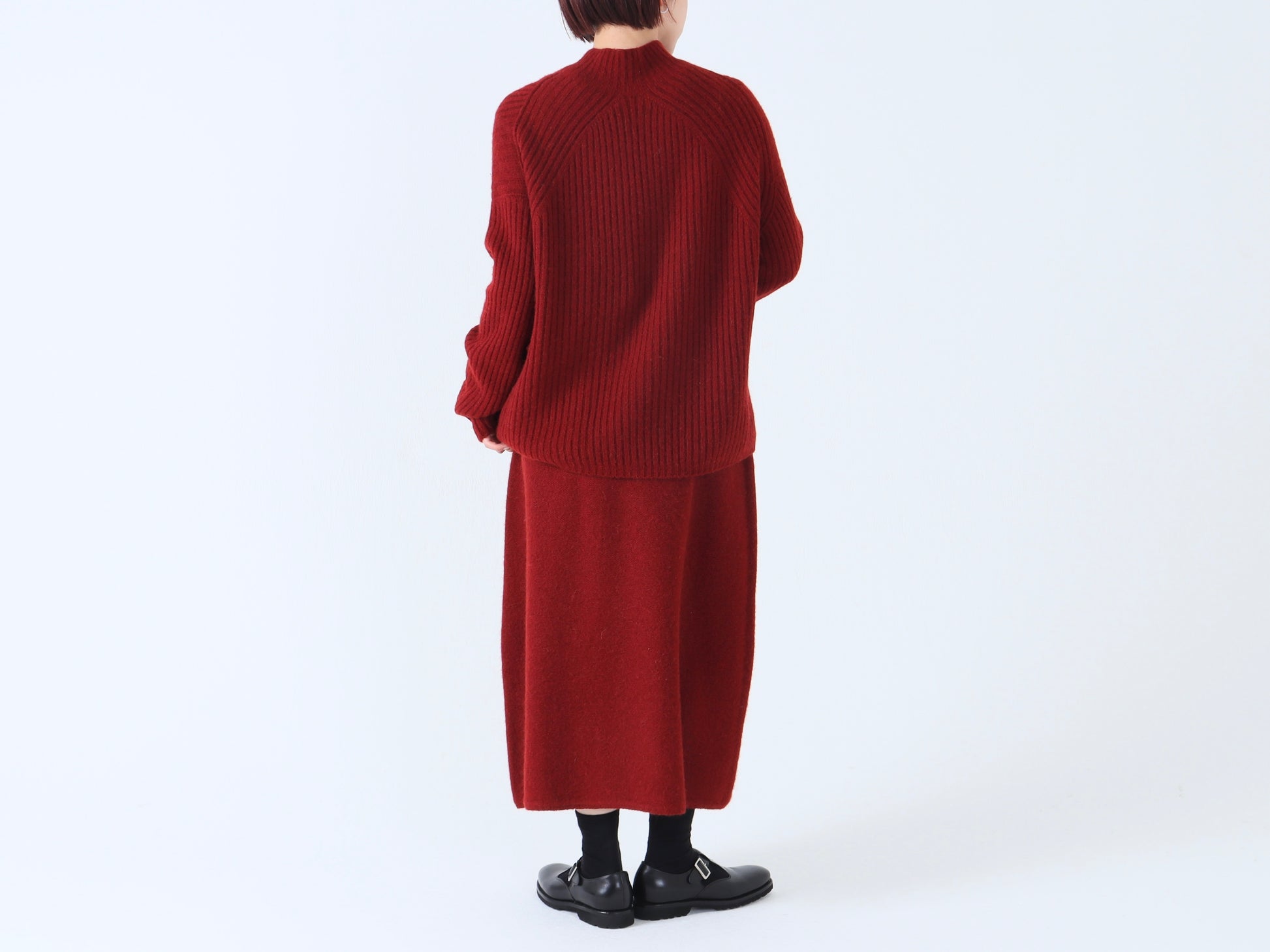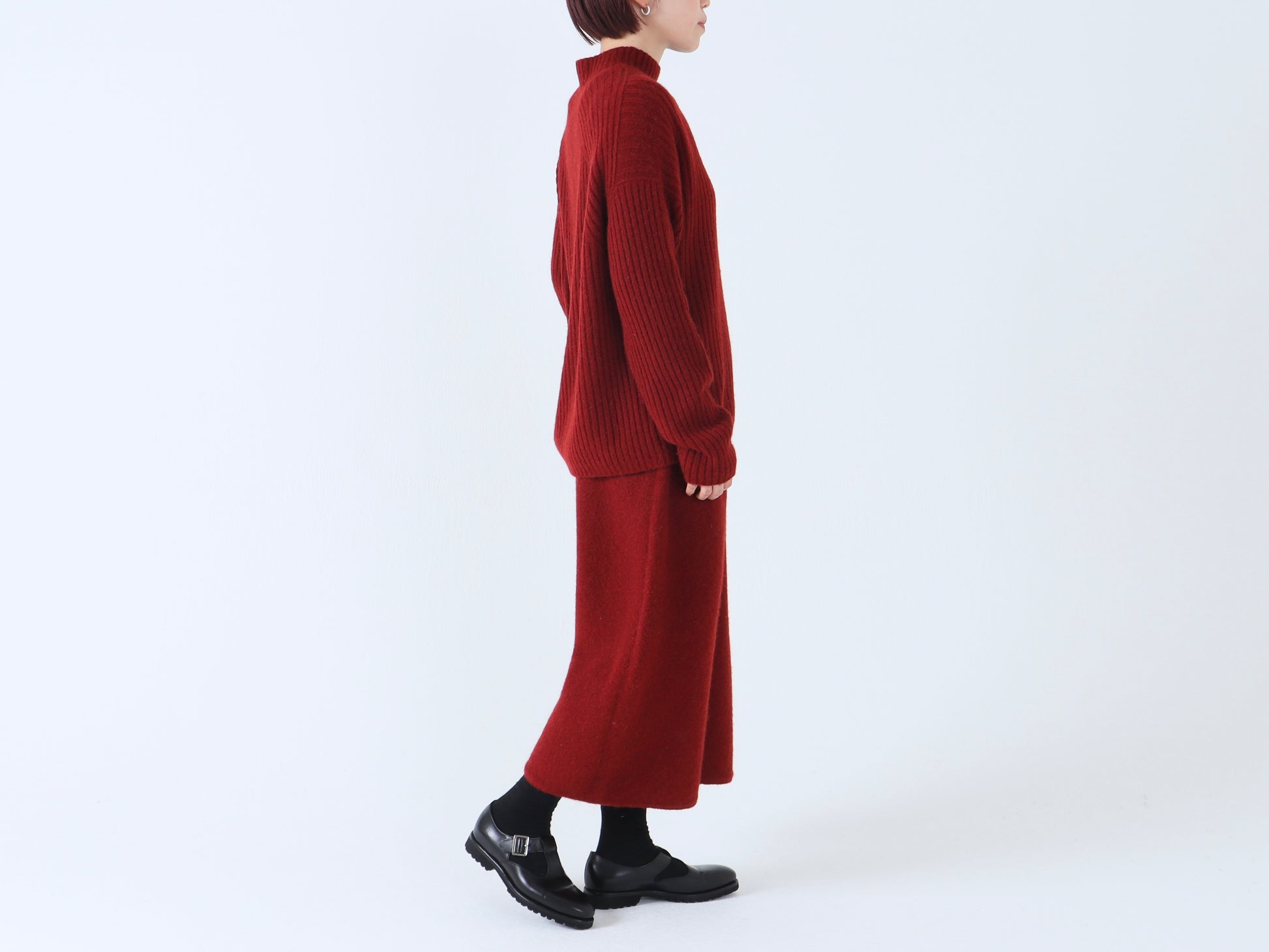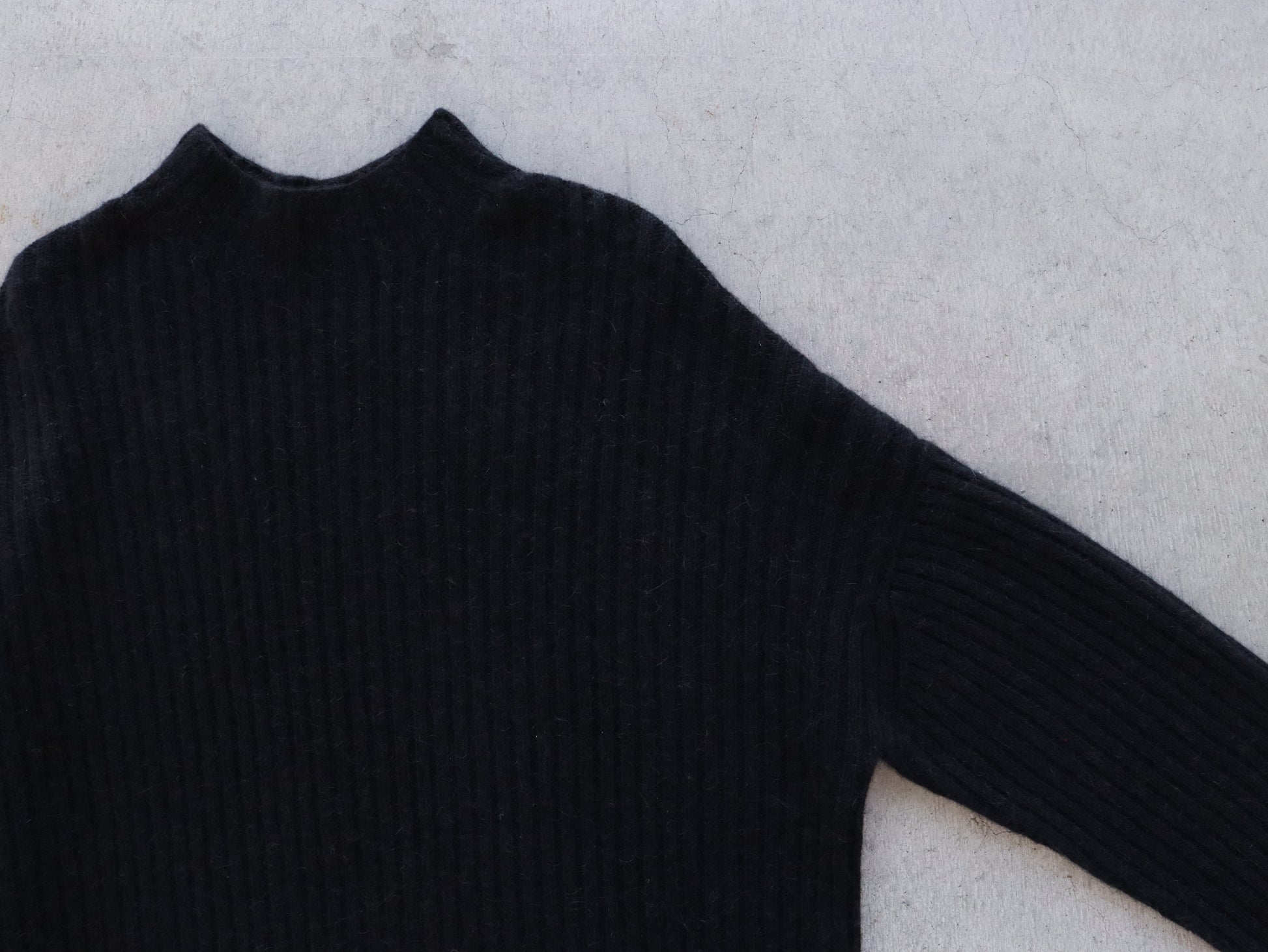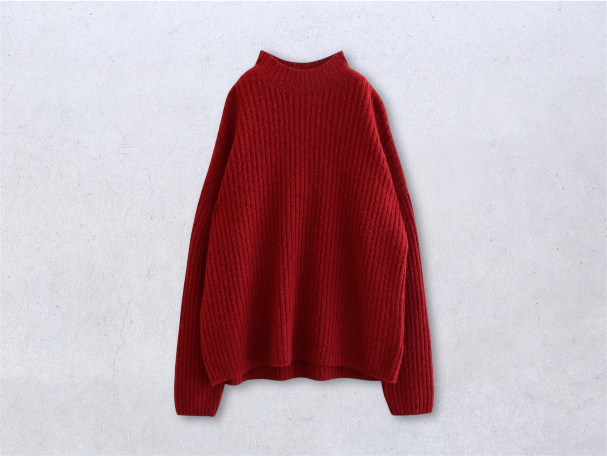 詰まりすぎず程よいフィット感のハイネックは、タートルネックが苦手な方でも取り入れやすいデザインです。