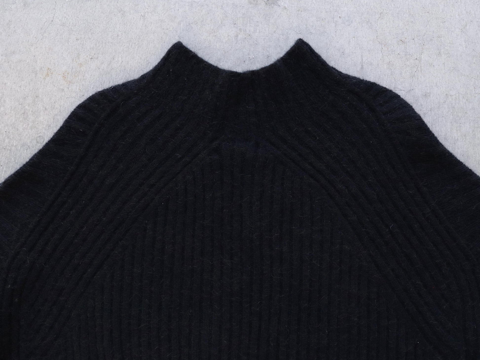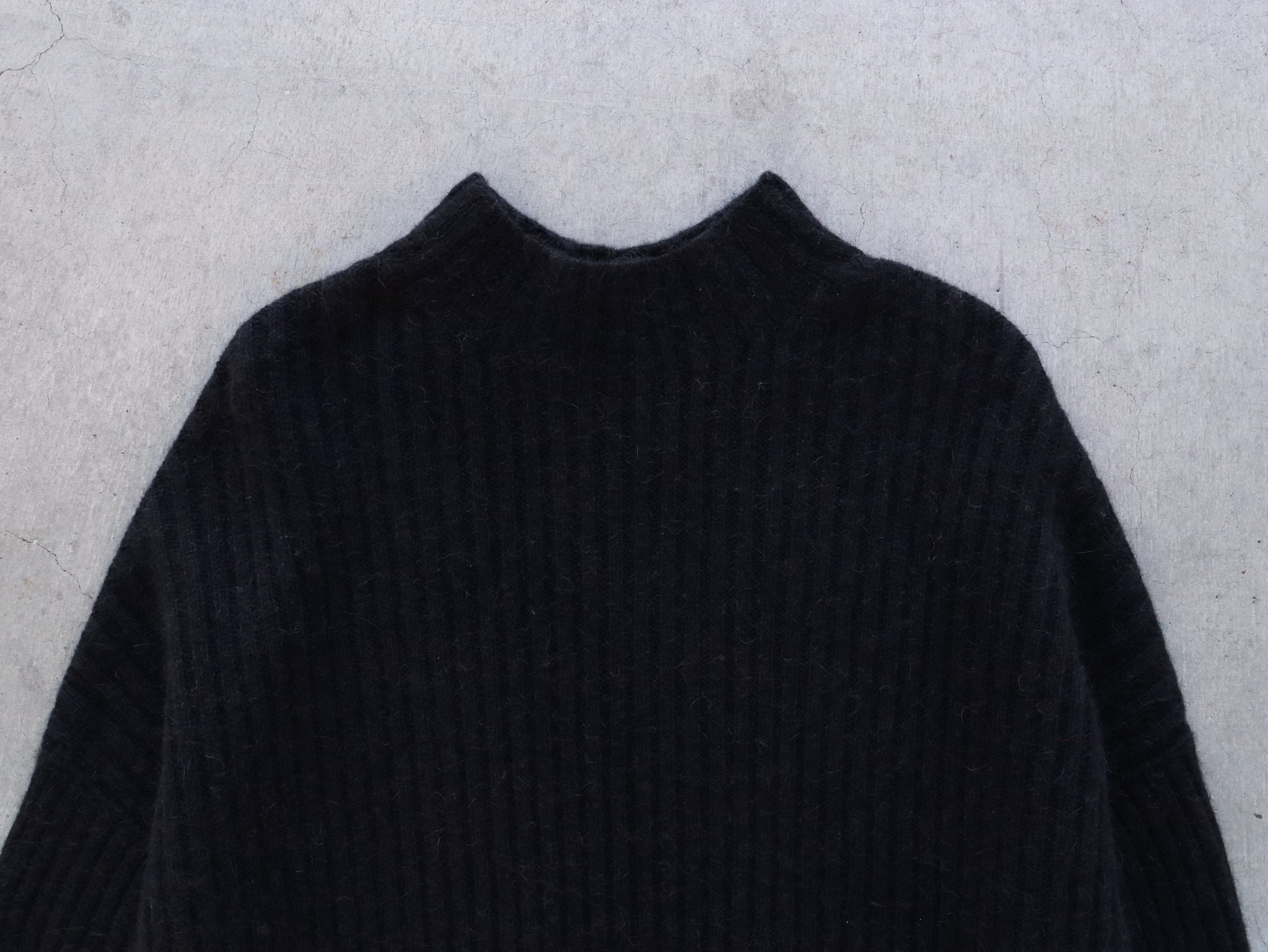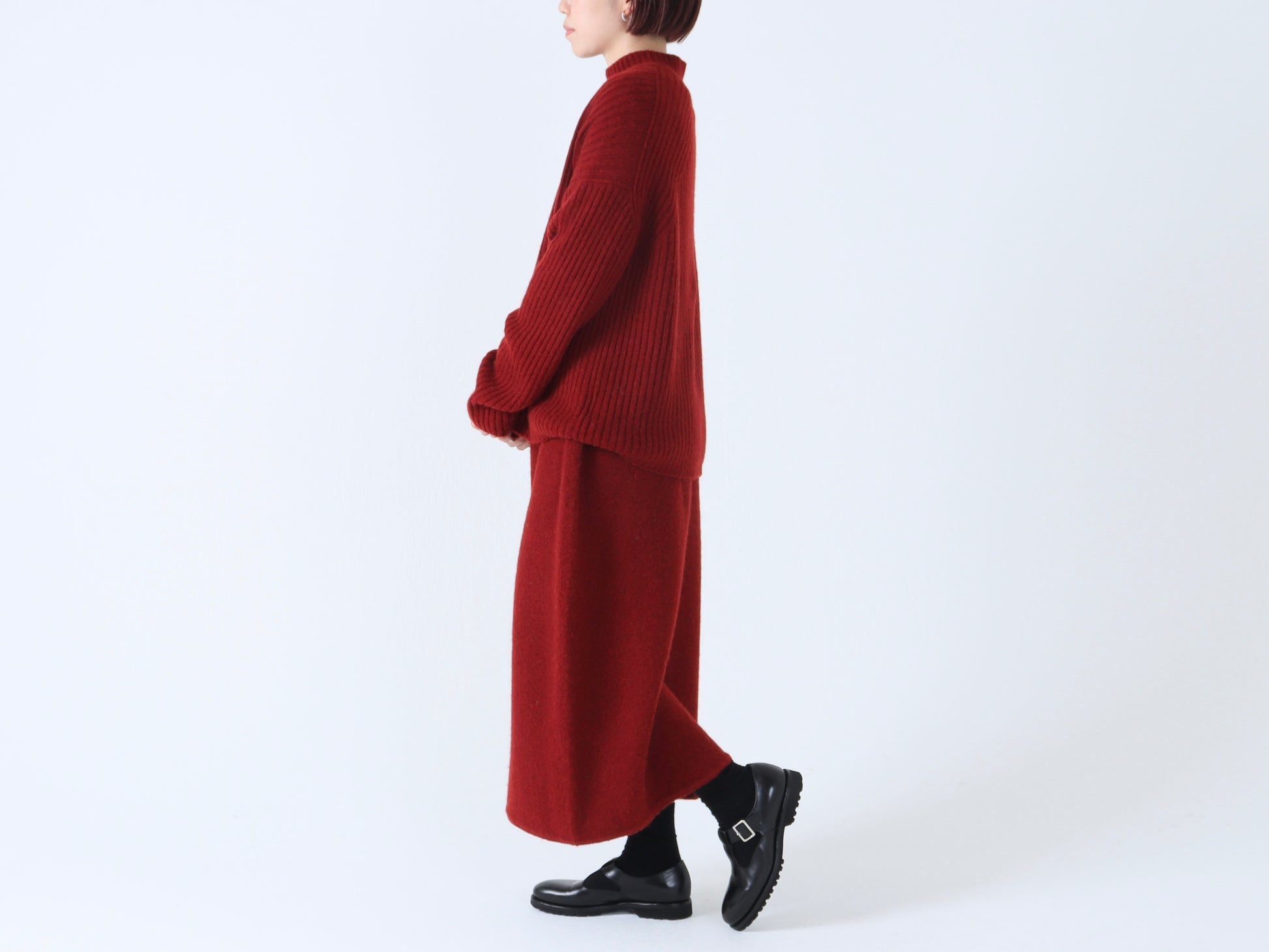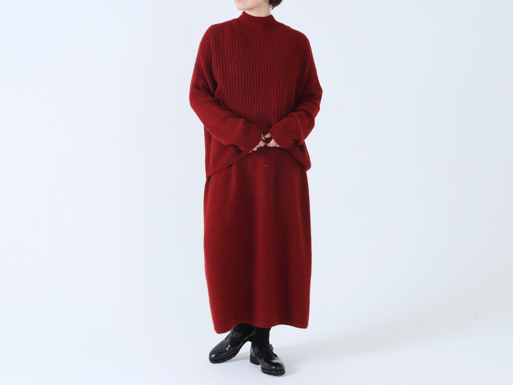 詰まりすぎず程よいフィット感のハイネックは、タートルネックが苦手な方でも取り入れやすいデザインです。