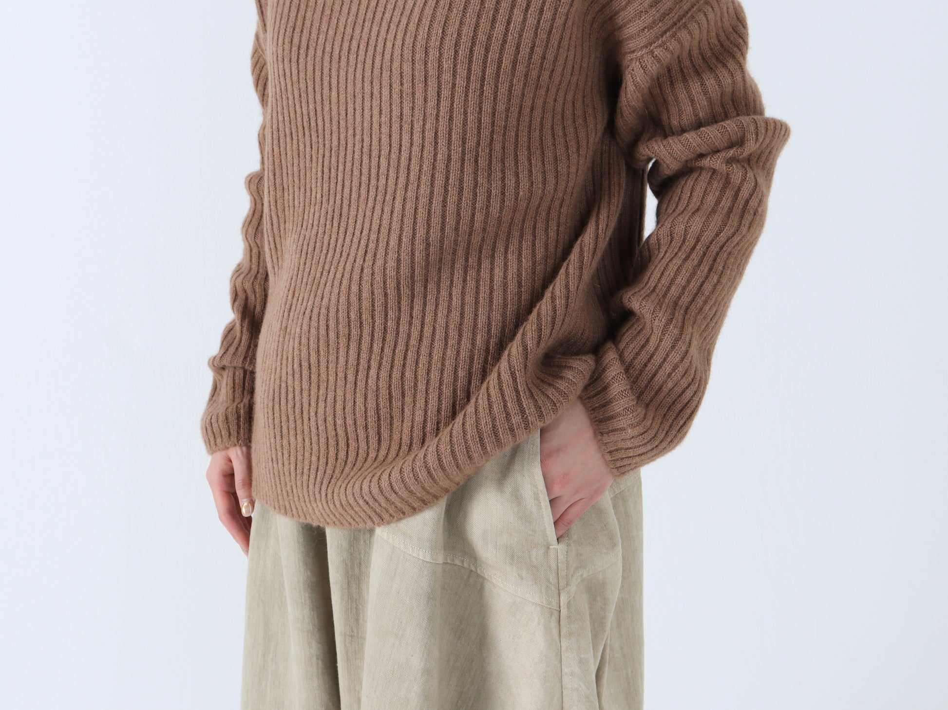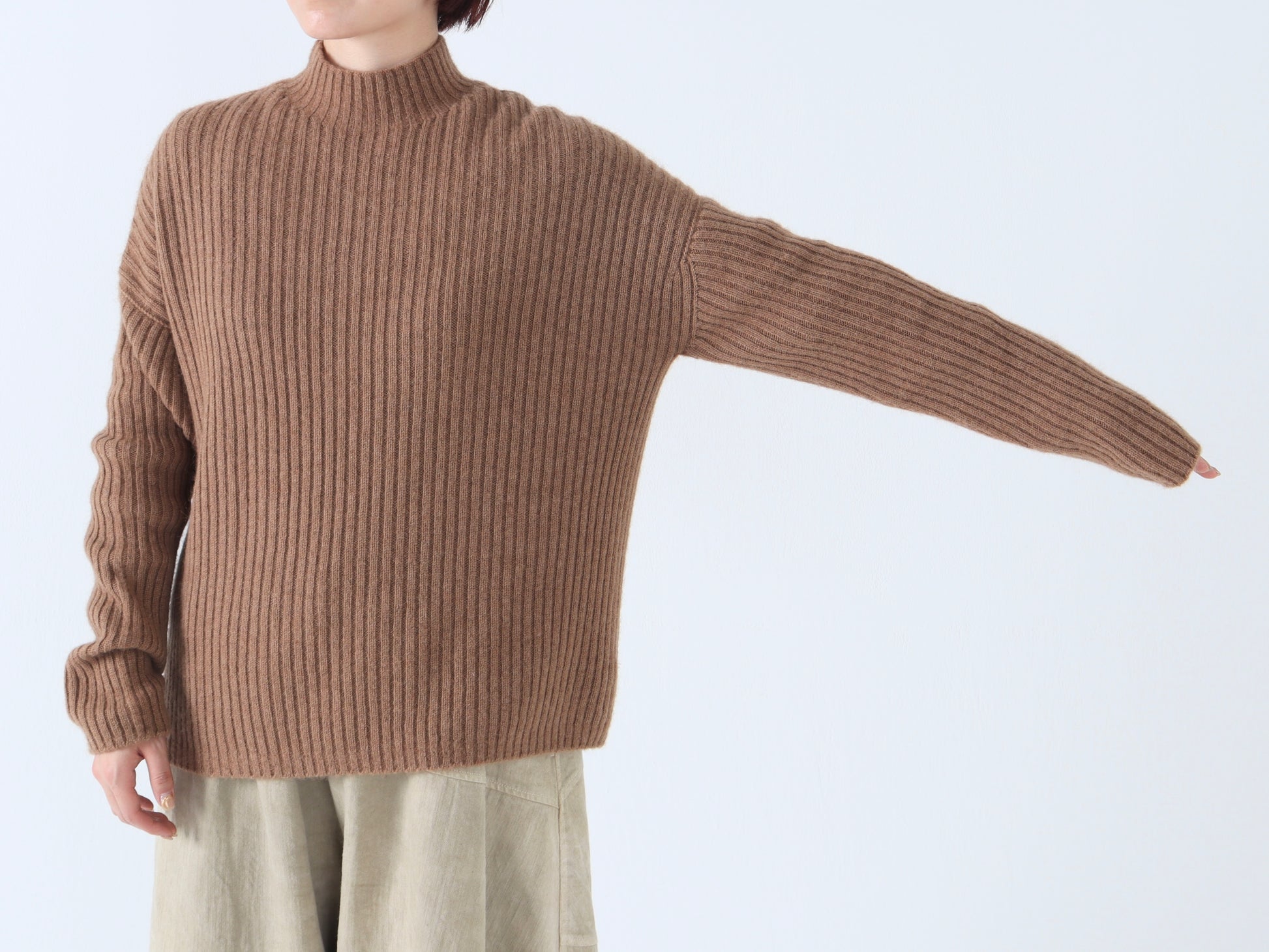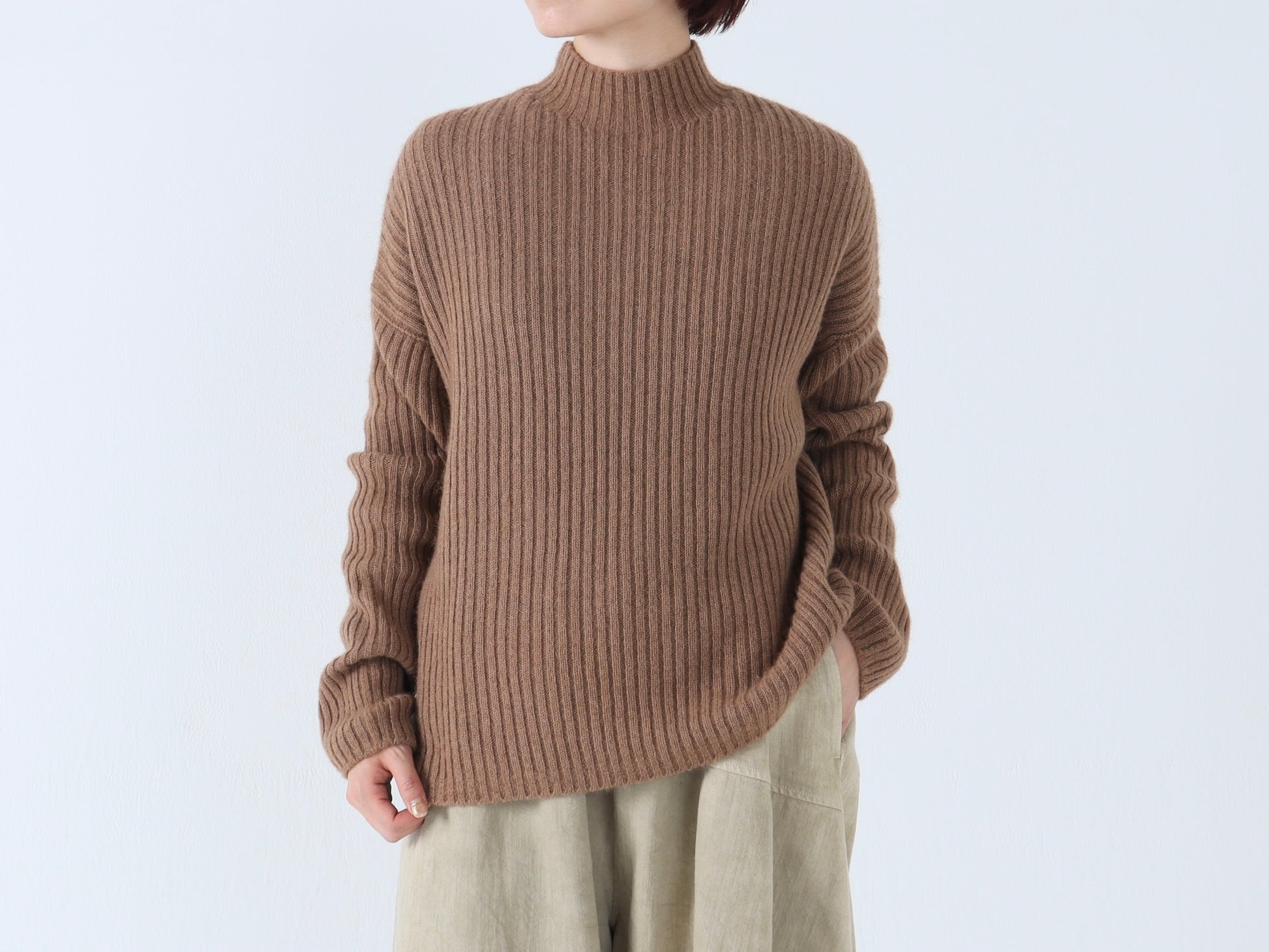【NEW】ベビーキャメル リブハイネックセーター
