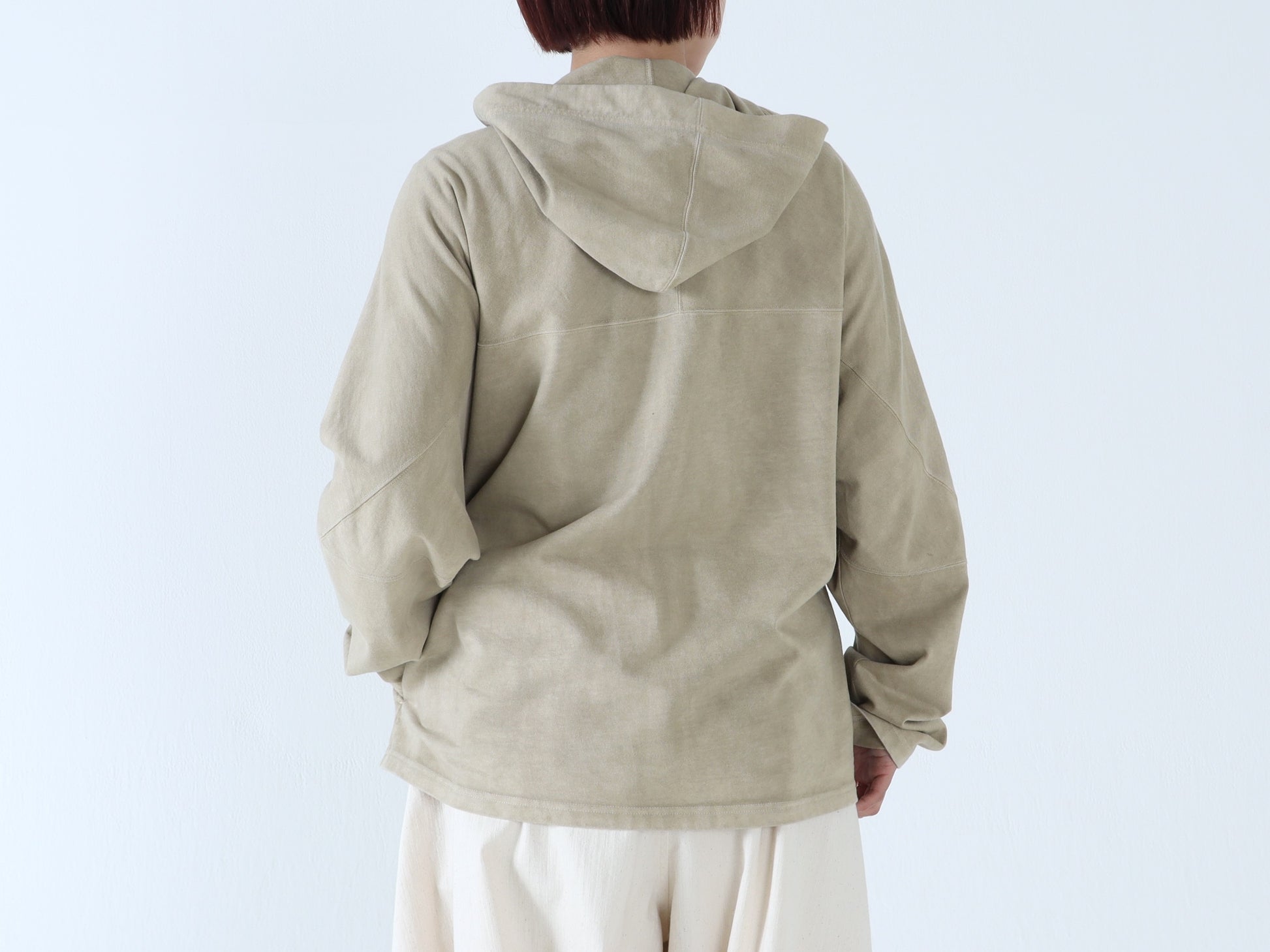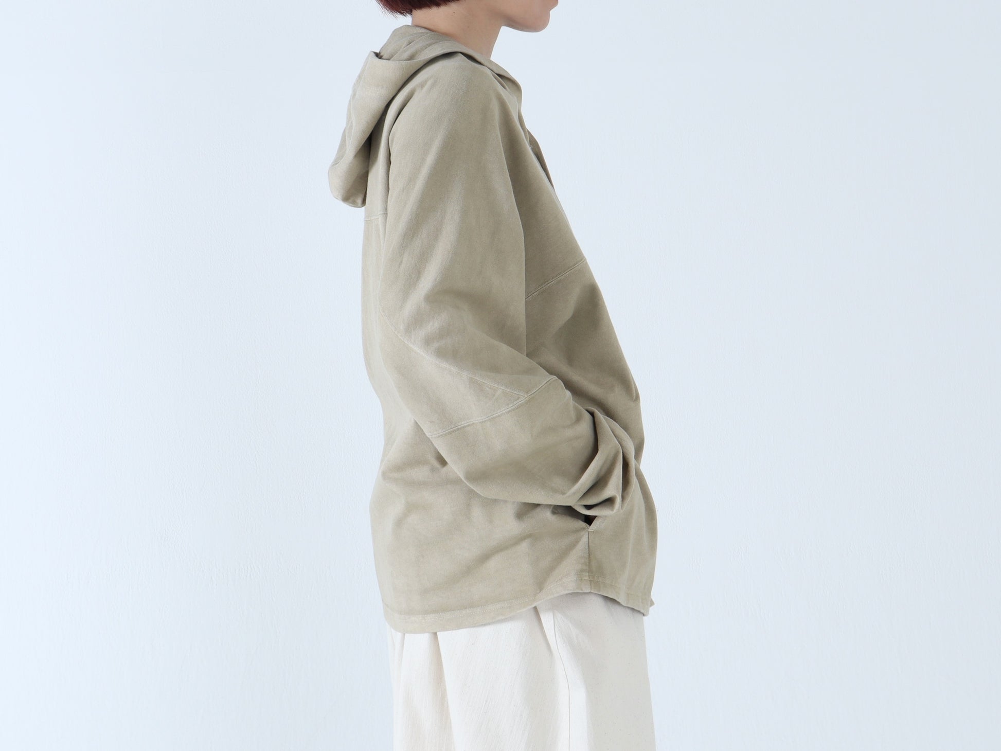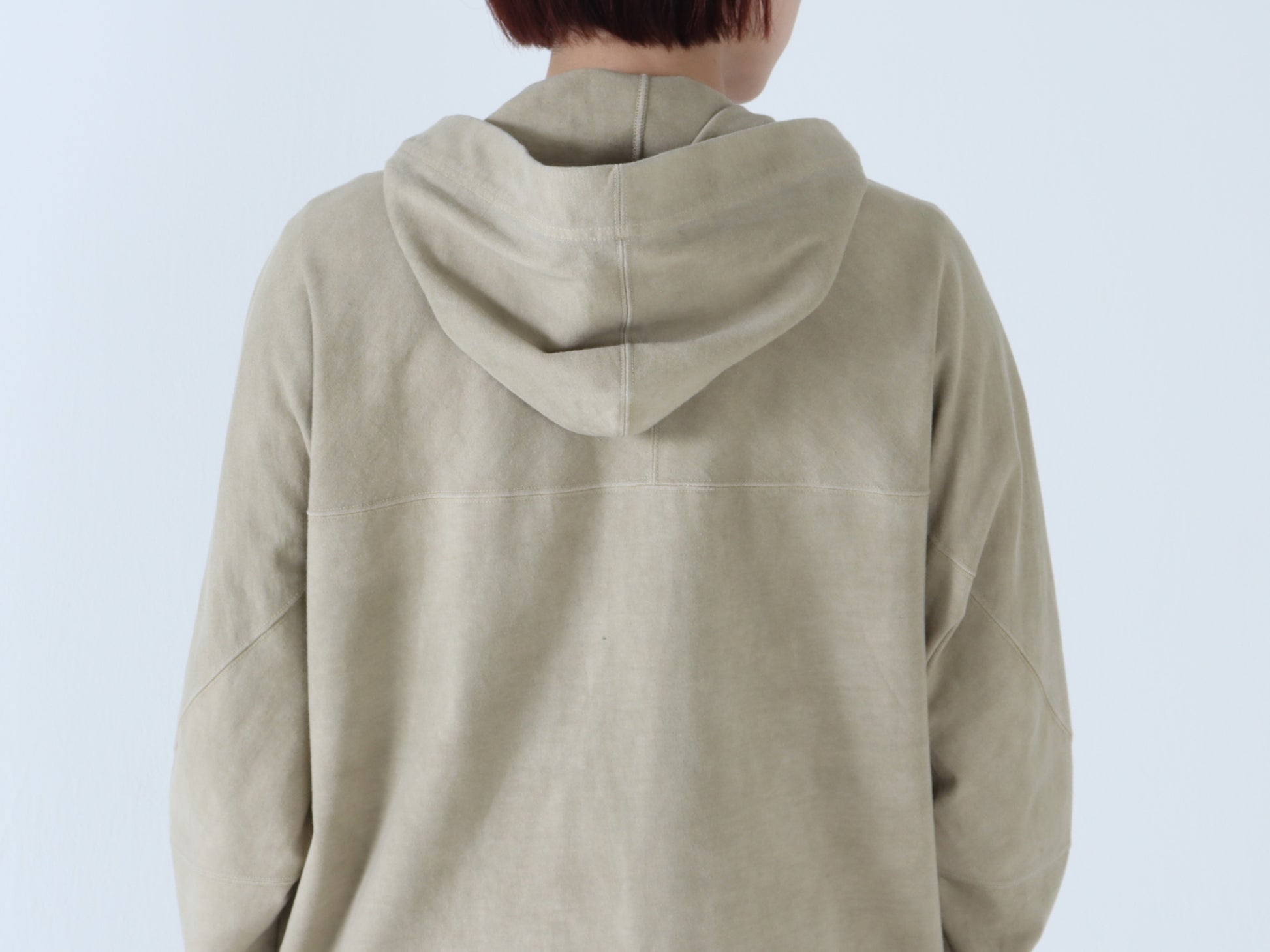 柔らかい綿カットソー素材で仕立てた、軽やかな着心地のフードパーカーです。