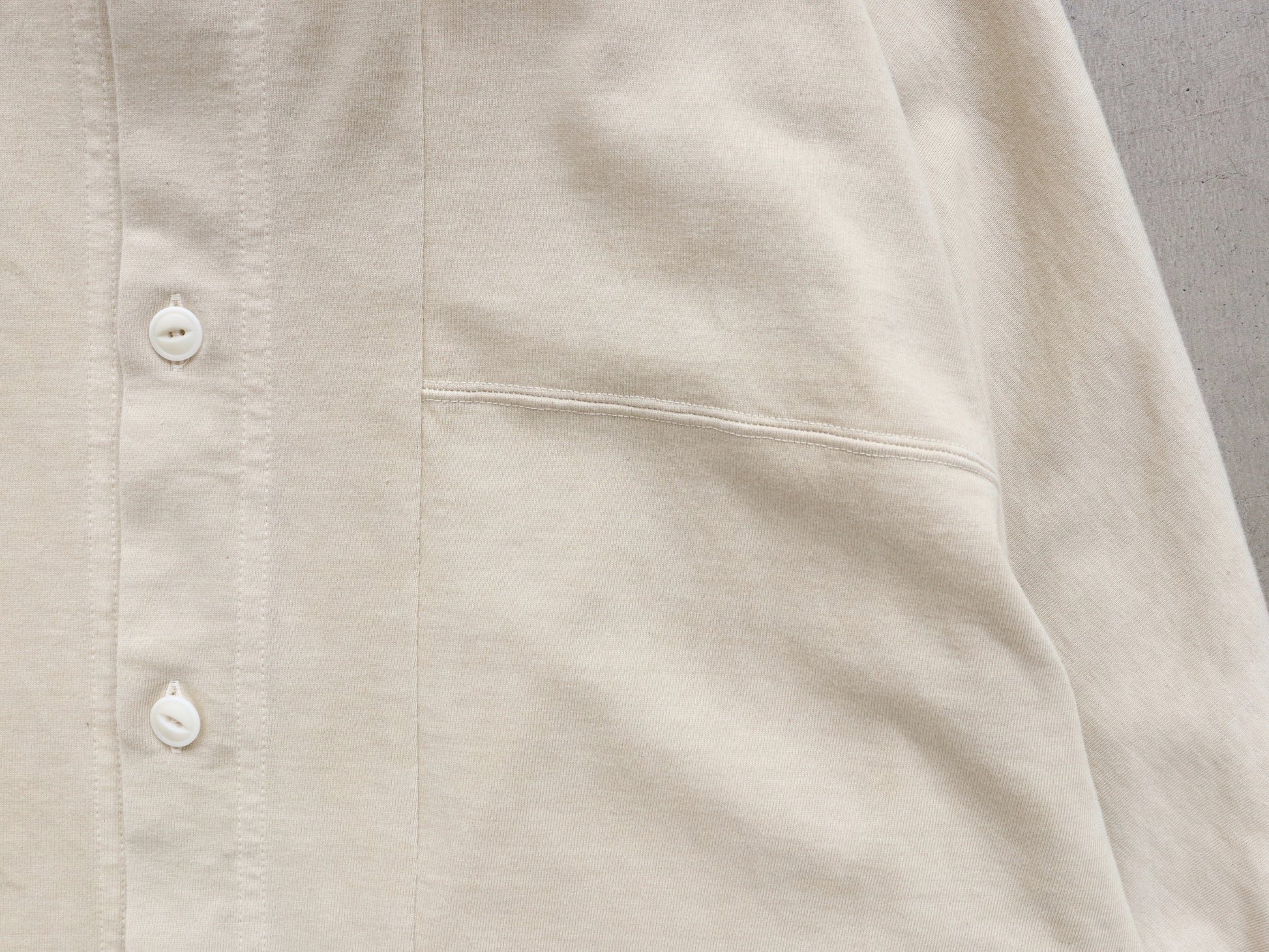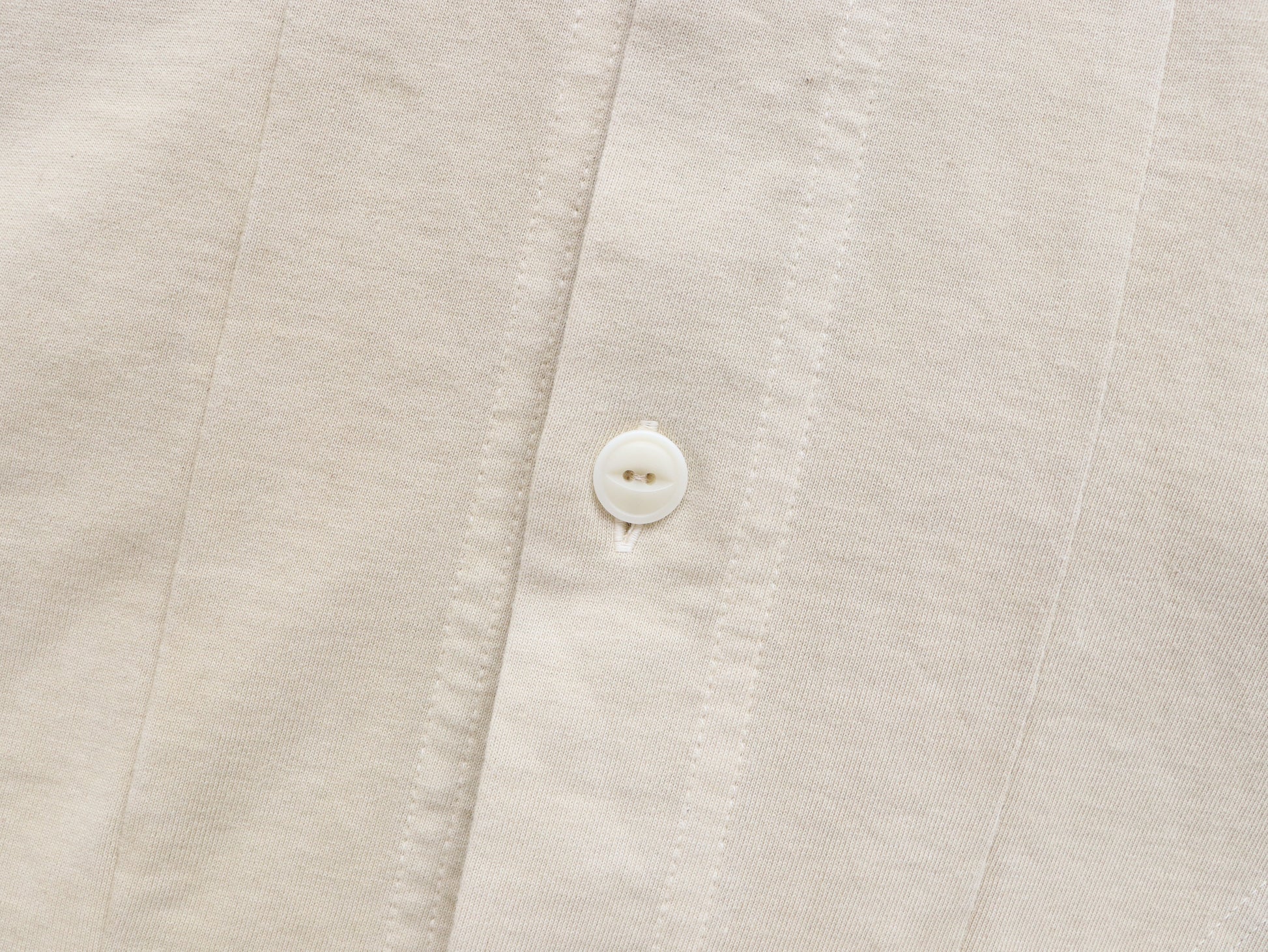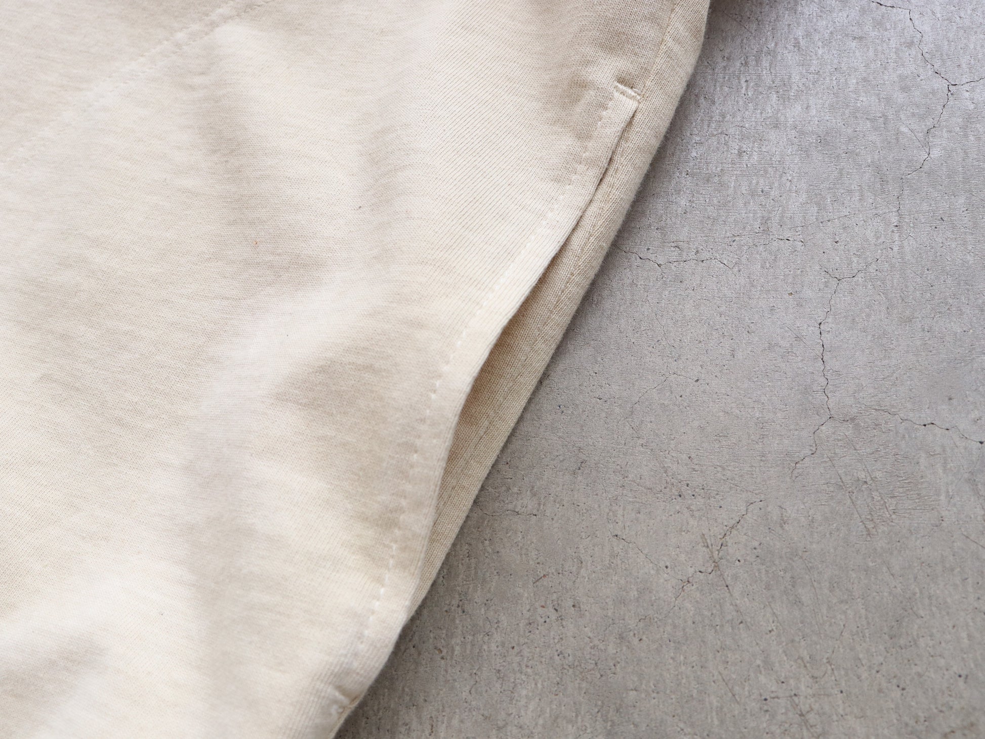 その超長綿を紡いだペルー綿の太番手単糸を、最大限に密度を詰めて編むことで、織り物のようなしっかりとした風合いが生まれます。