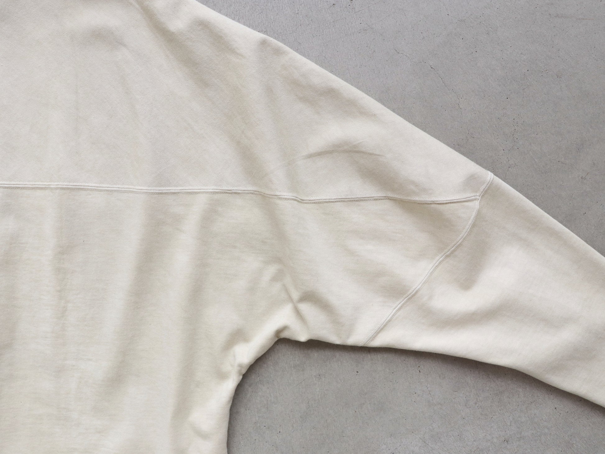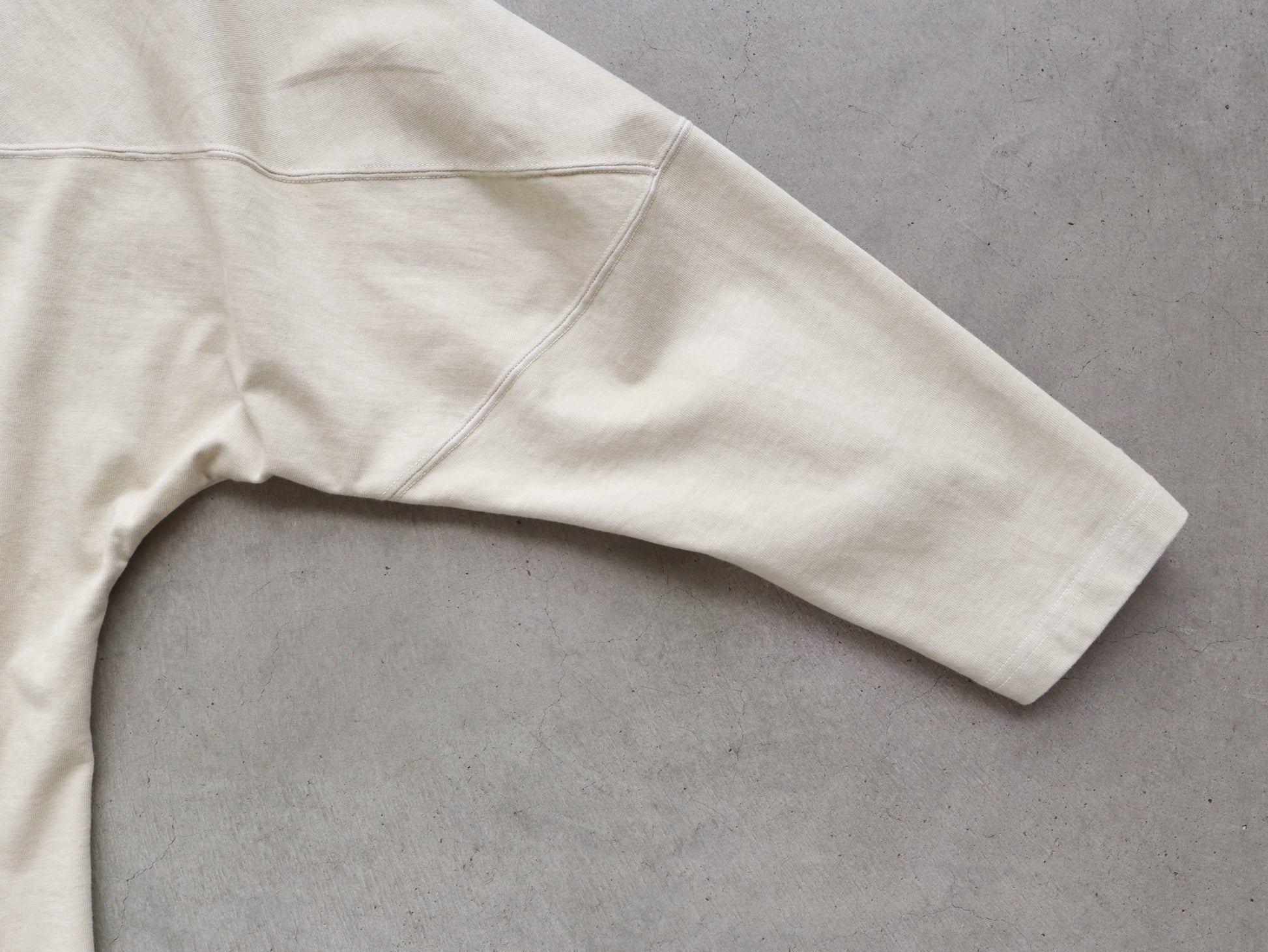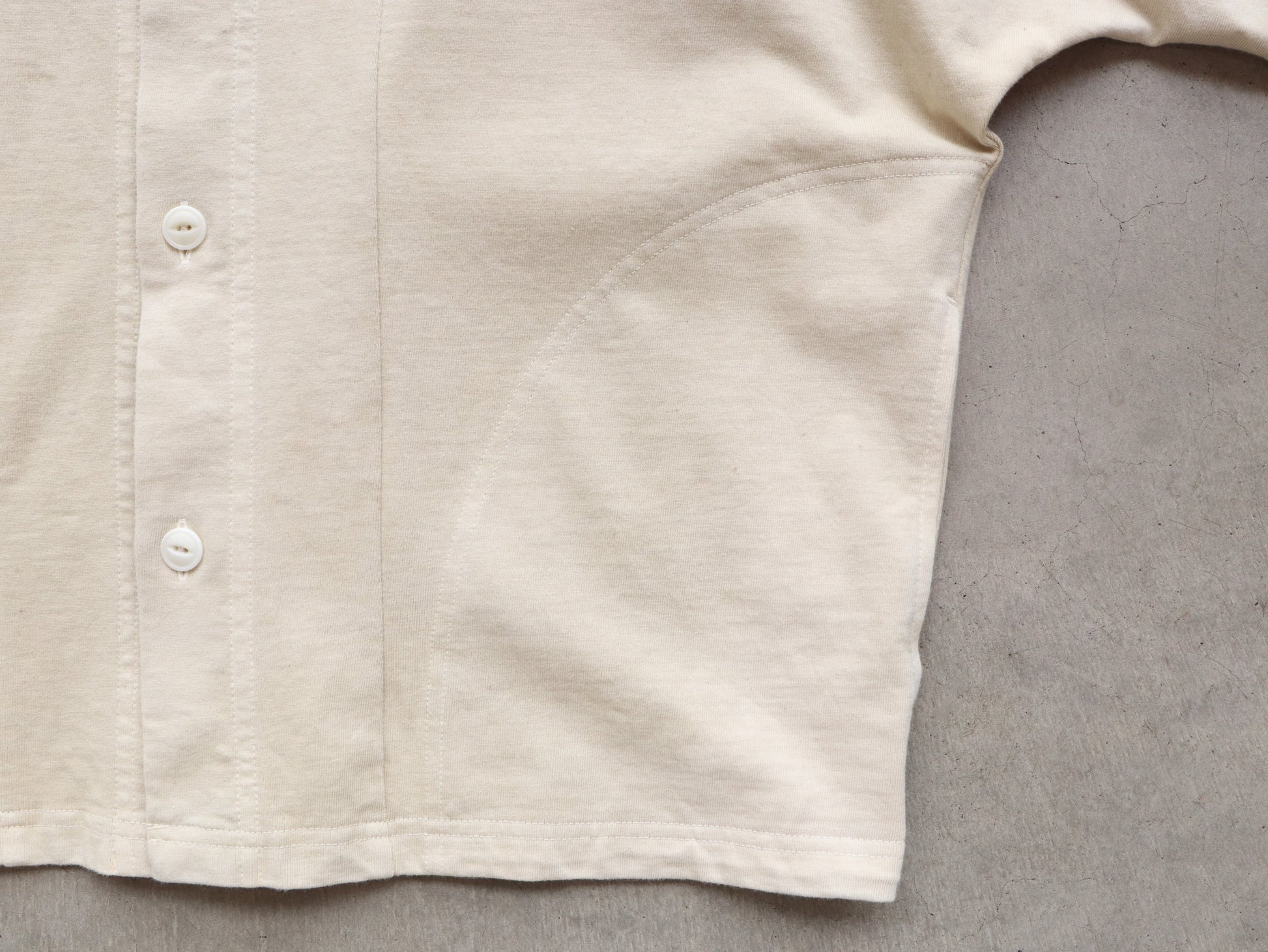 その超長綿を紡いだペルー綿の太番手単糸を、最大限に密度を詰めて編むことで、織り物のようなしっかりとした風合いが生まれます。