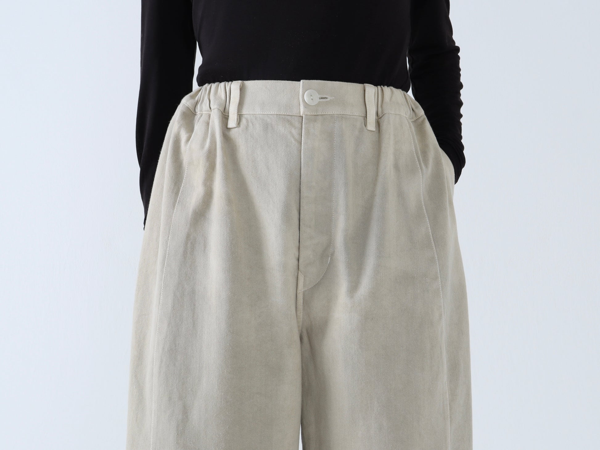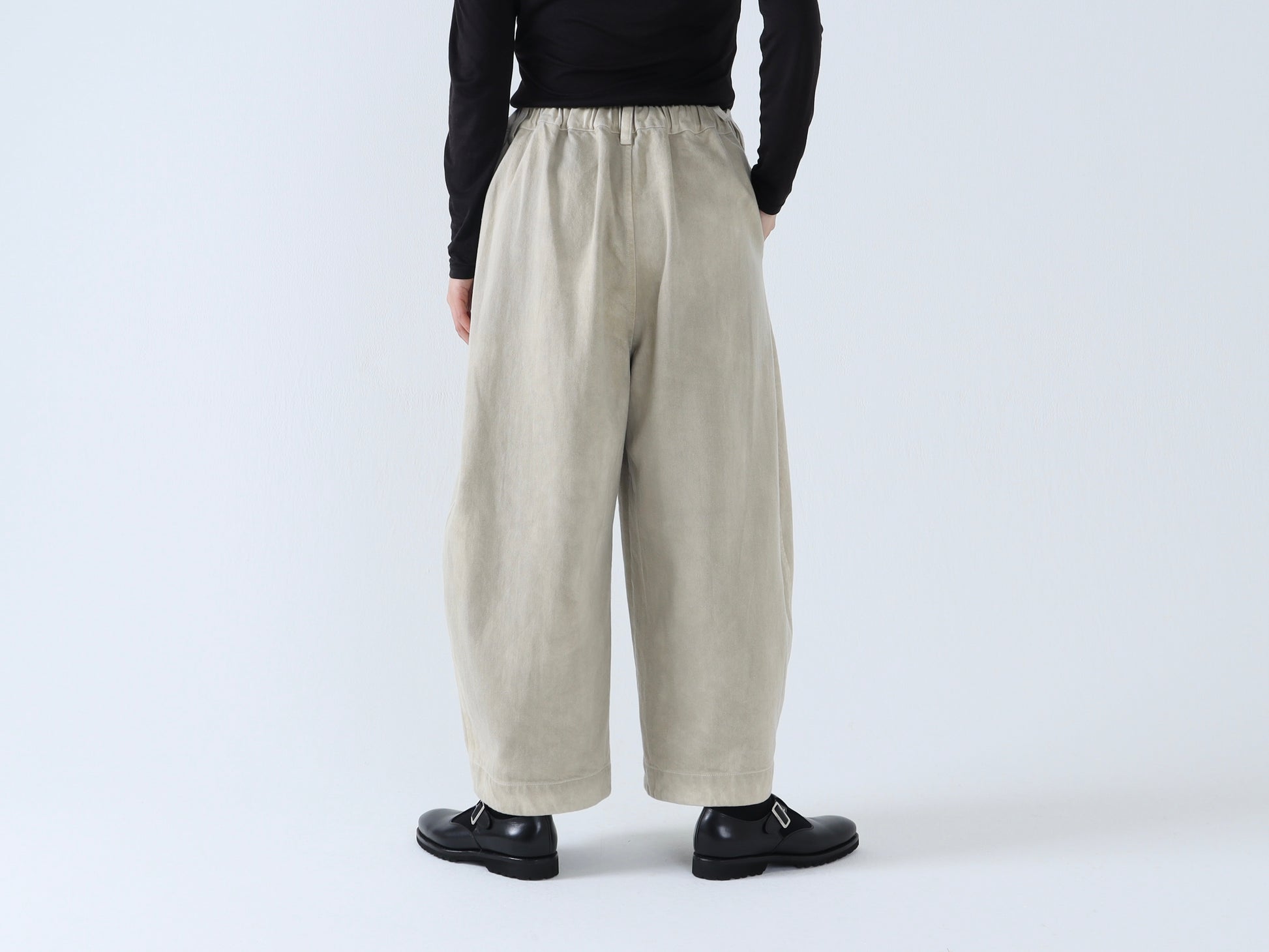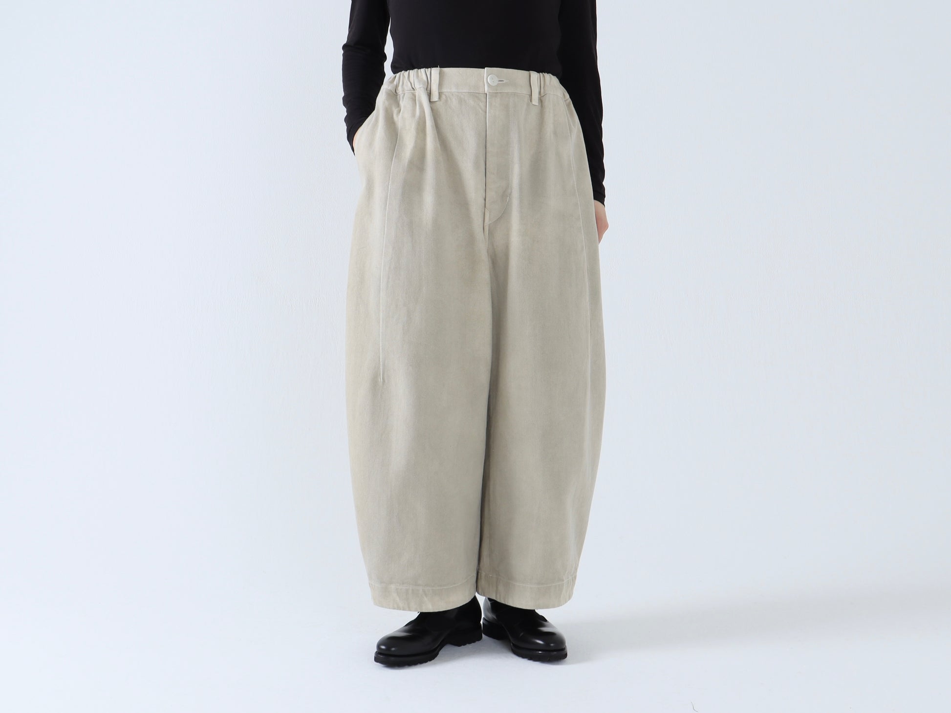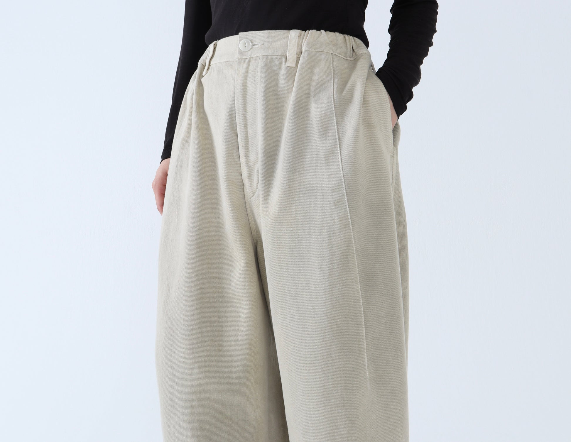 柔らかく肌に馴染む綿デニムで仕立てた、立体感のあるコクーンワイドパンツです。
