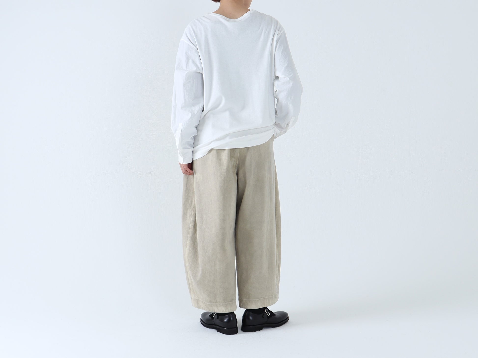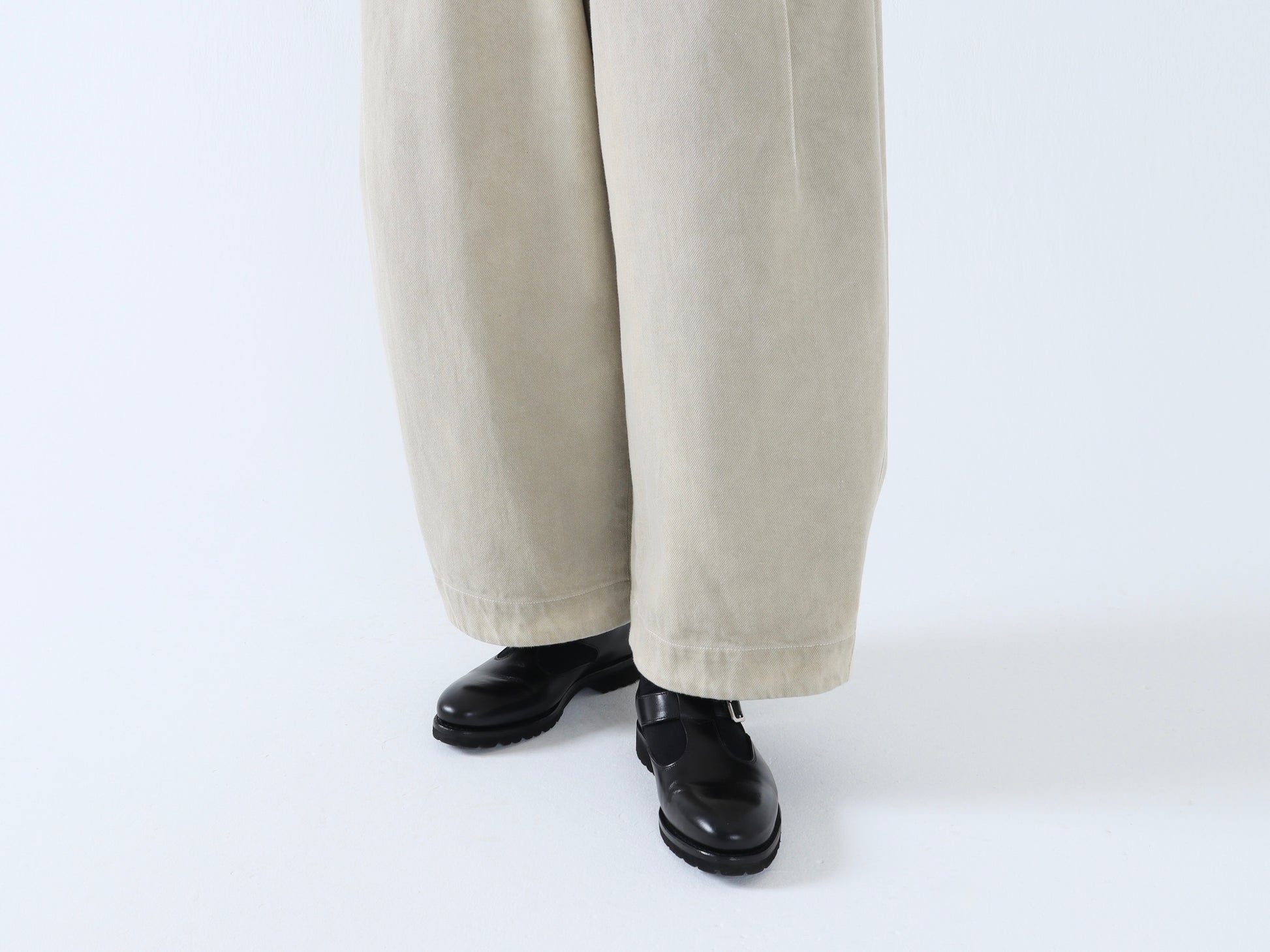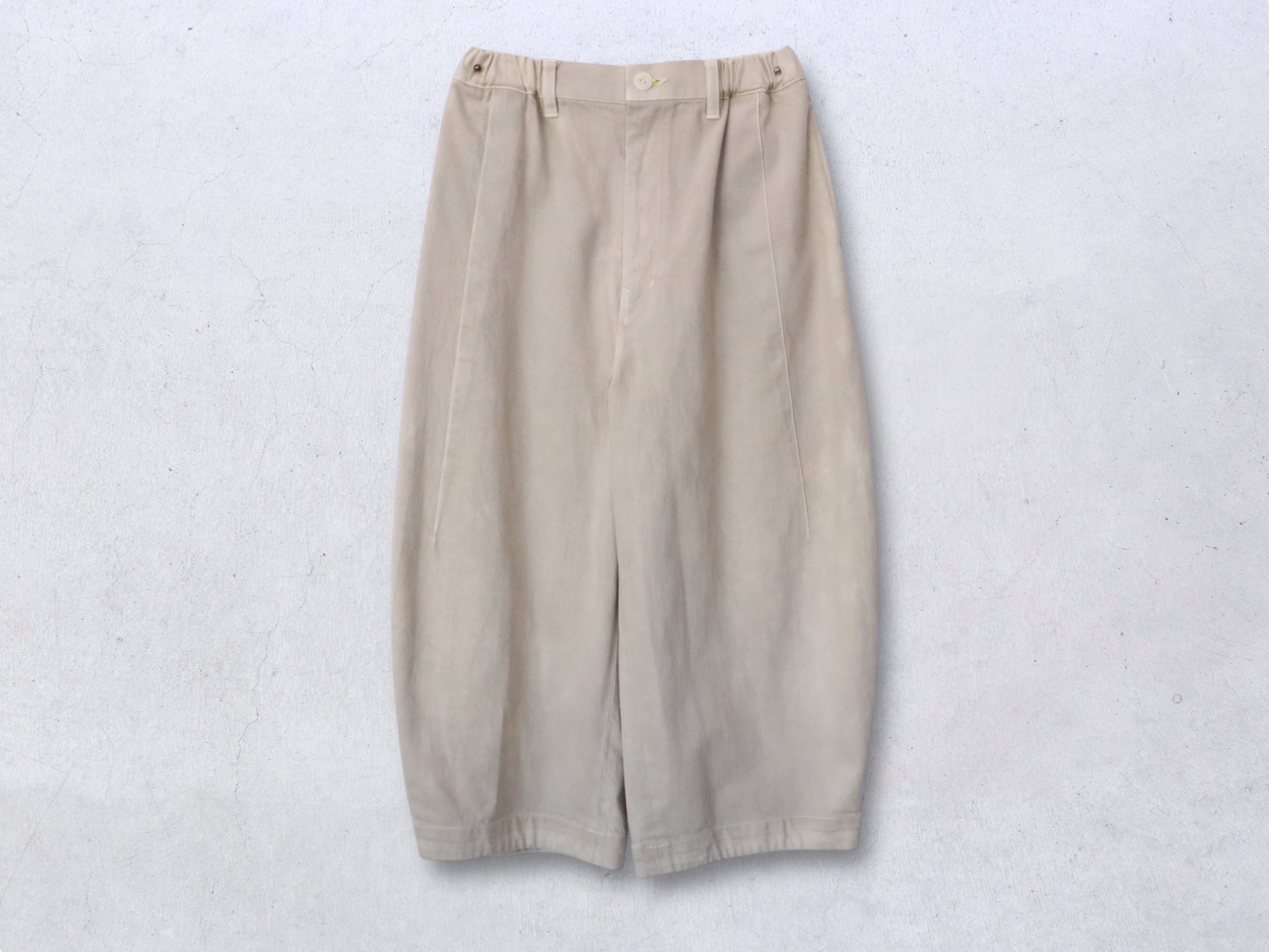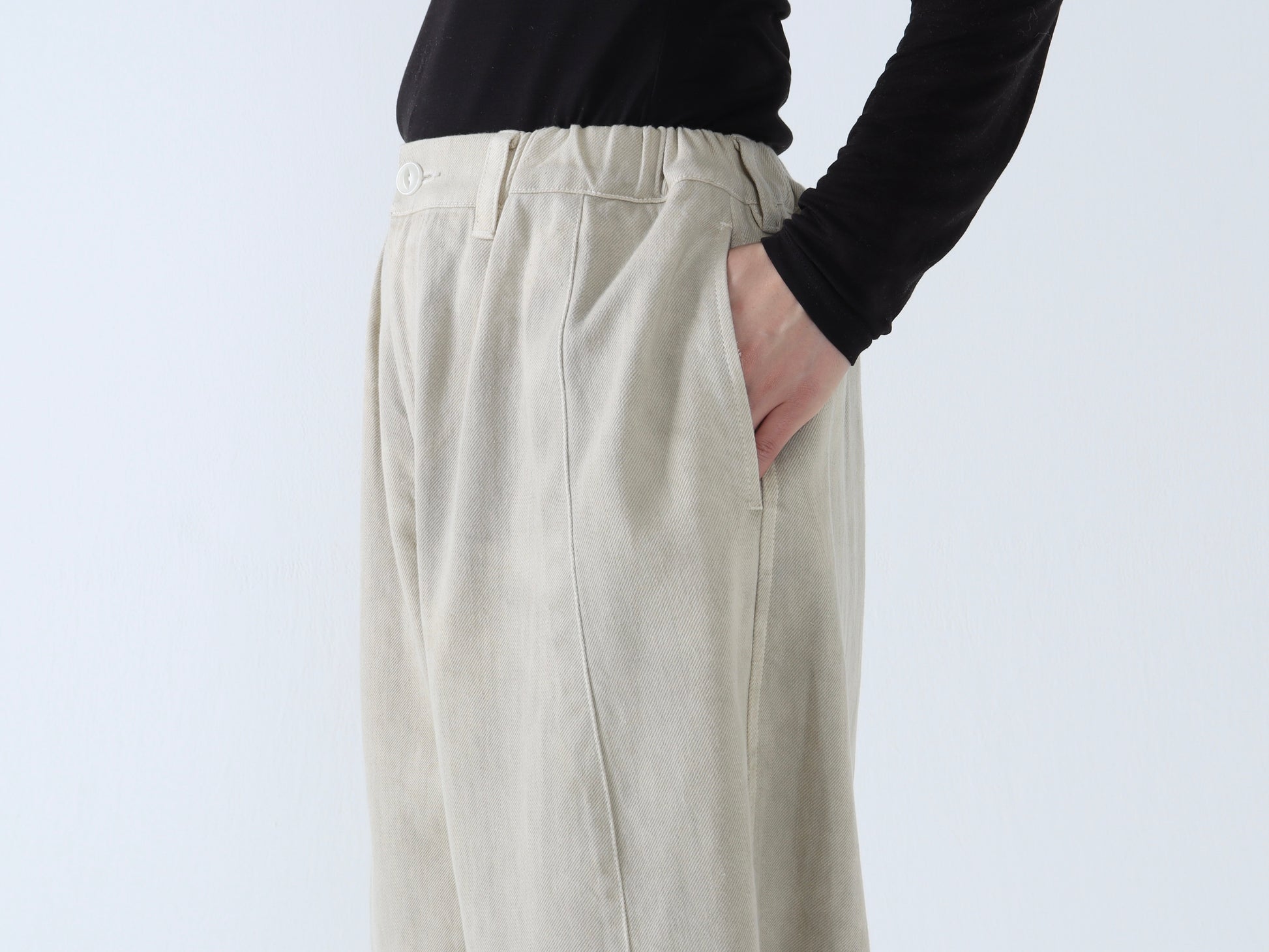 柔らかく肌に馴染む綿デニムで仕立てた、立体感のあるコクーンワイドパンツです。