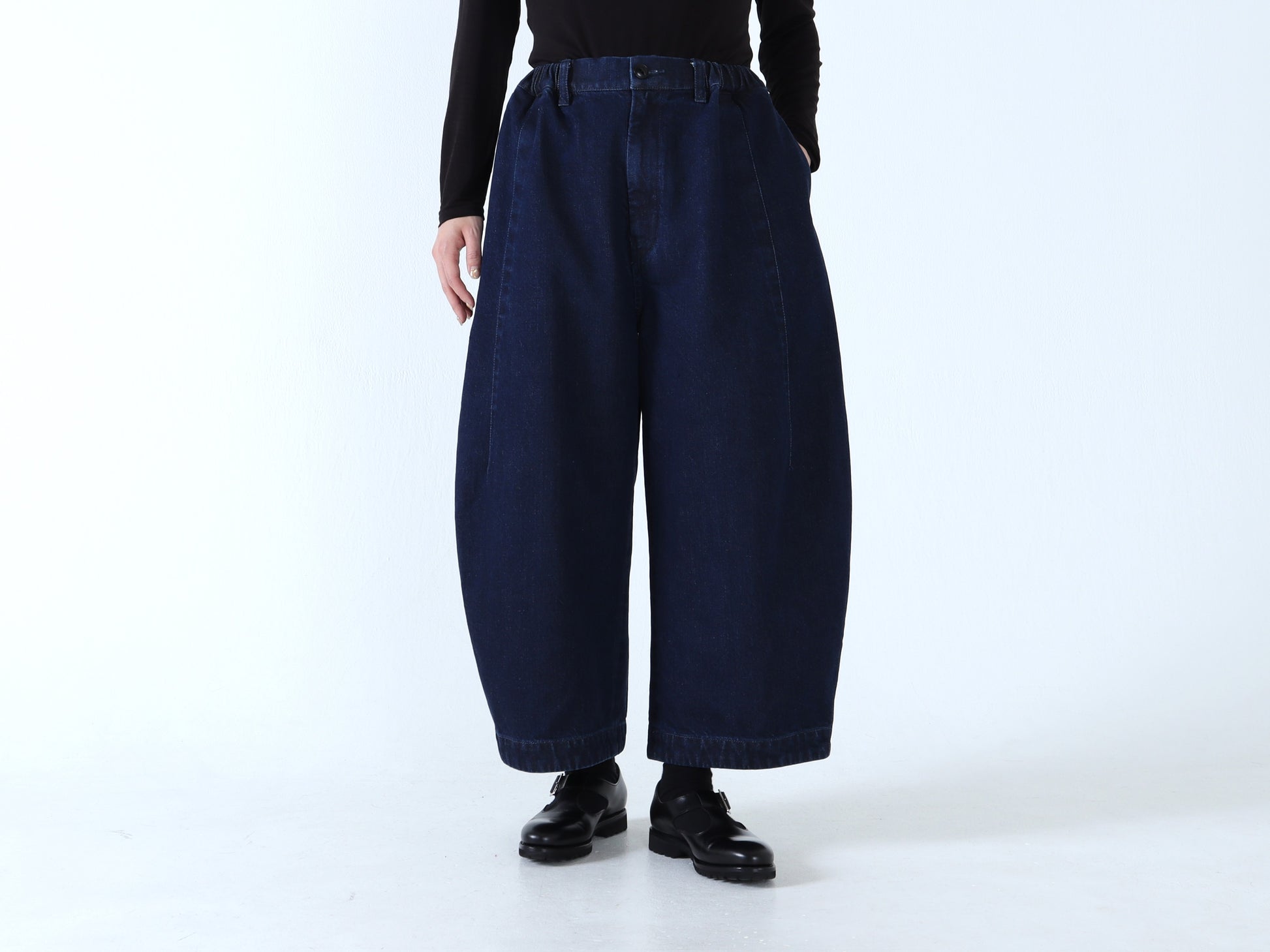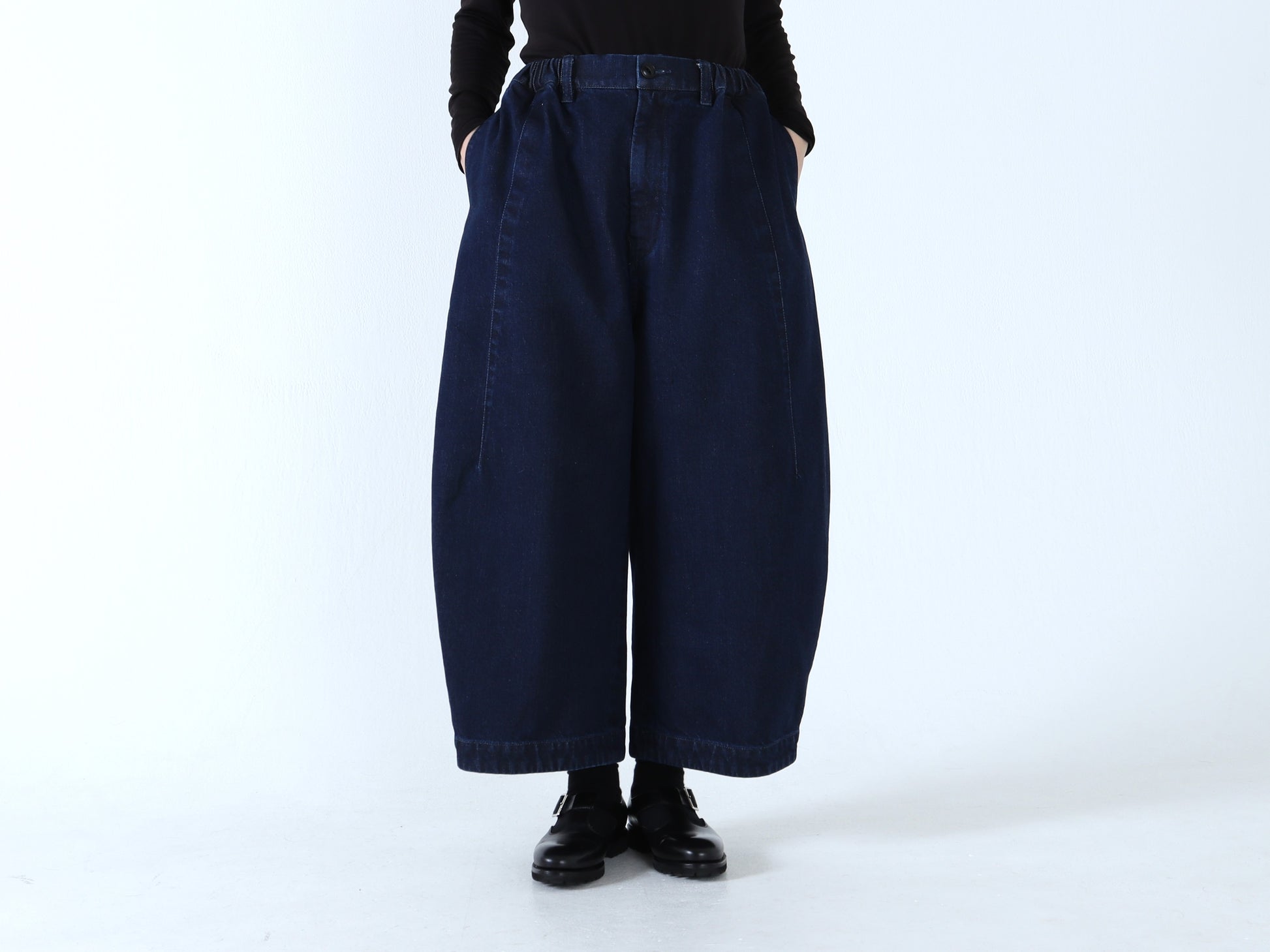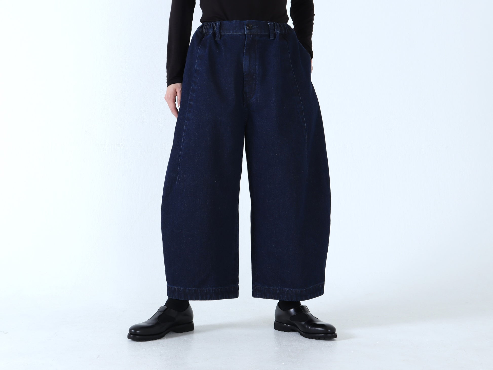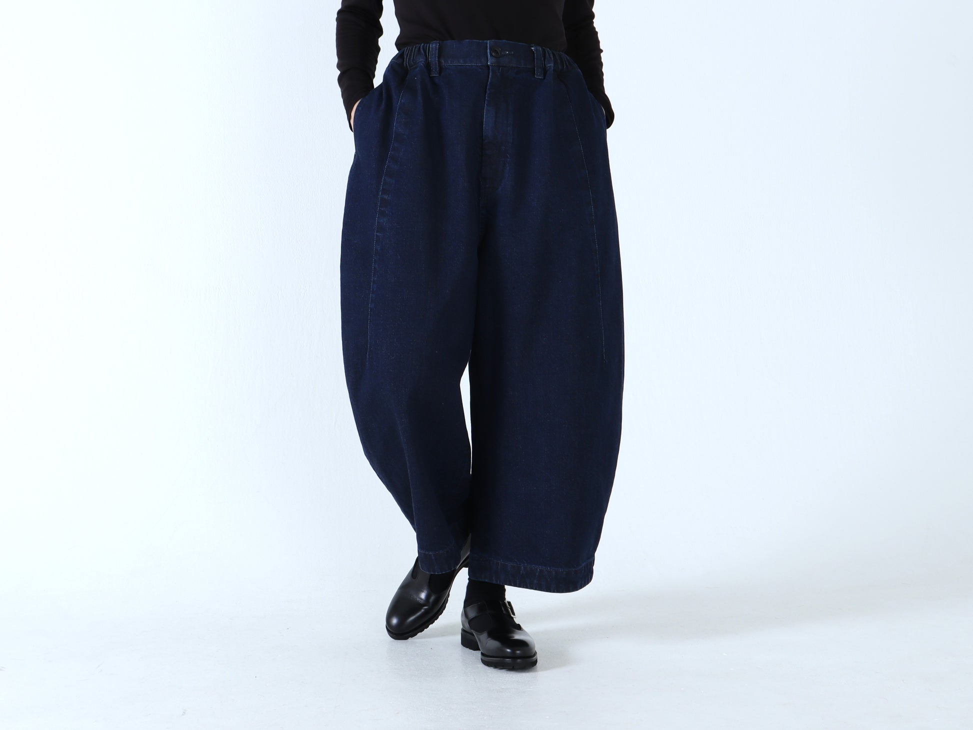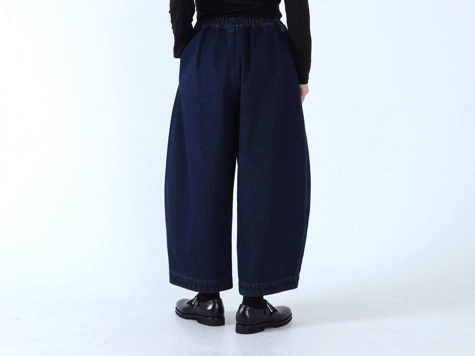 柔らかく肌に馴染む綿デニムで仕立てた、立体感のあるコクーンワイドパンツです。
