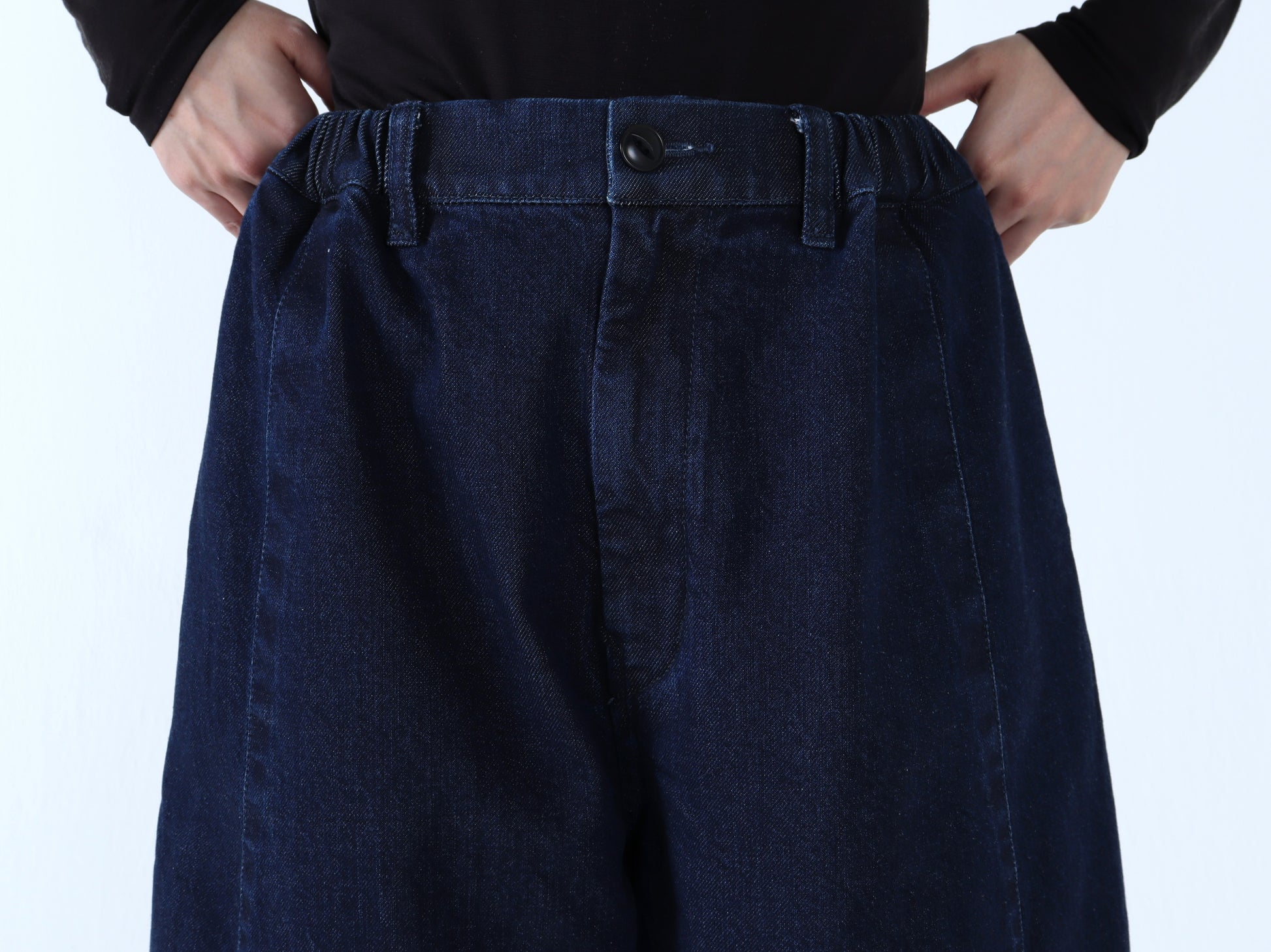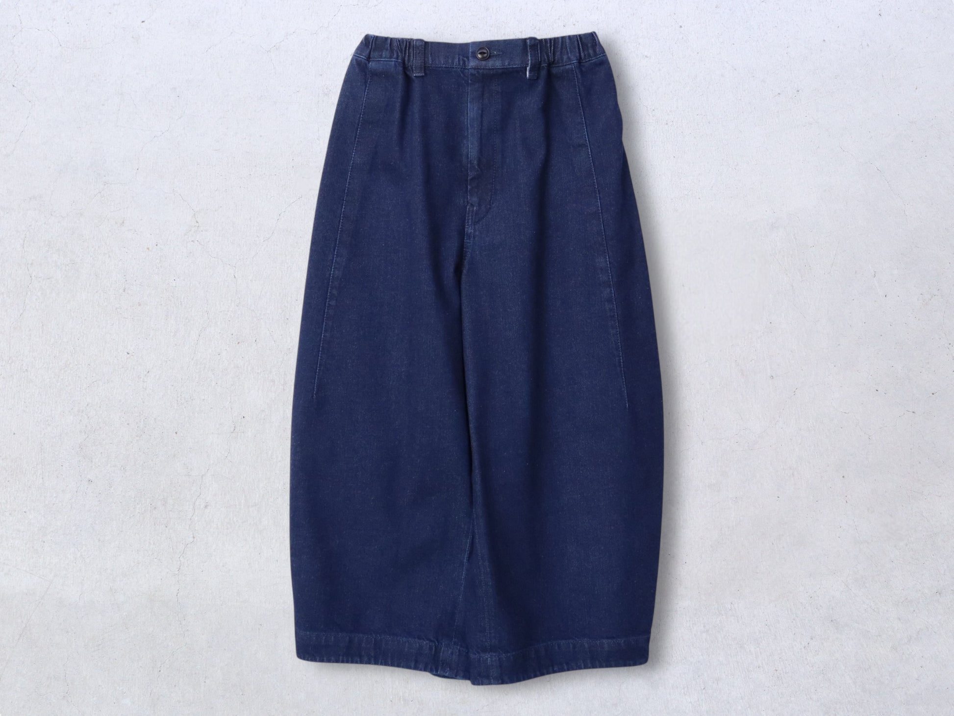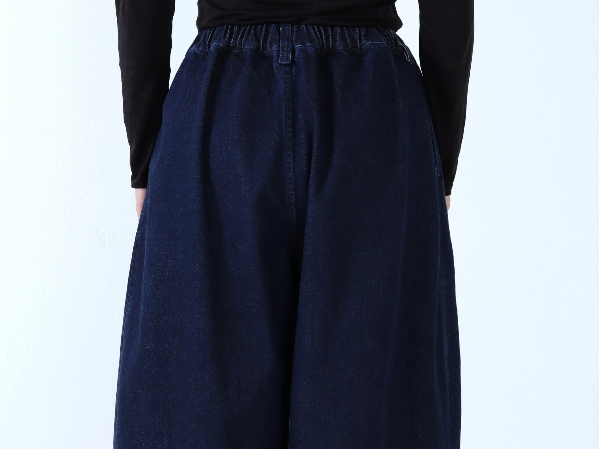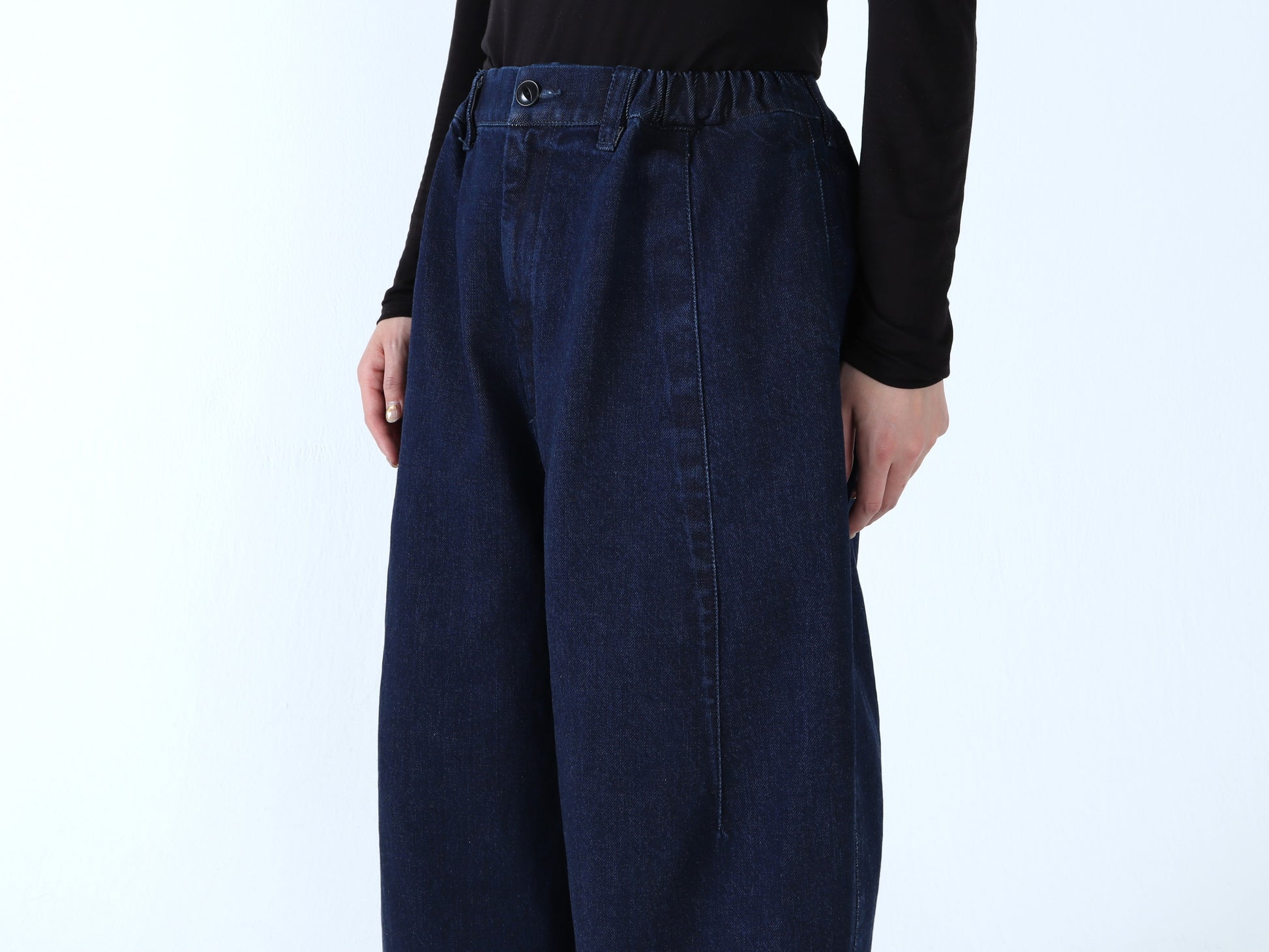 柔らかく肌に馴染む綿デニムで仕立てた、立体感のあるコクーンワイドパンツです。