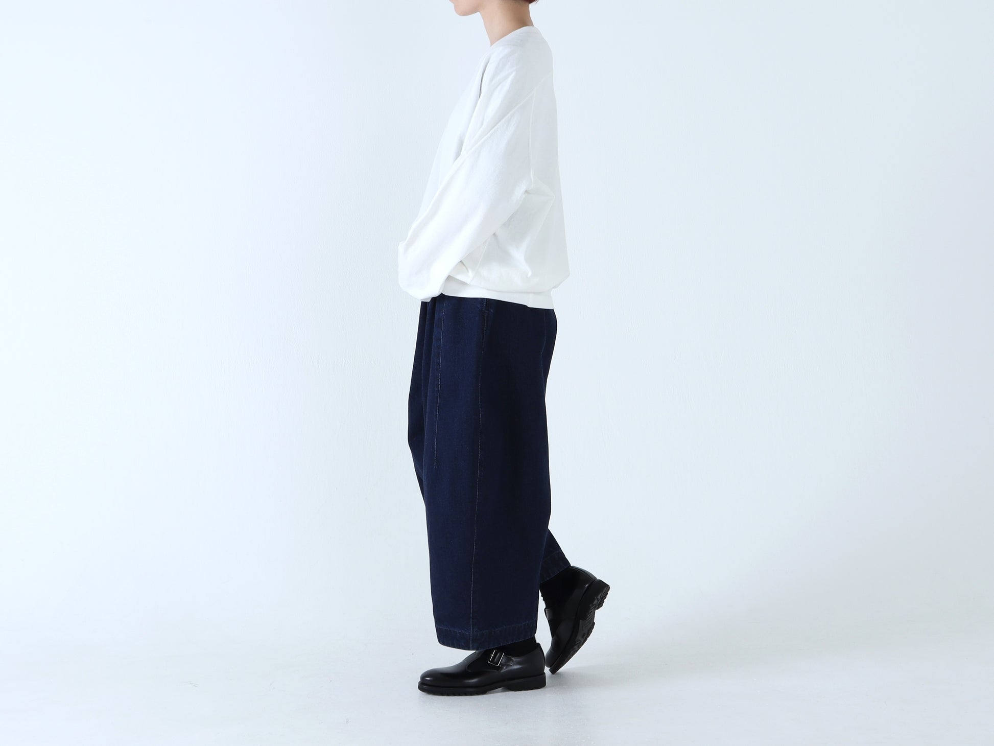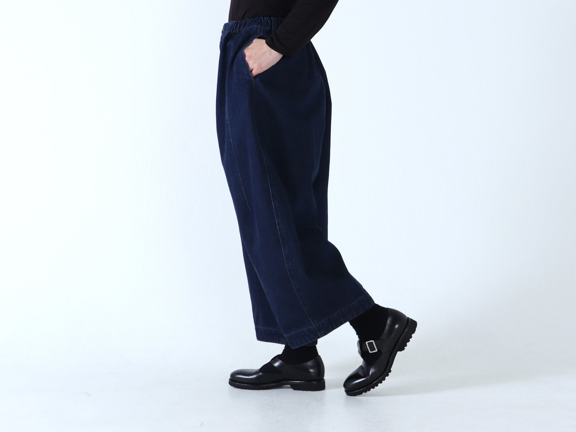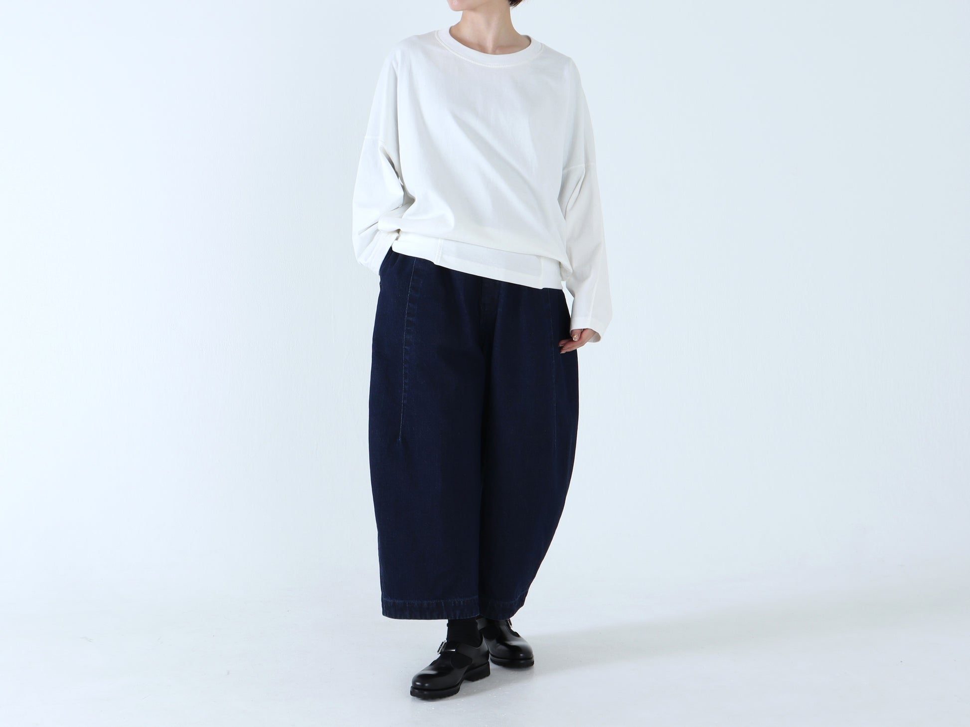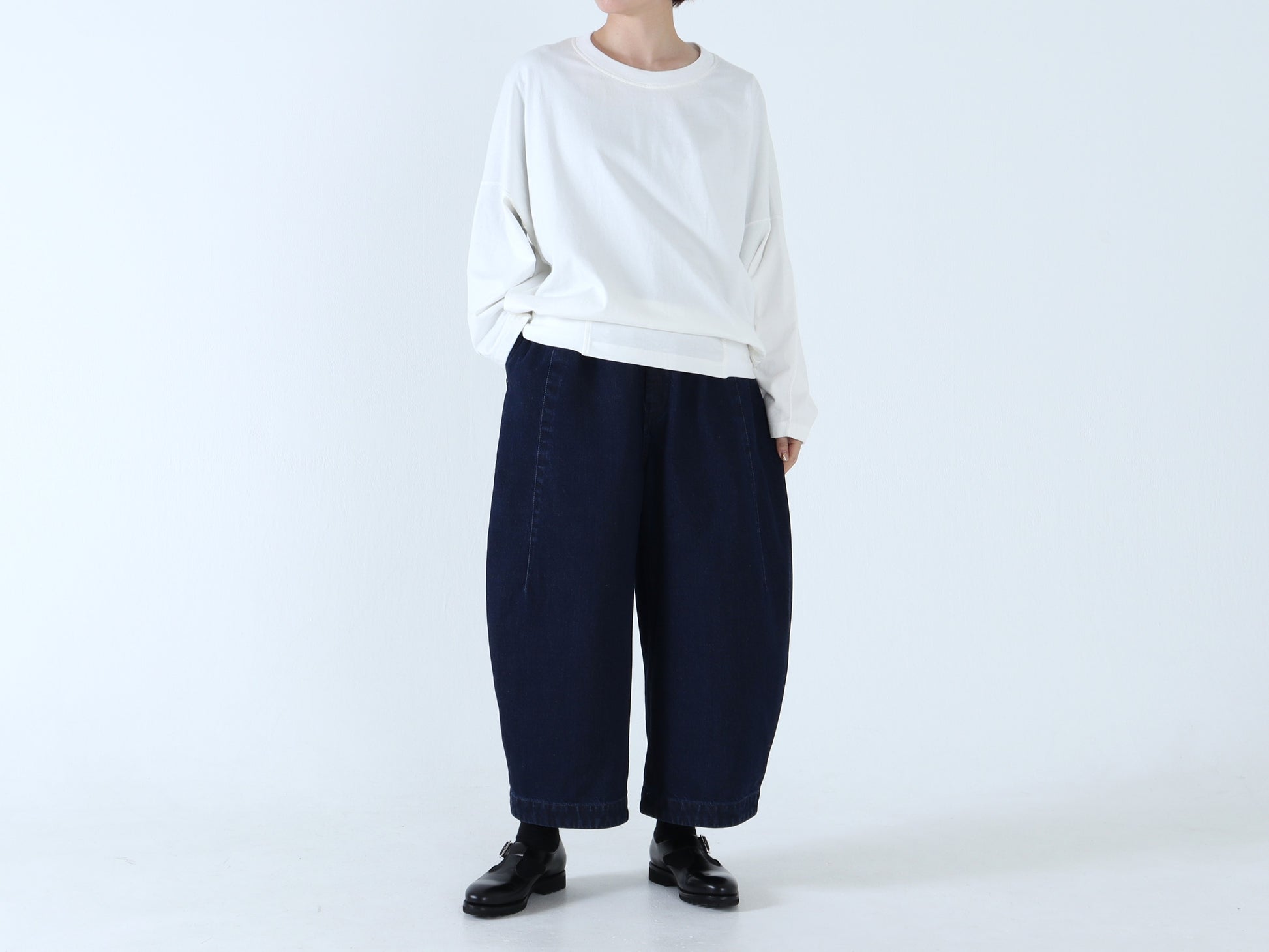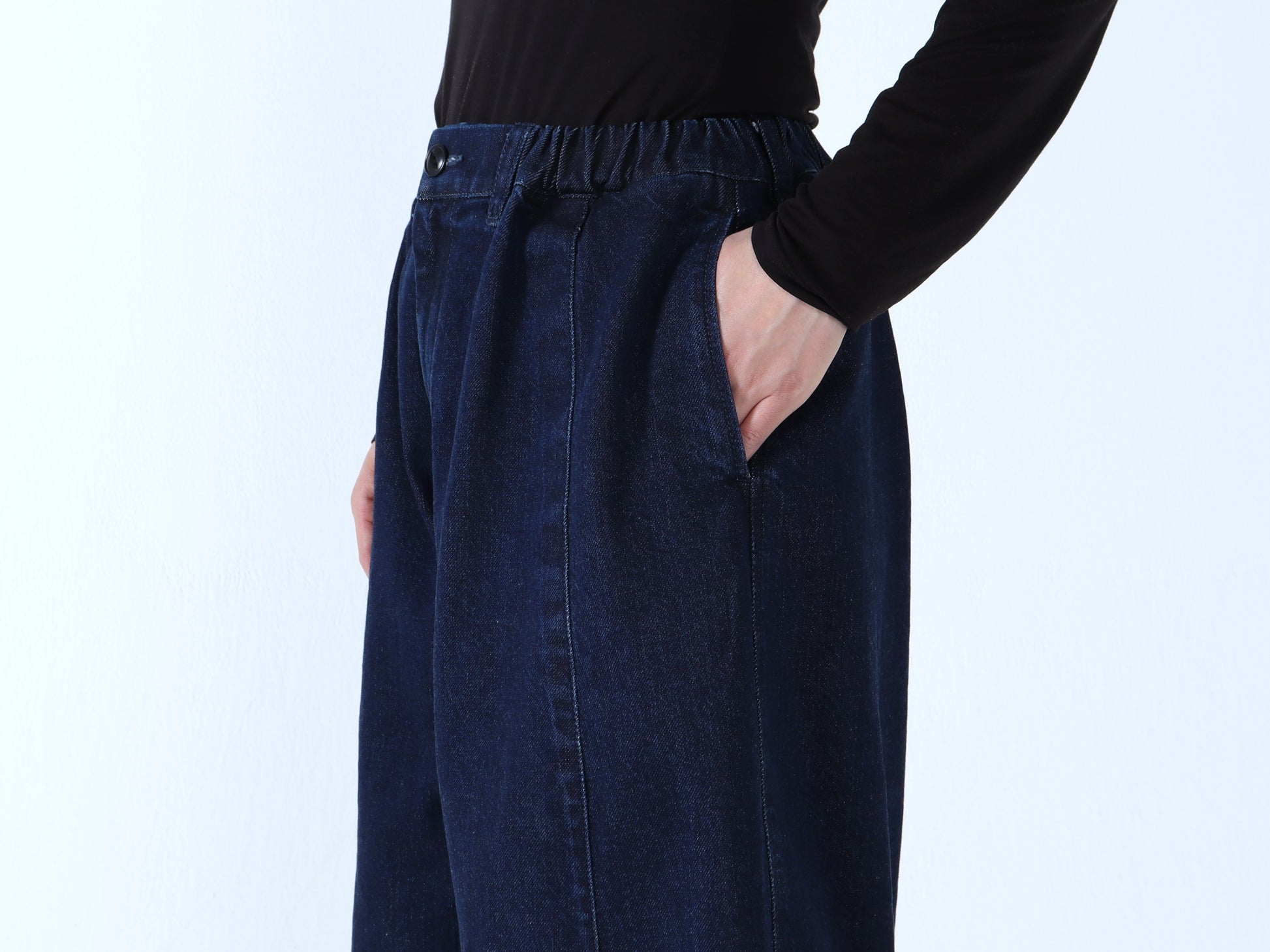 柔らかく肌に馴染む綿デニムで仕立てた、立体感のあるコクーンワイドパンツです。