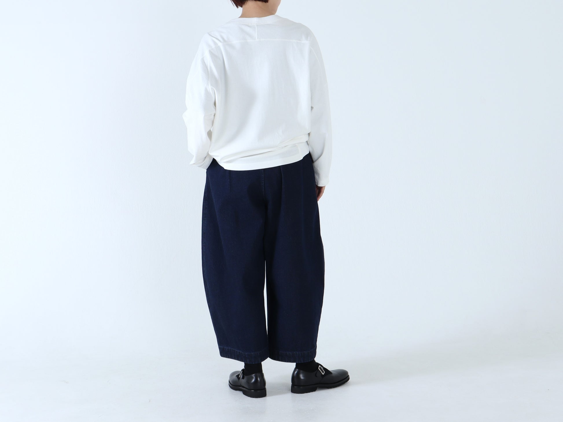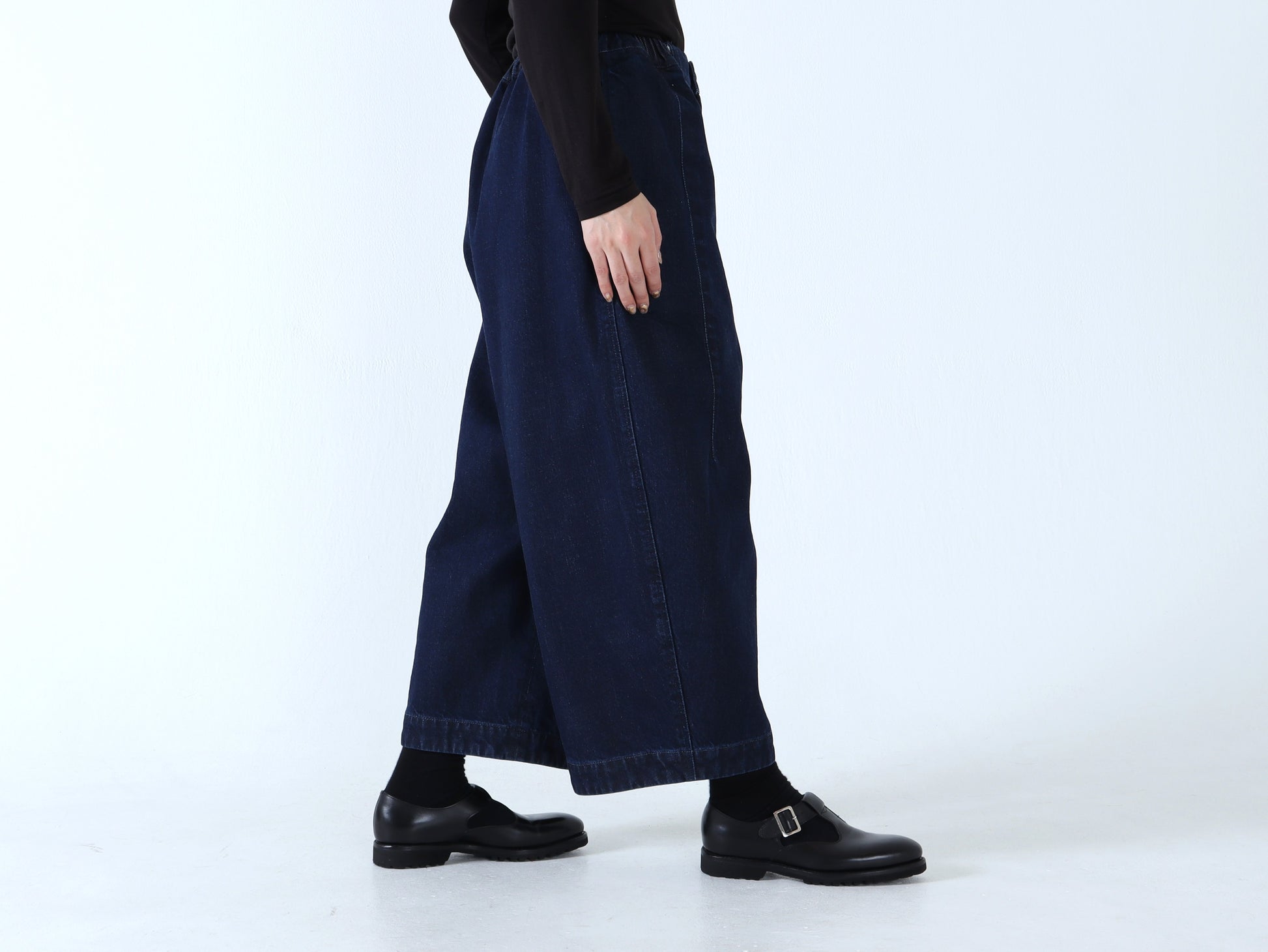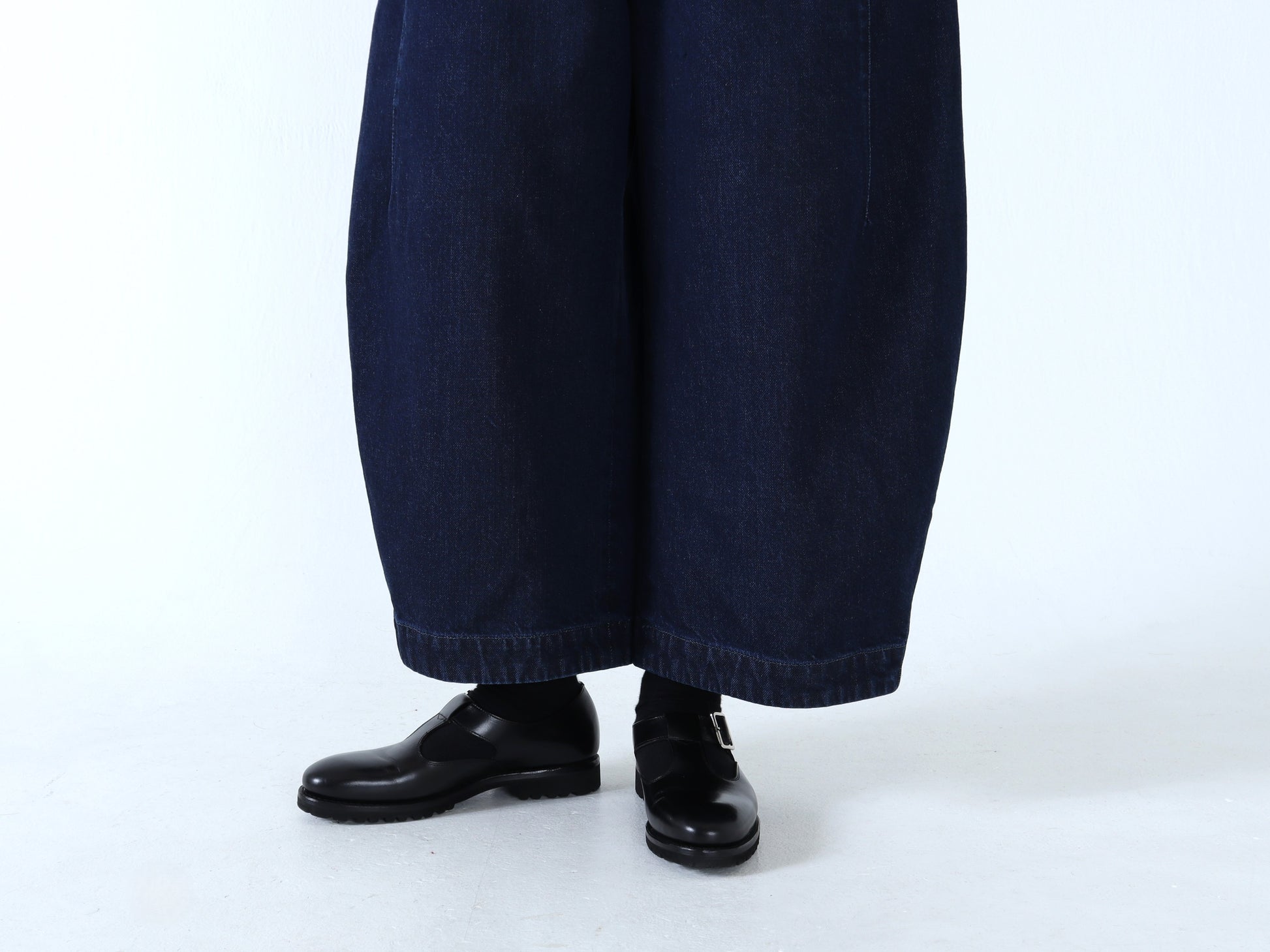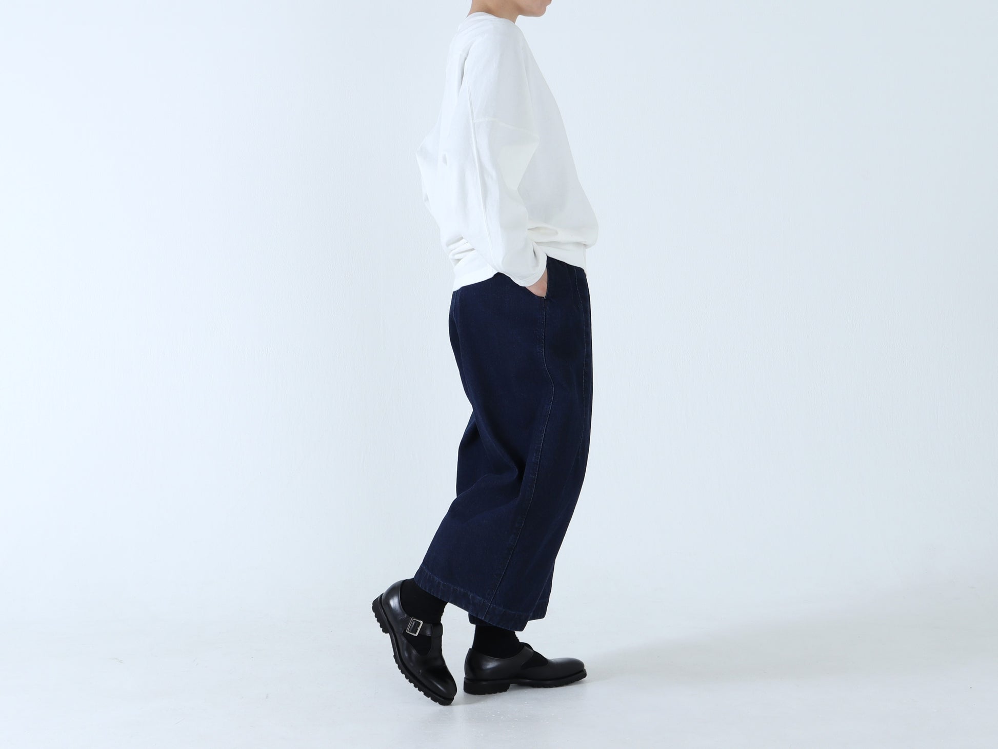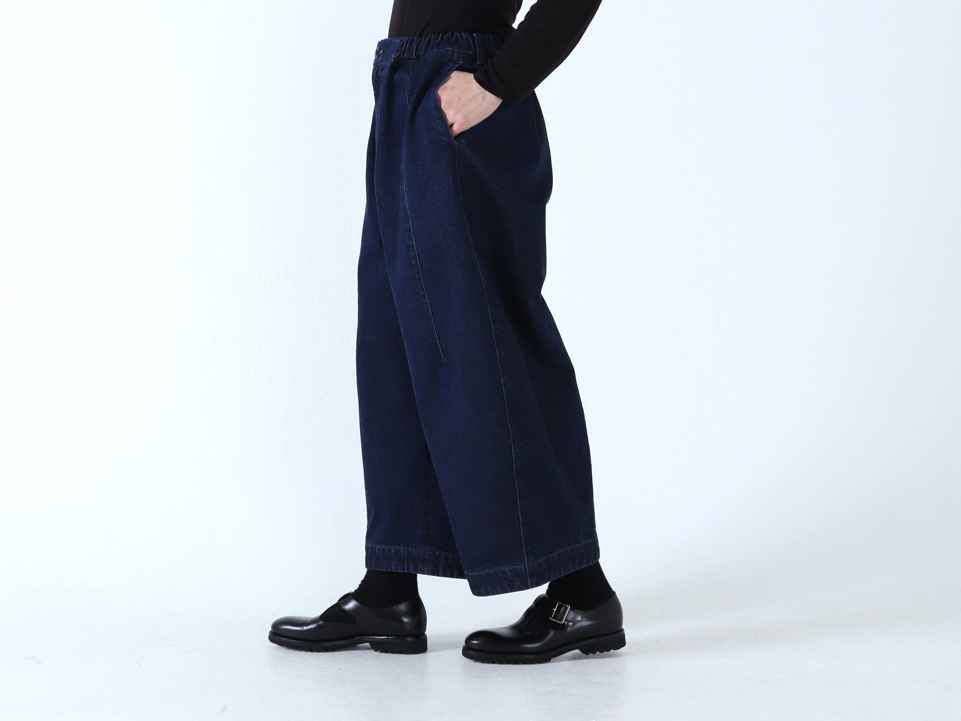 柔らかく肌に馴染む綿デニムで仕立てた、立体感のあるコクーンワイドパンツです。