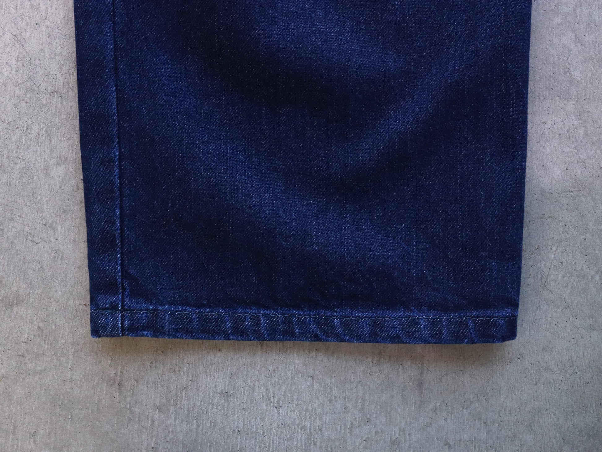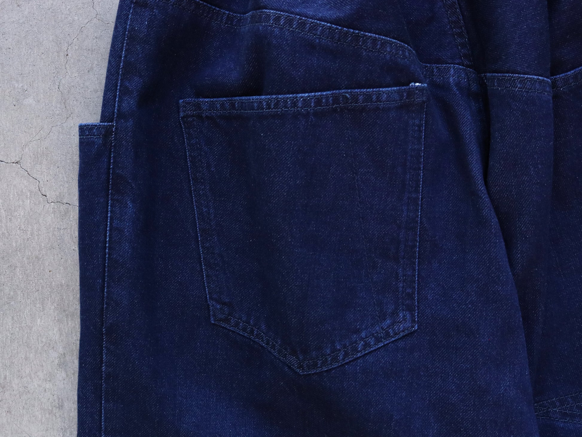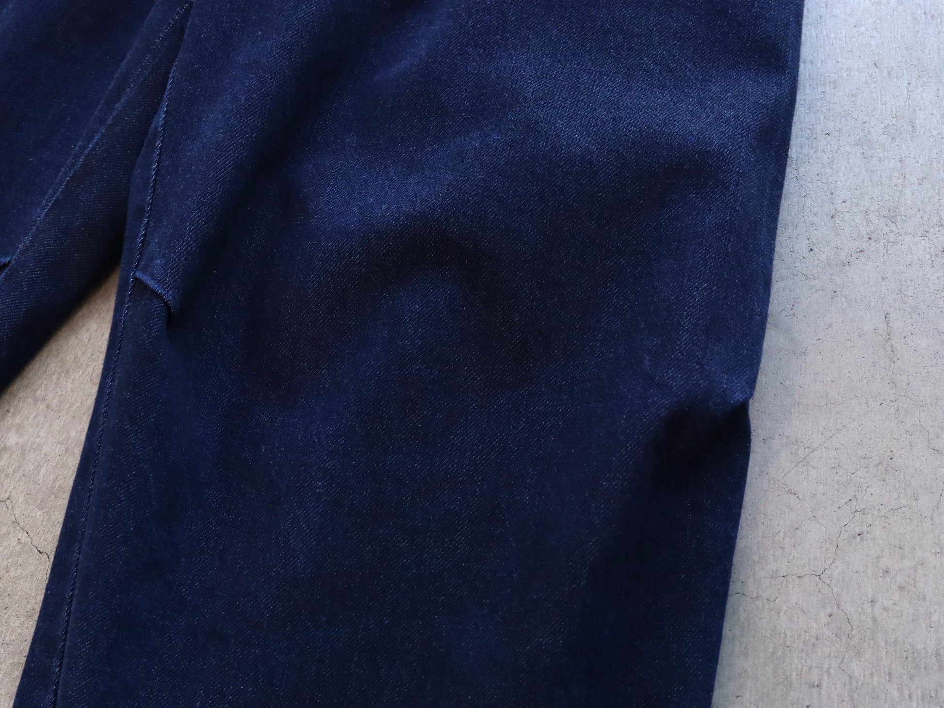 タテ糸に使用しているピマコットンの糸をインディゴ染めし、生地にした後、バイオ加工を施しています。バイオ加工によって生地が柔らかく馴染み、快適な着用感に仕上がります。また、着用を重ねることでヴィンテージ感のある独特な色落ちが生まれ、経年変化が楽しめます。