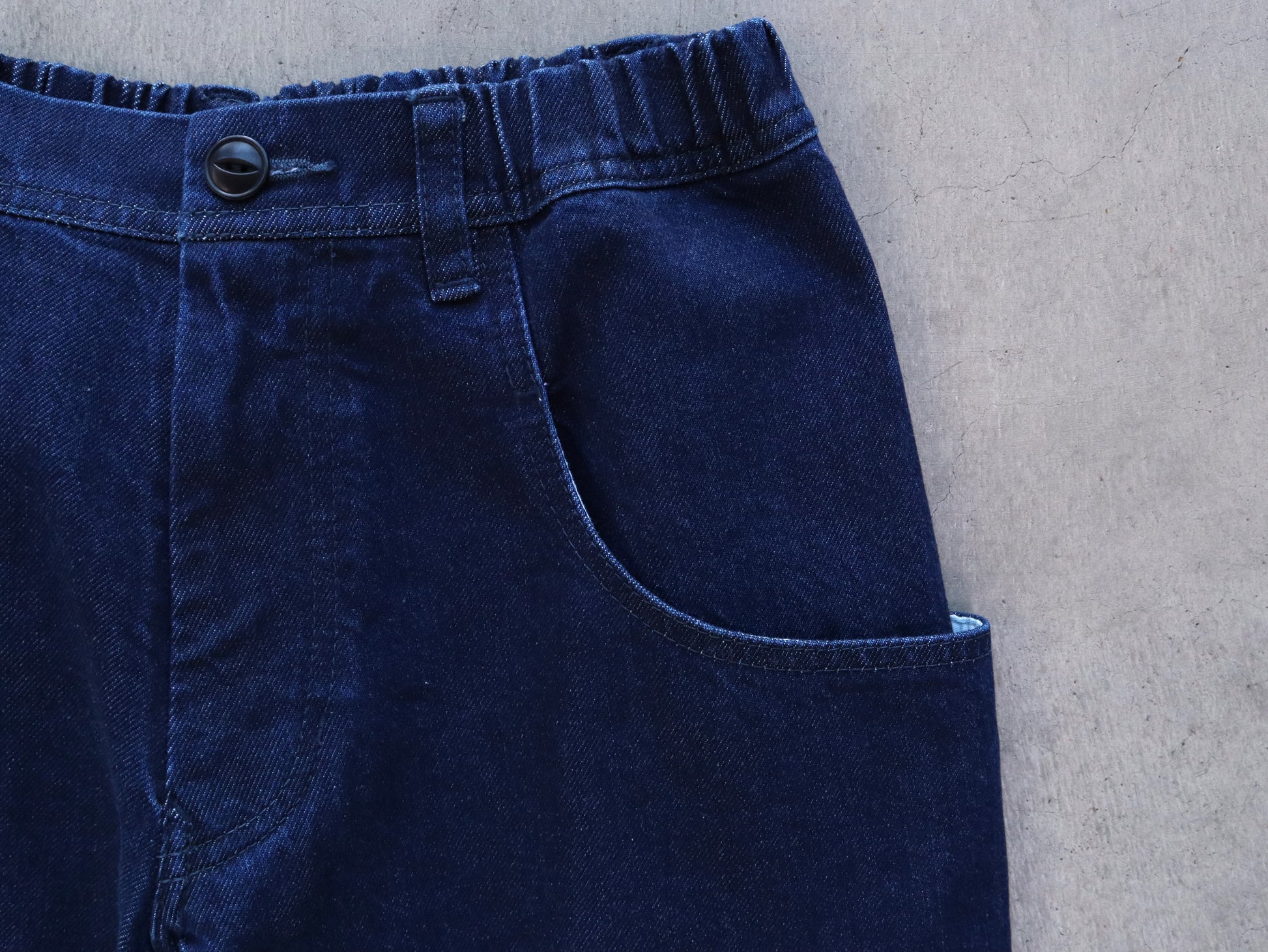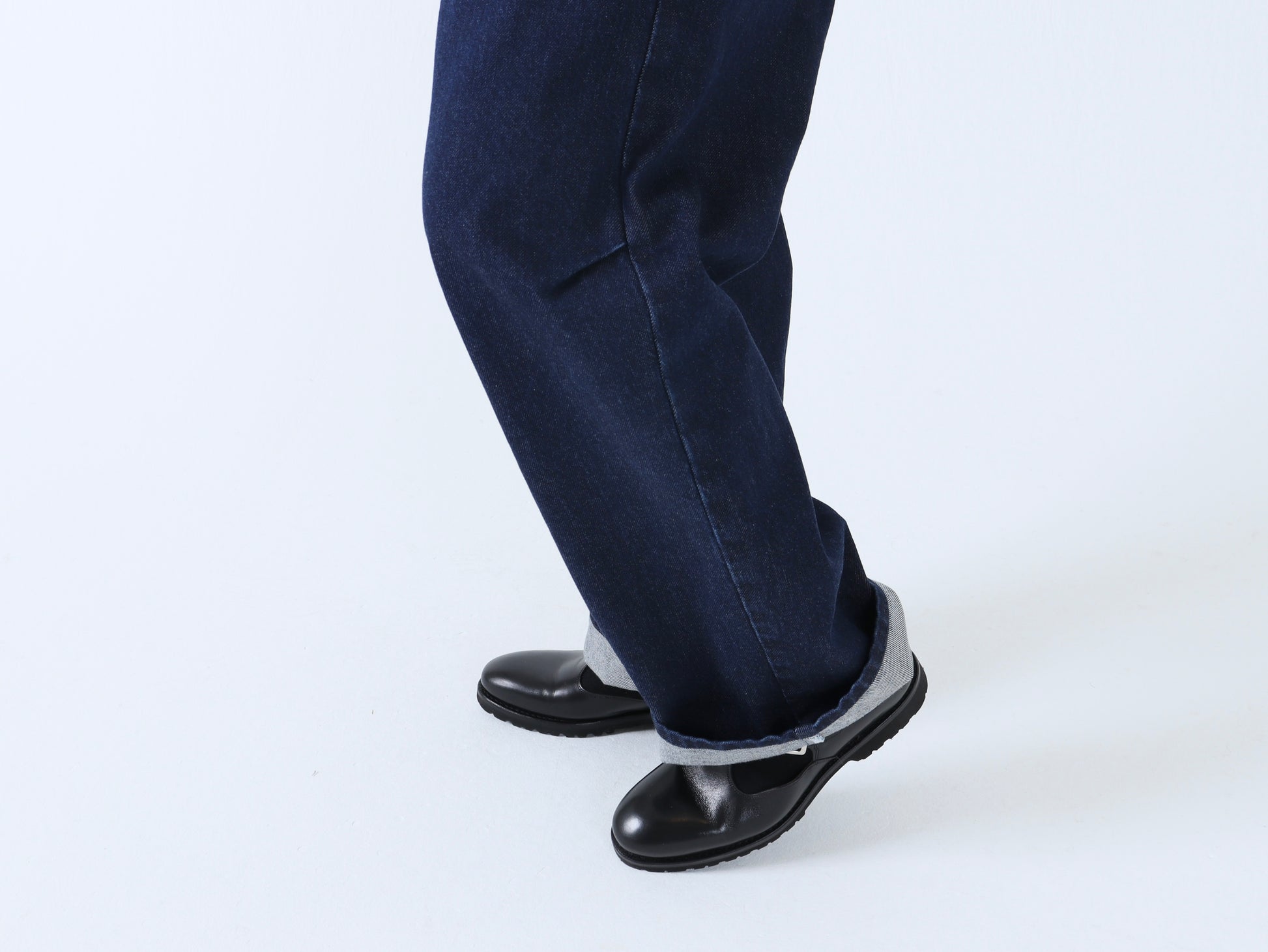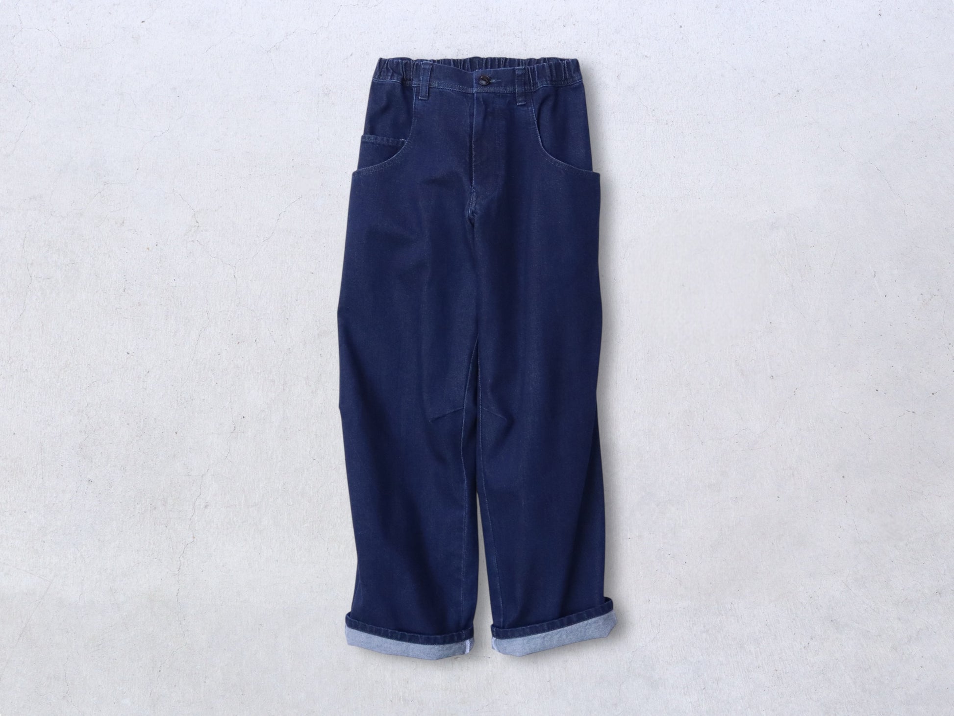 タテ糸に使用しているピマコットンの糸をインディゴ染めし、生地にした後、バイオ加工を施しています。バイオ加工によって生地が柔らかく馴染み、快適な着用感に仕上がります。また、着用を重ねることでヴィンテージ感のある独特な色落ちが生まれ、経年変化が楽しめます。
