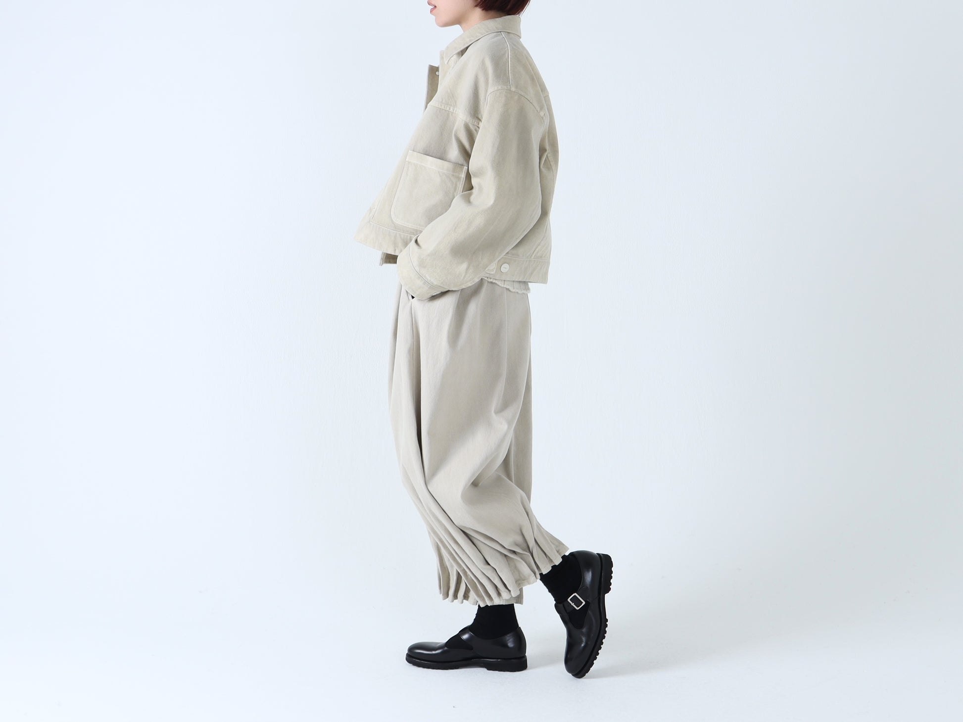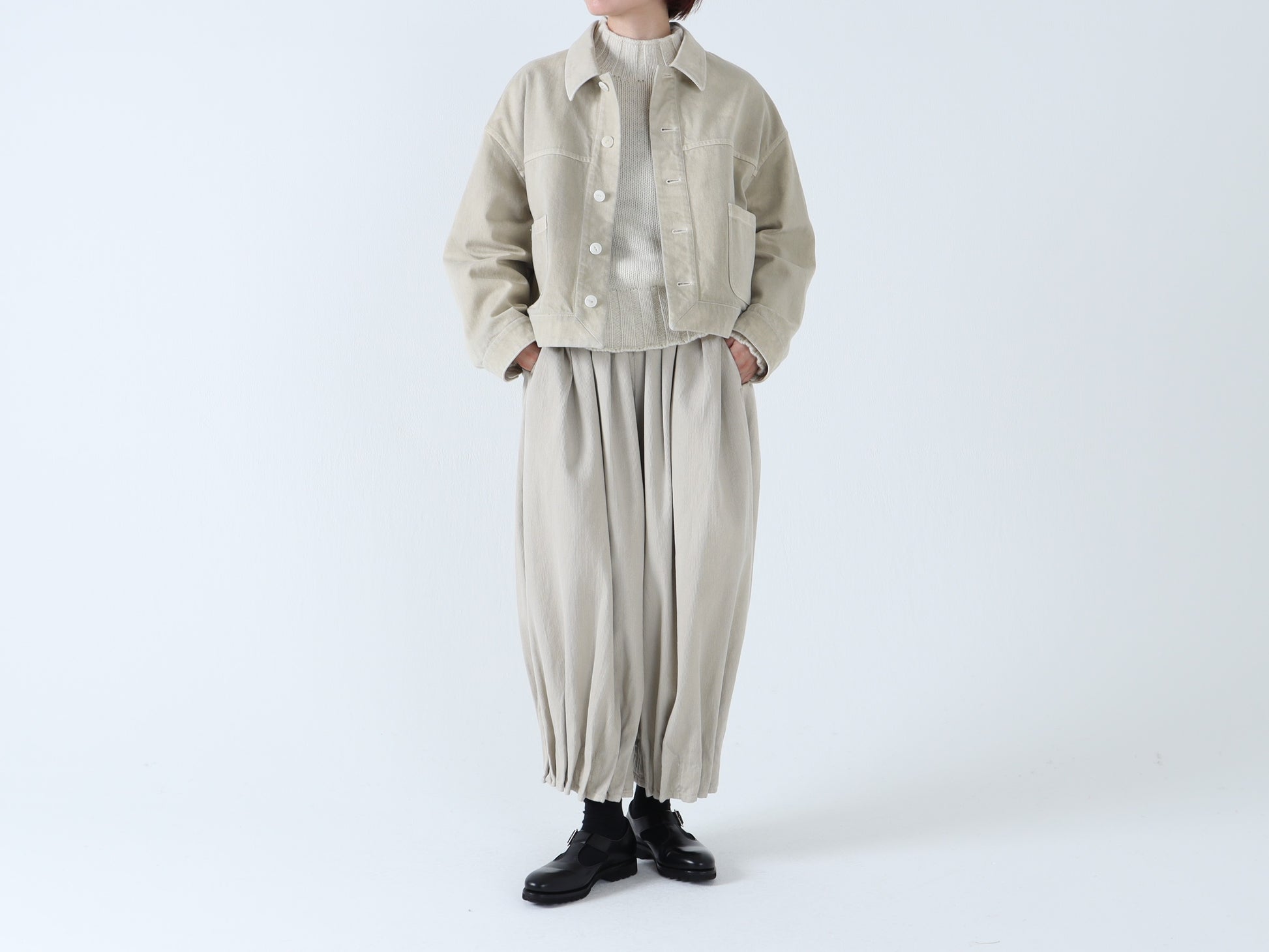 短めの着丈は、ワイドパンツやバルーンスカートなど、どんなボトムスとも好相性です。