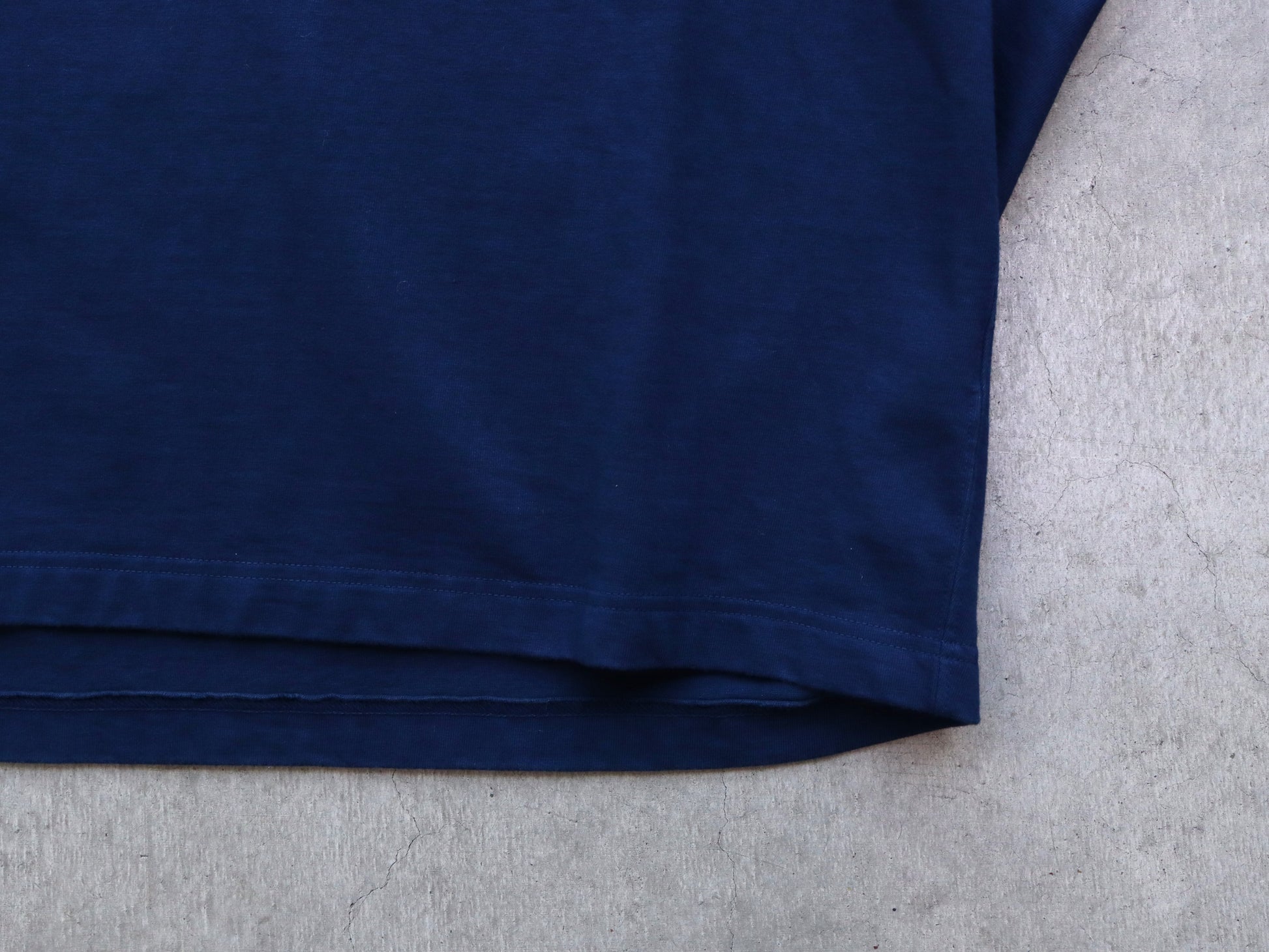 その超長綿を紡いだペルー綿の太番手単糸を、最大限に密度を詰めて編むことで、織り物のようなしっかりとした風合いが生まれます。