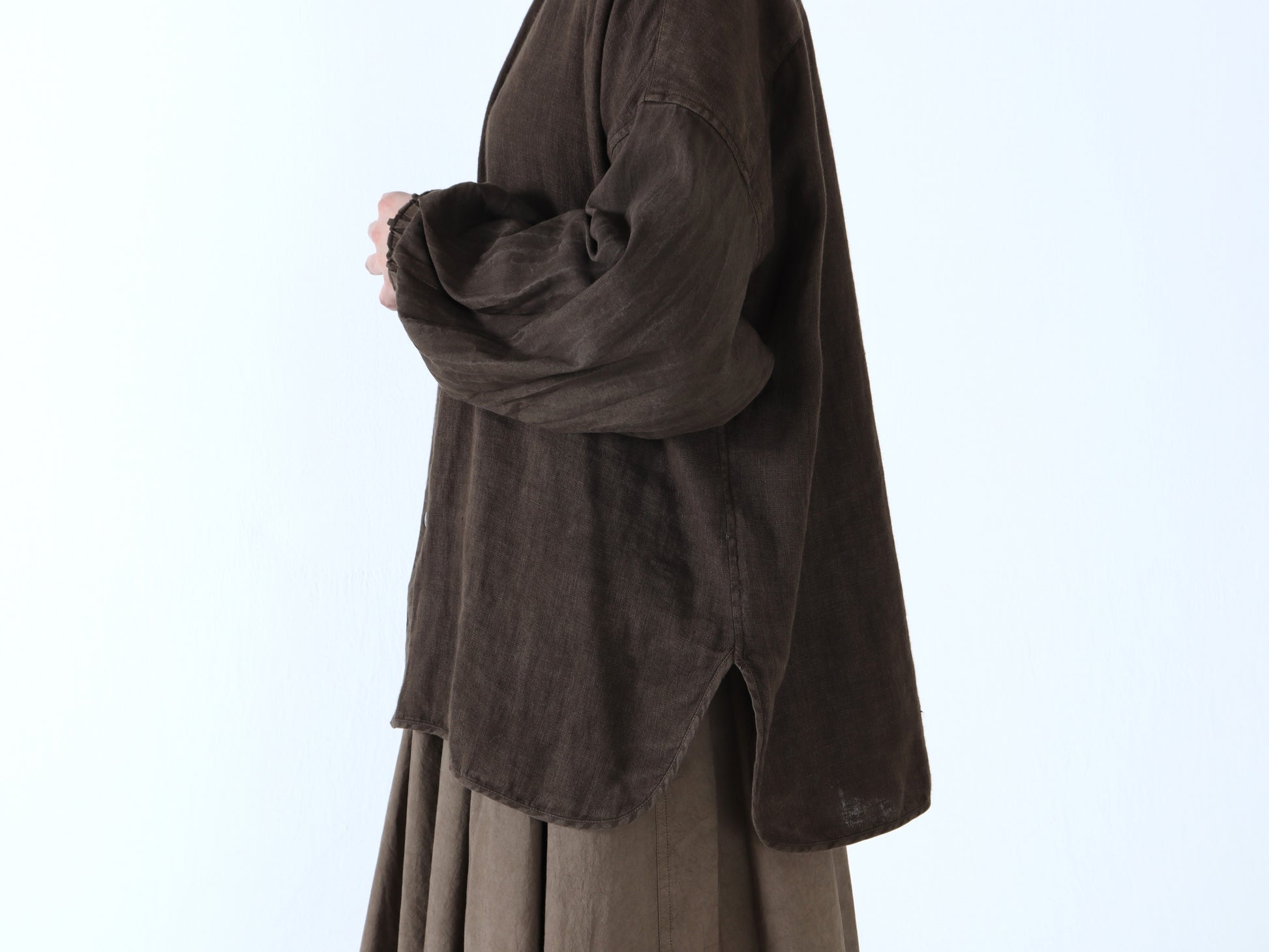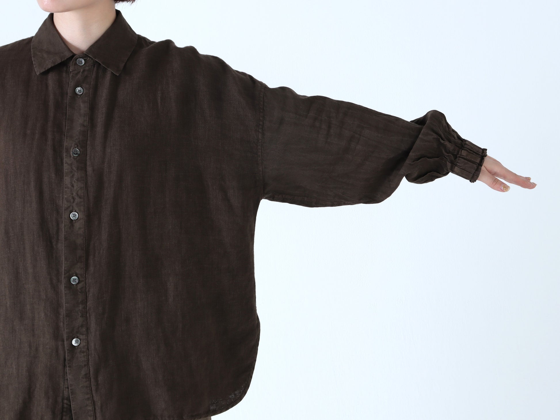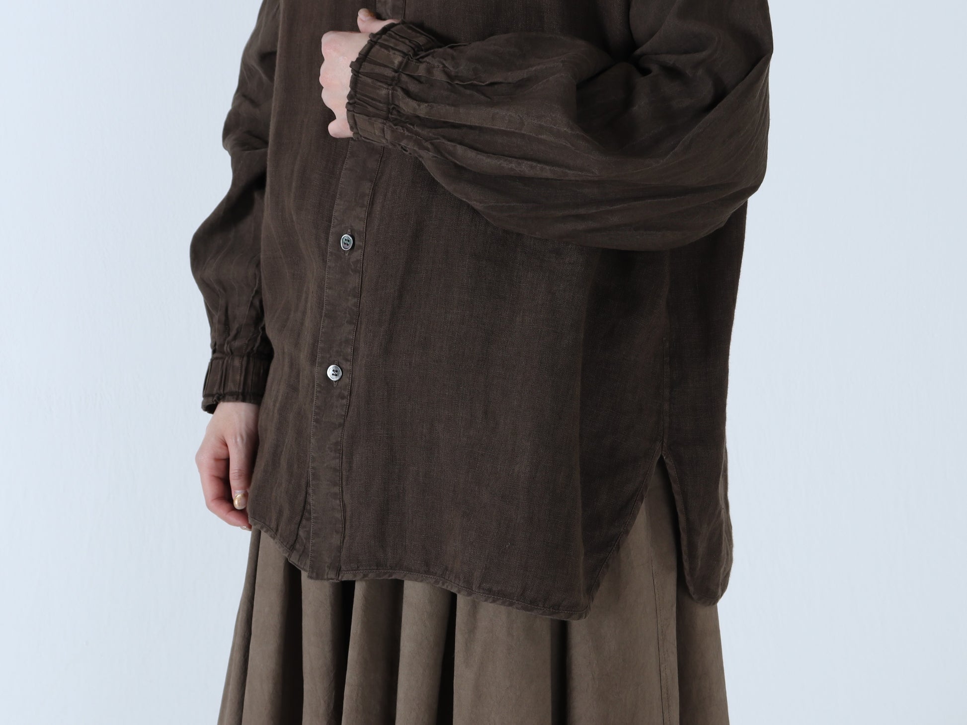 綿麻Wガーゼ×綿麻 バルーンスリーブシャツ