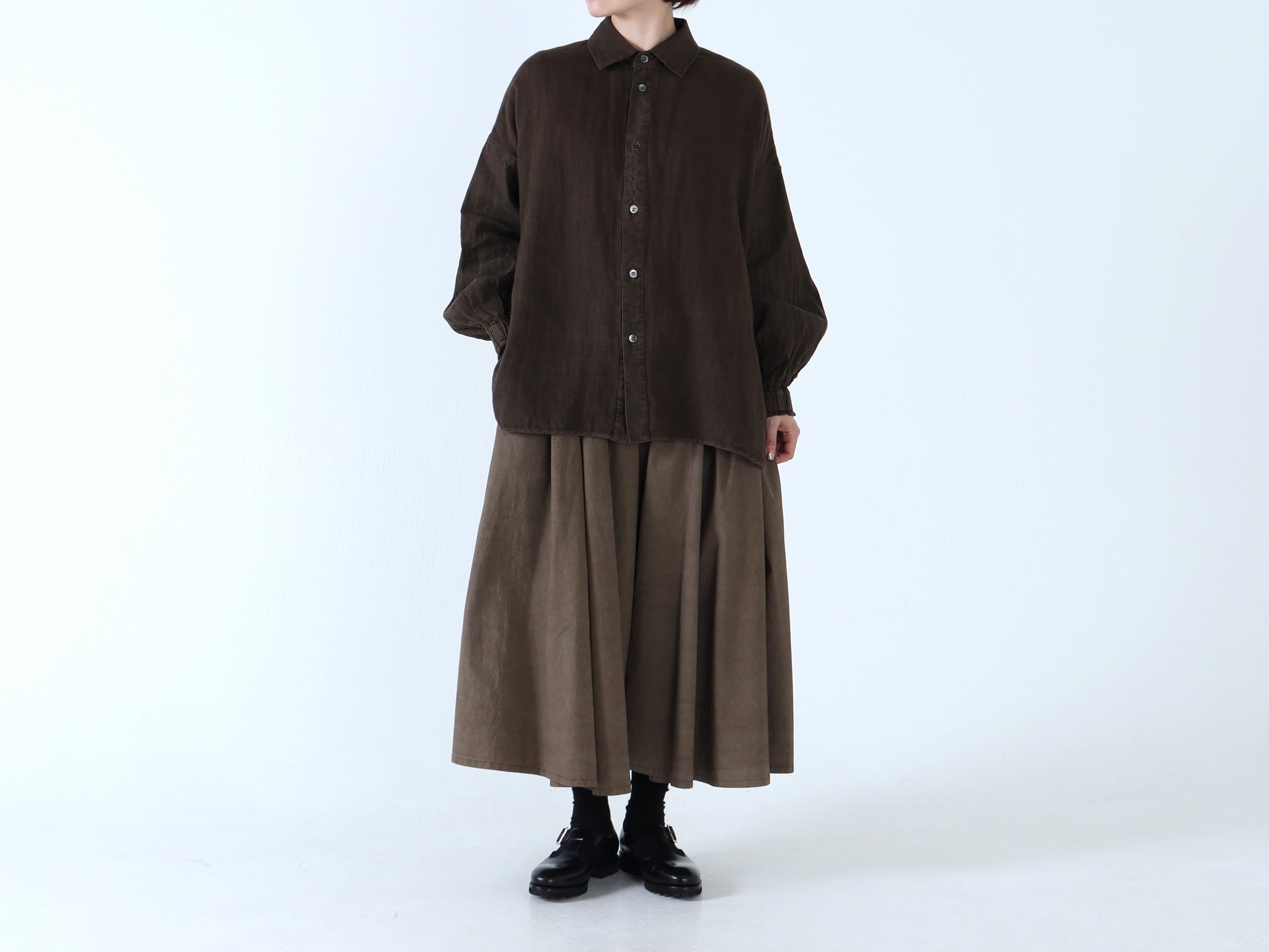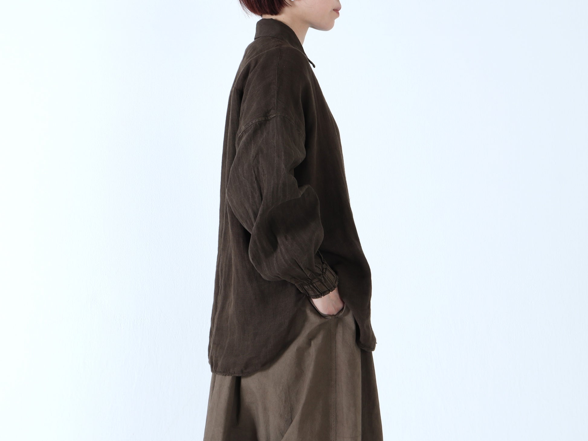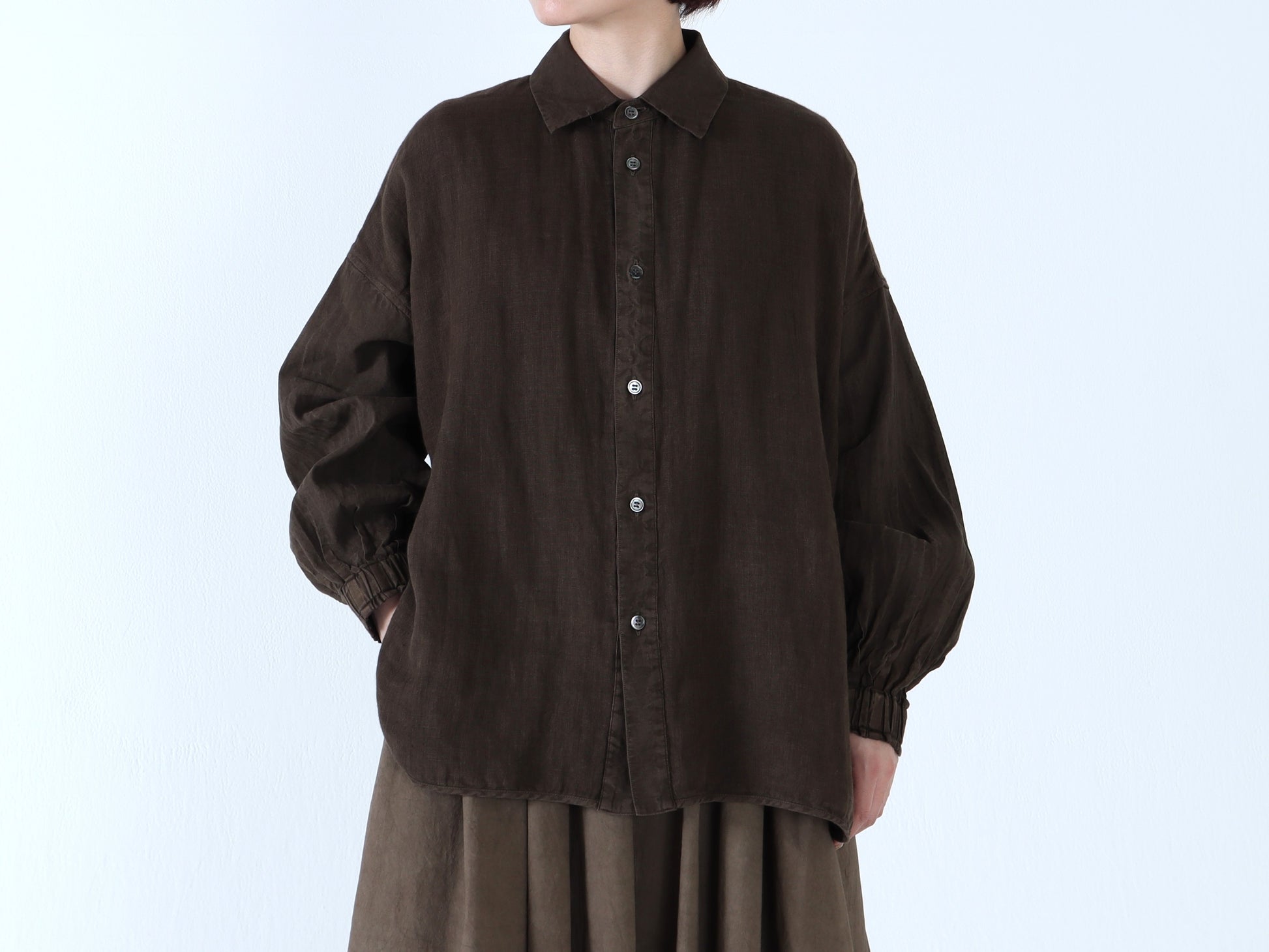 綿麻Wガーゼ×綿麻 バルーンスリーブシャツ