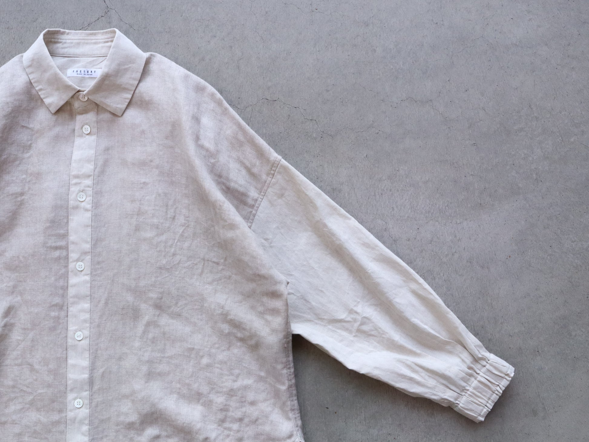 柔らかく通気性の良い綿麻ダブルガーゼを身頃に使用したバルーンスリーブシャツ。