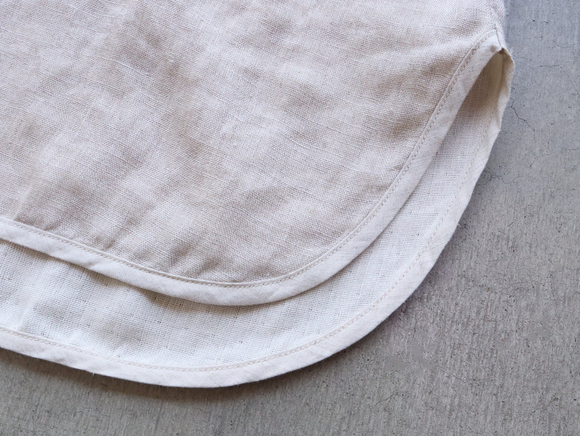 袖や裾の裏、襟裏、前あきの内側などほつれやすい部分には綿麻生地を使用し、耐久性を確保しました。