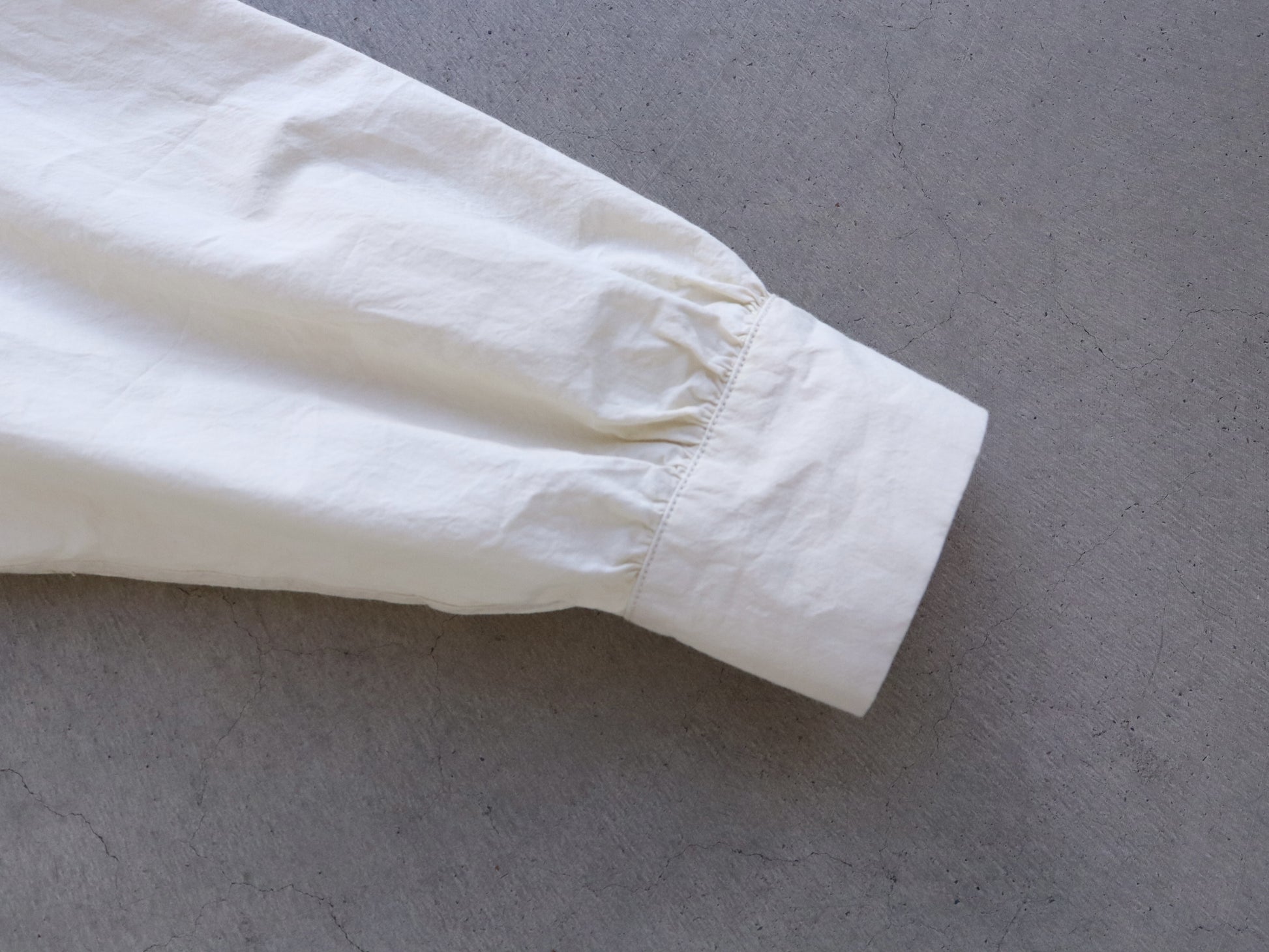 袖口にはカフスとギャザーが入り、自然なふんわり感と腕の動きやすさを両立。