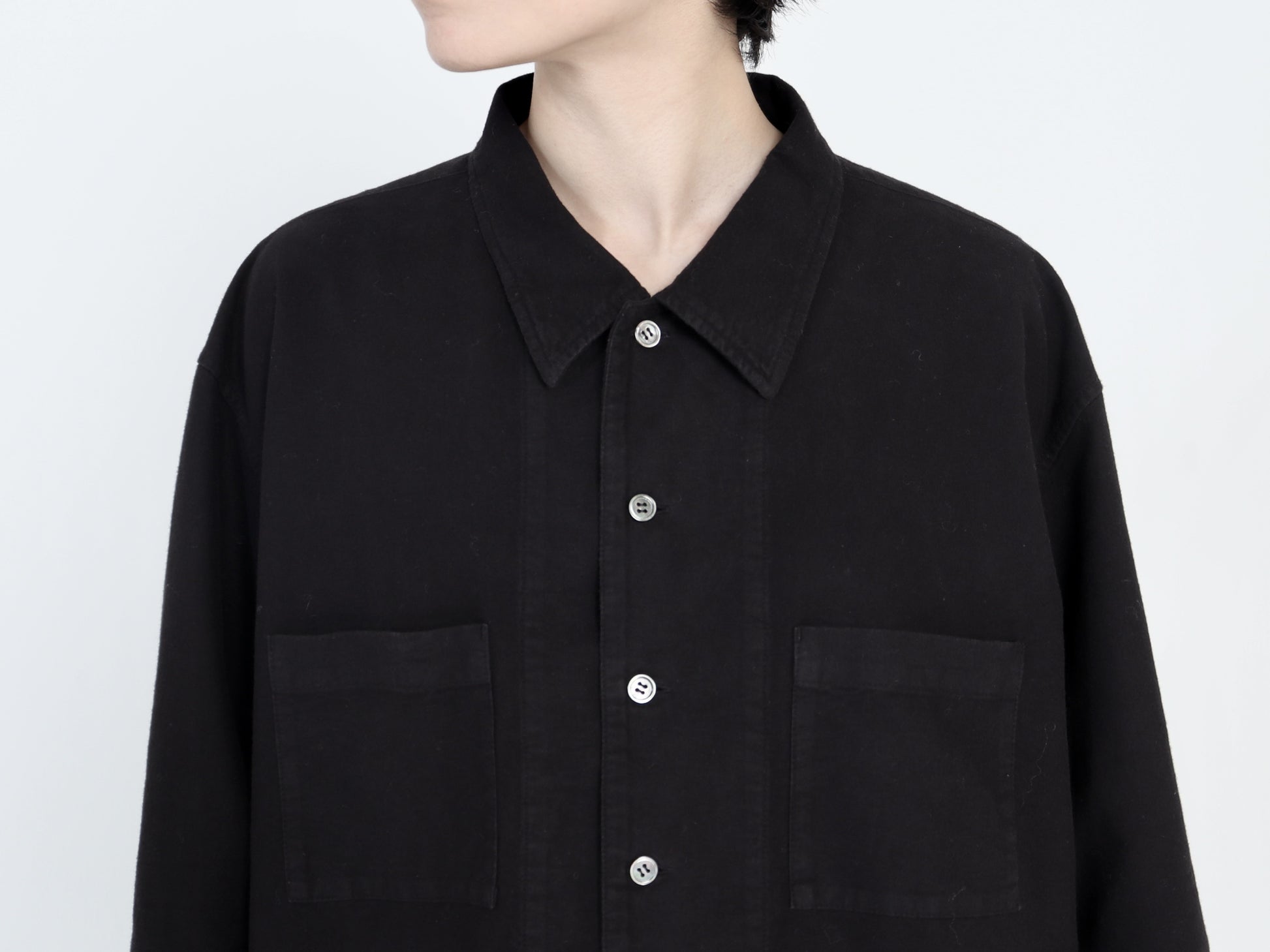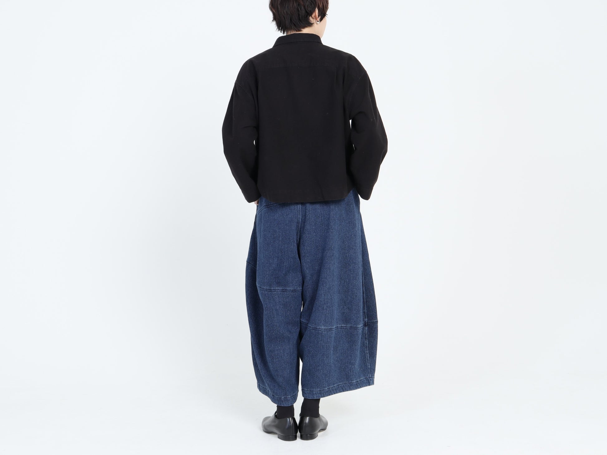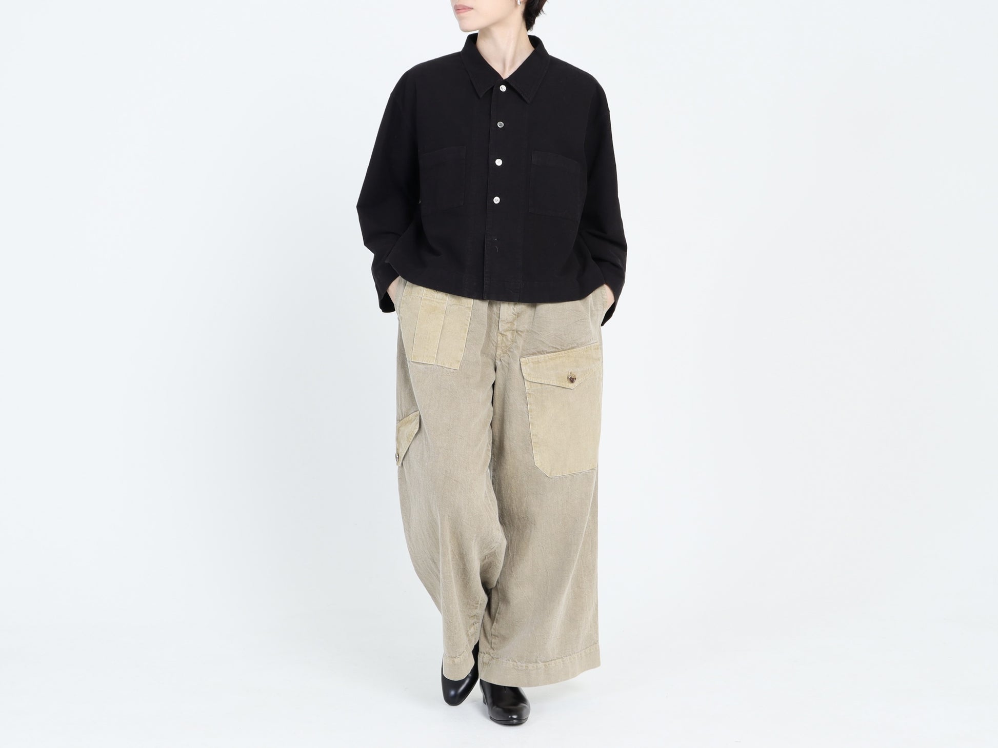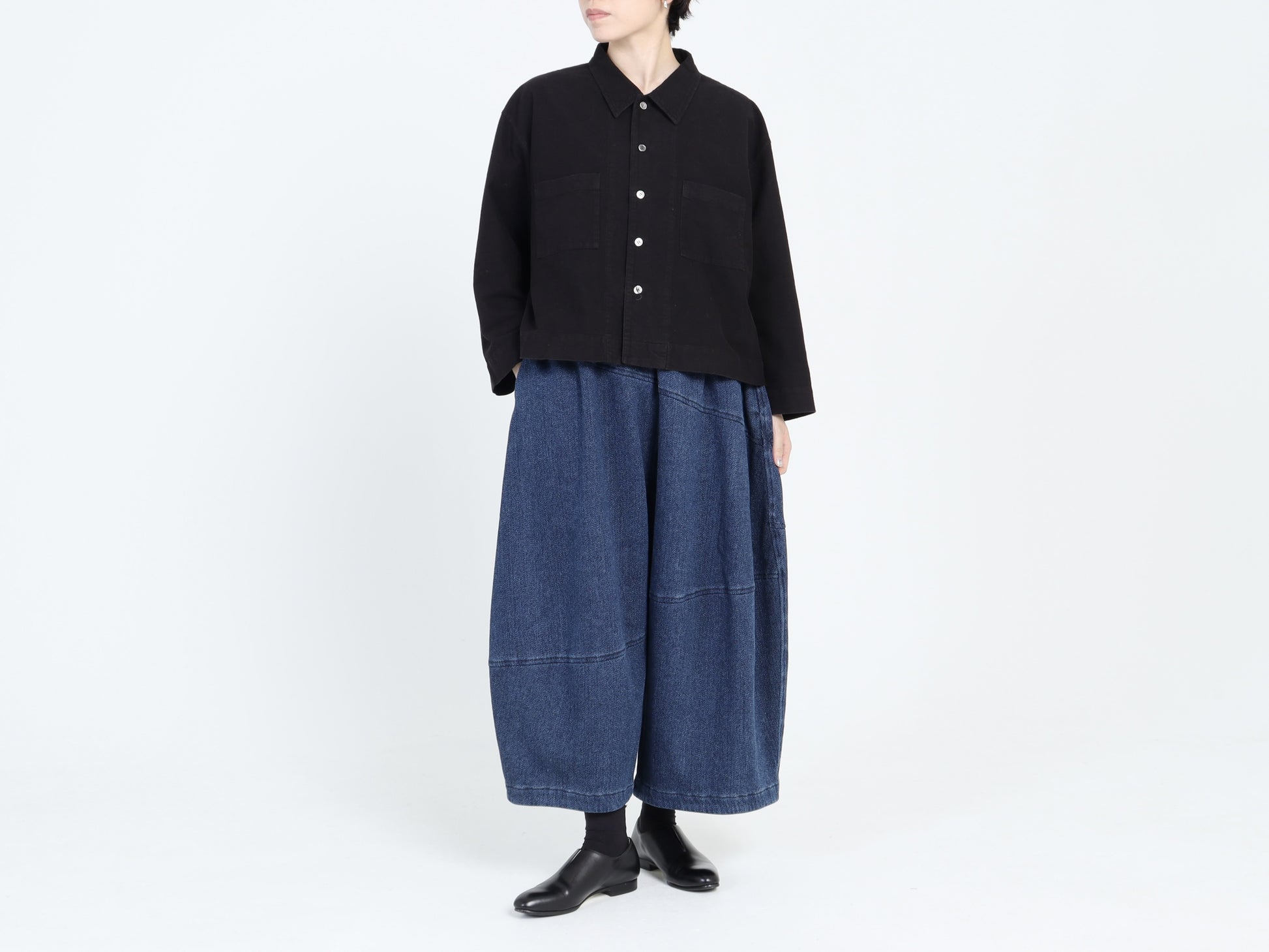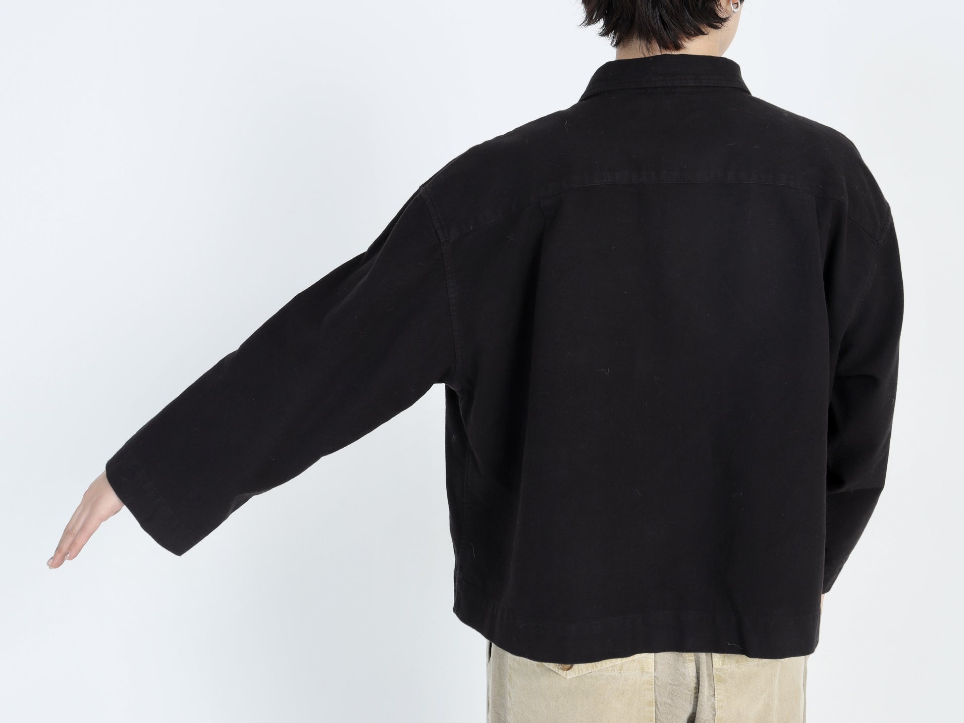 身幅が広くゆったりとした、羽織り感覚で着られるショート丈のシャツです。