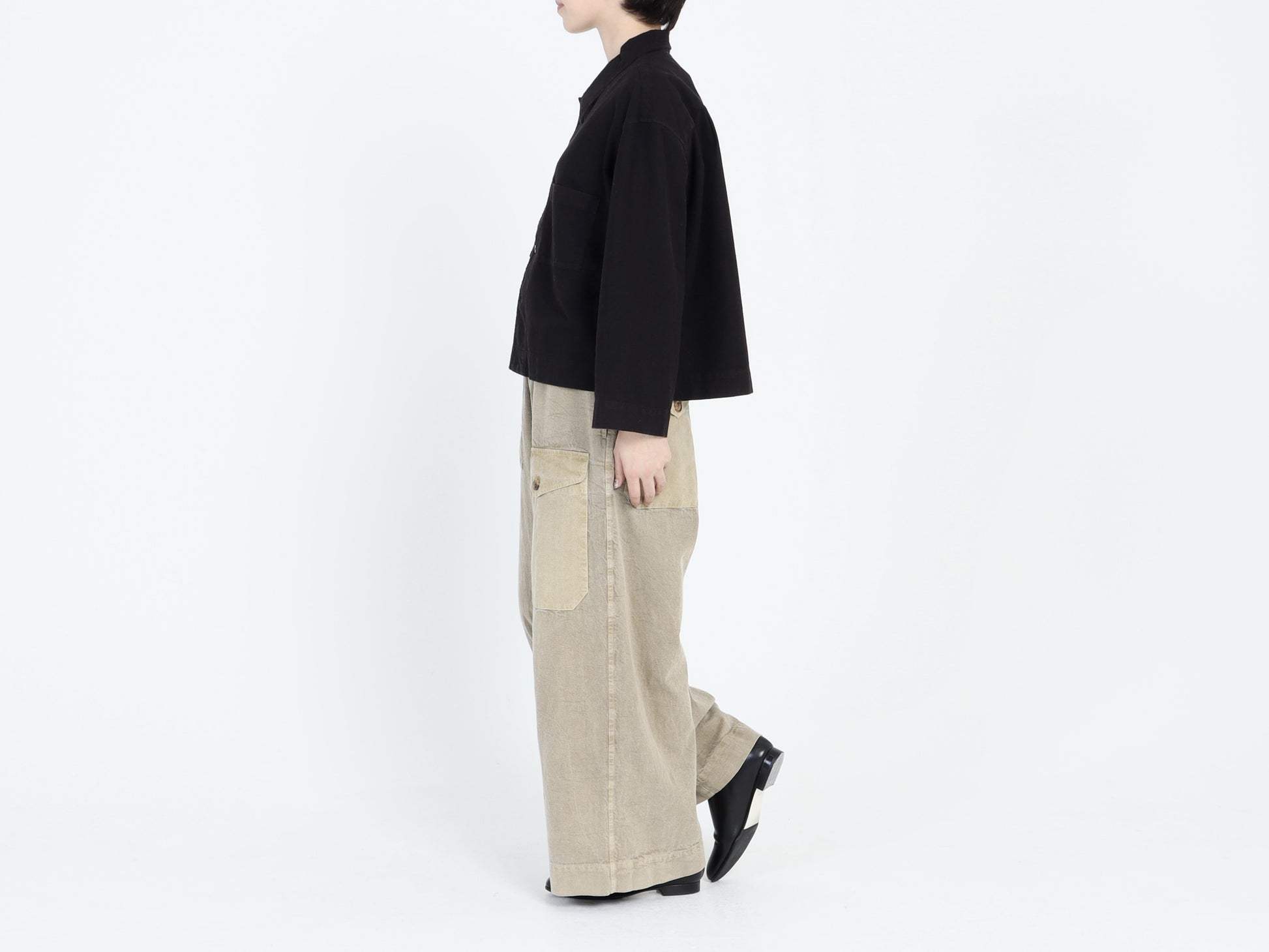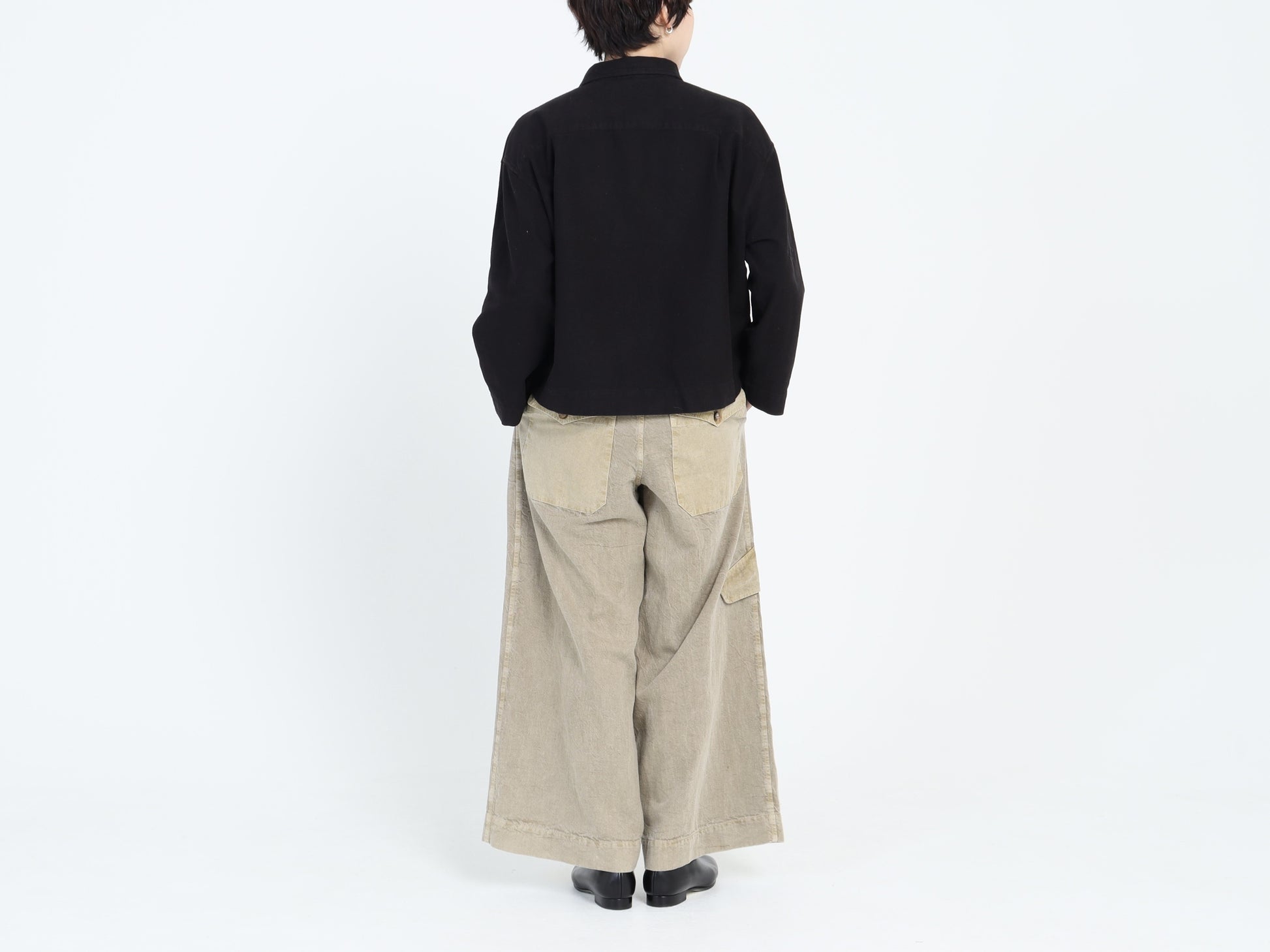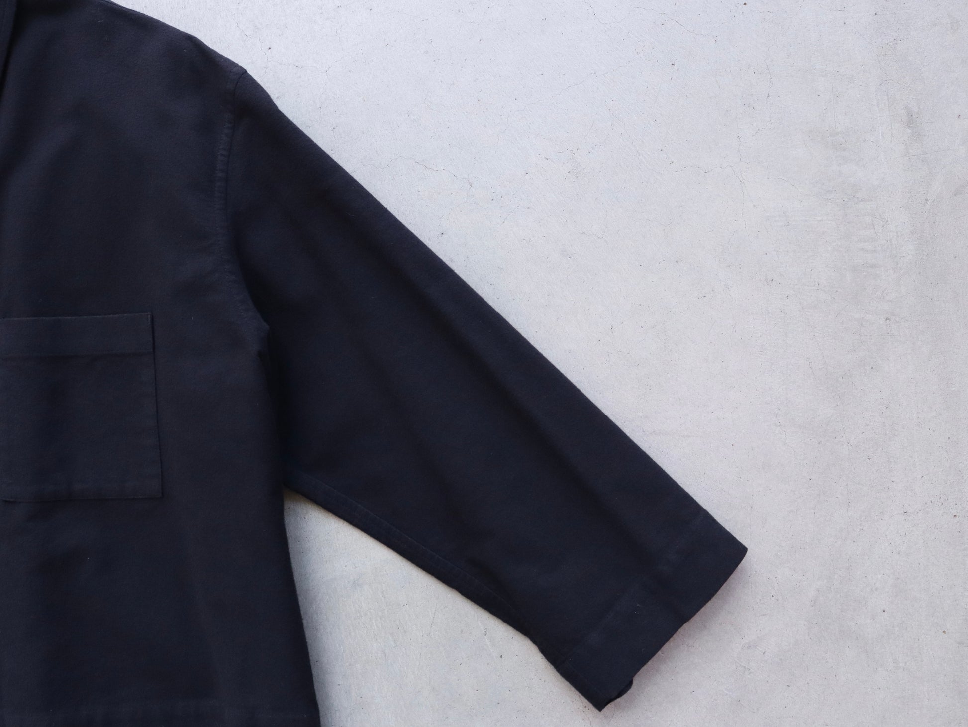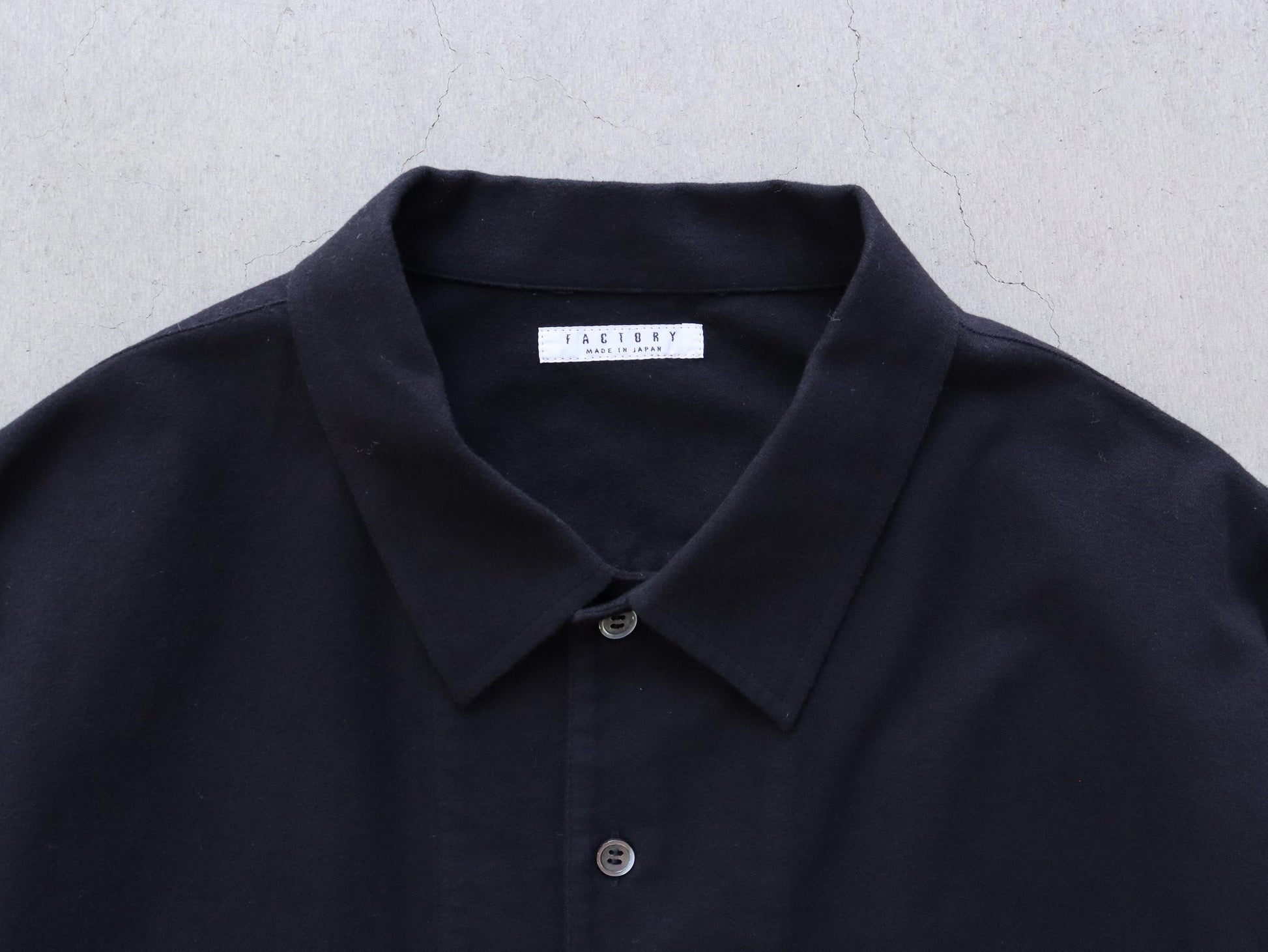 身幅が広くゆったりとした、羽織り感覚で着られるショート丈のシャツです。