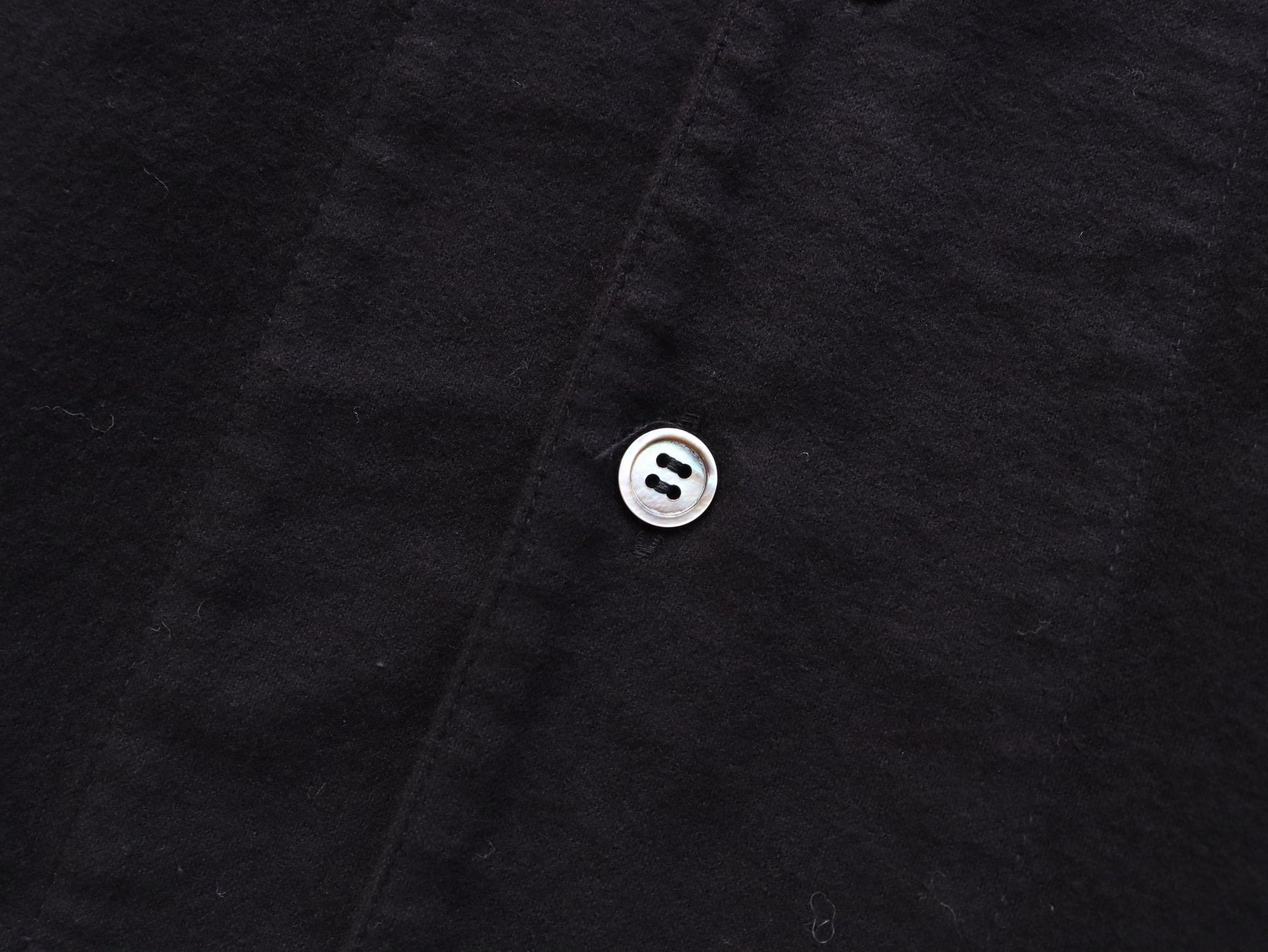 衿はスタンドなしのハマカラーで、下衿部分のボタンを外せばラフな雰囲気に。