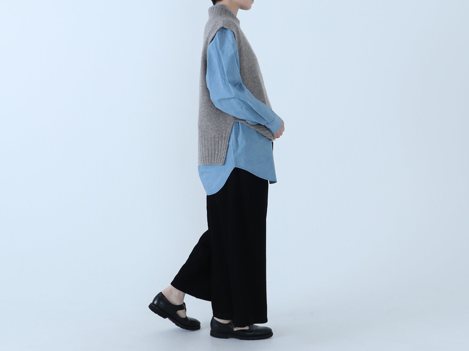 ヤク ショート丈ワイドベスト(2サイズ/グレー)