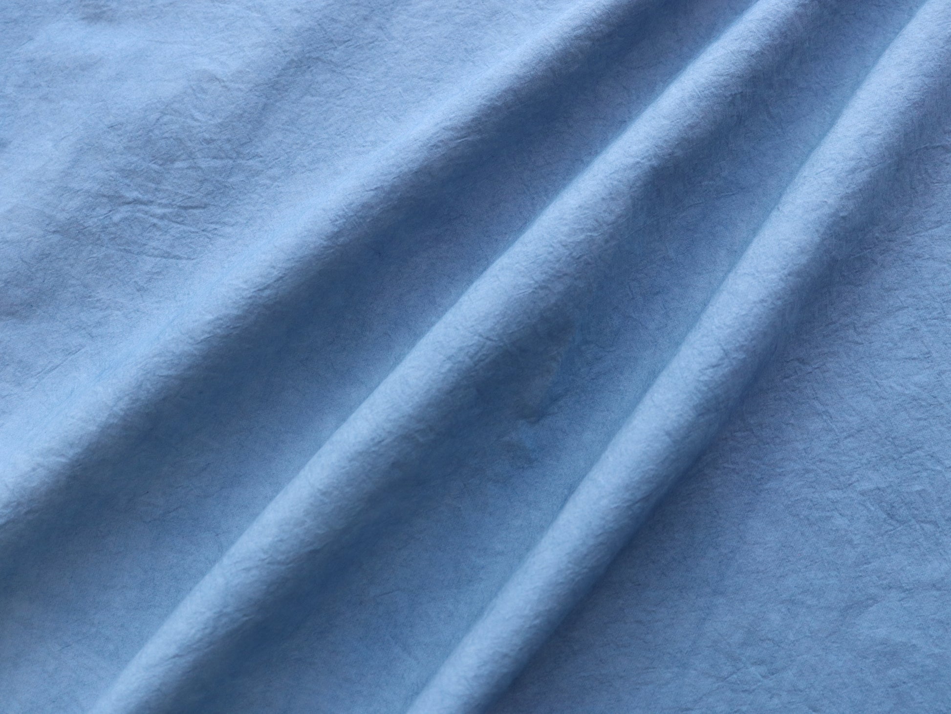 気持ち良い肌触りの近江晒は、自然なシワ感に適度なハリが加わり、程よいシルエットが出ます。