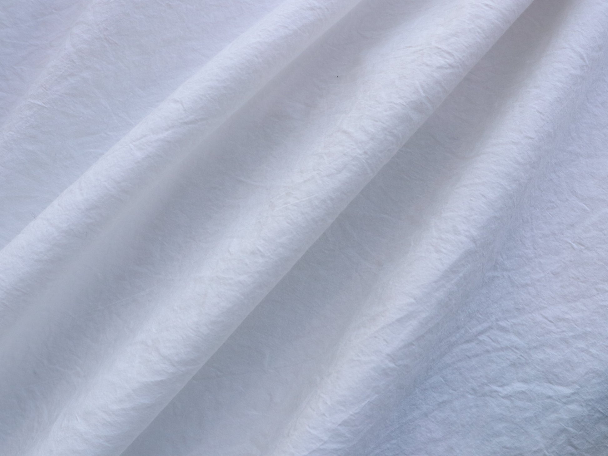 とても細い糸で高密度で織られた生地に、撚りの強度を高めた、滋賀県に伝わる『近江晒』という伝統的な技法を施した素材です。