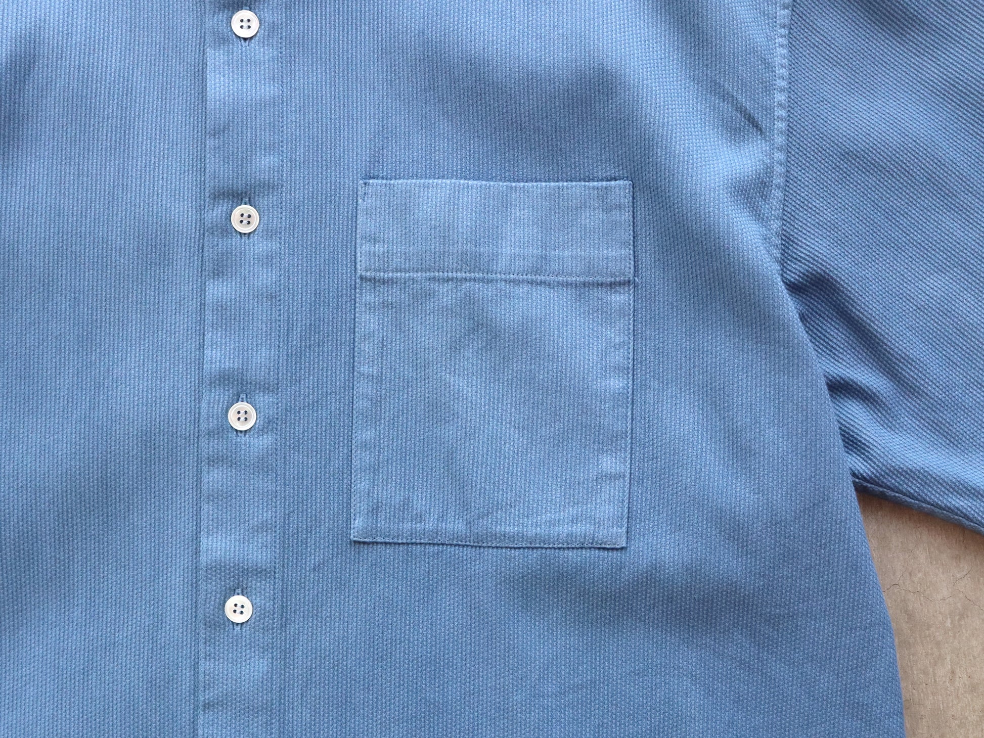 ややハリのある生地は、着込んでいくと柔らかくなります。