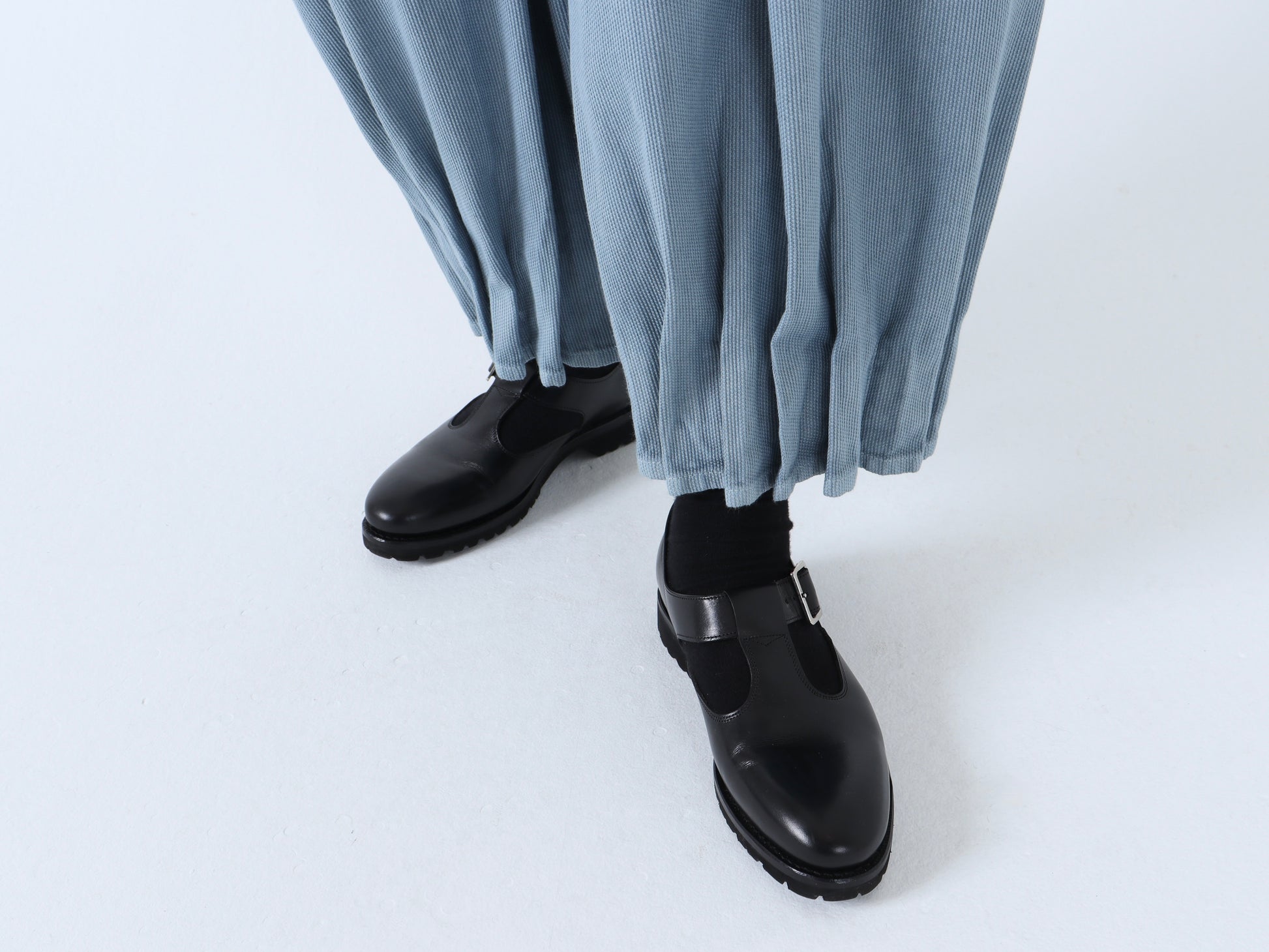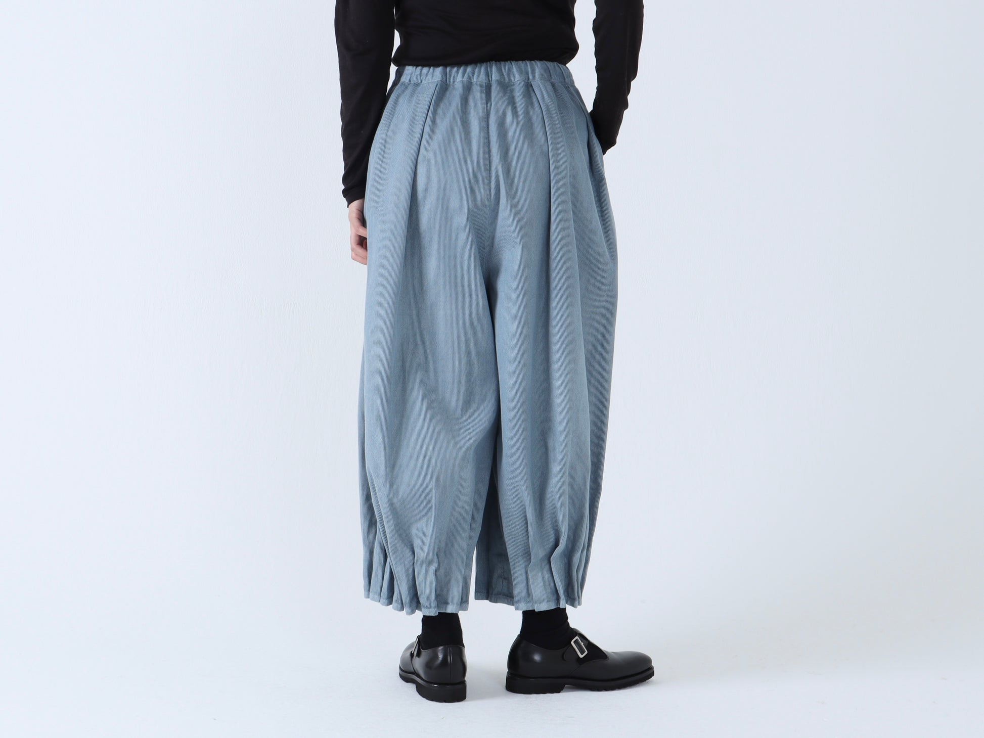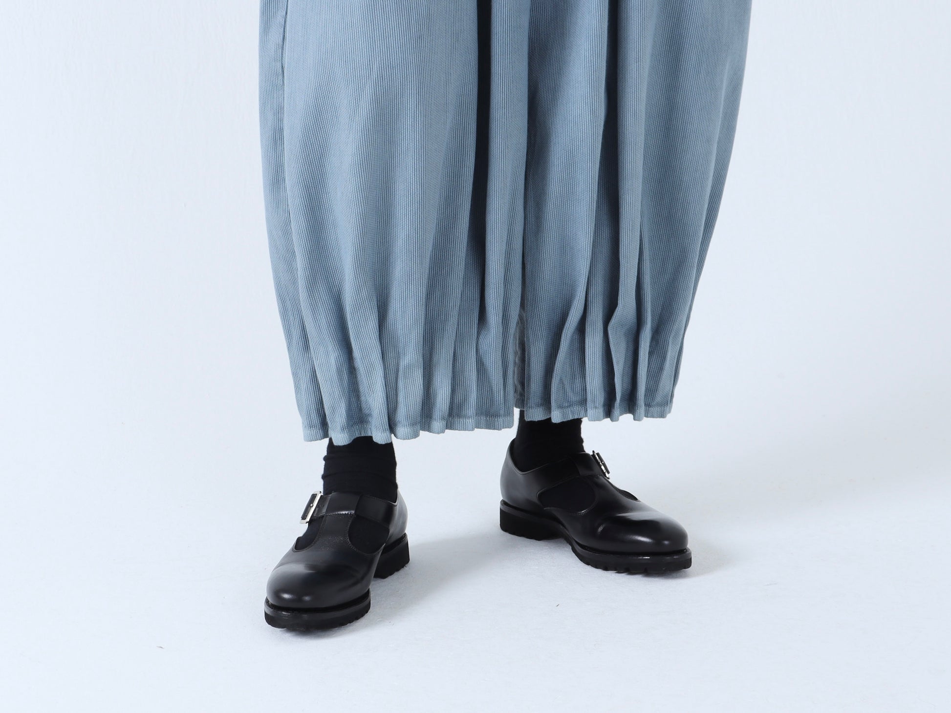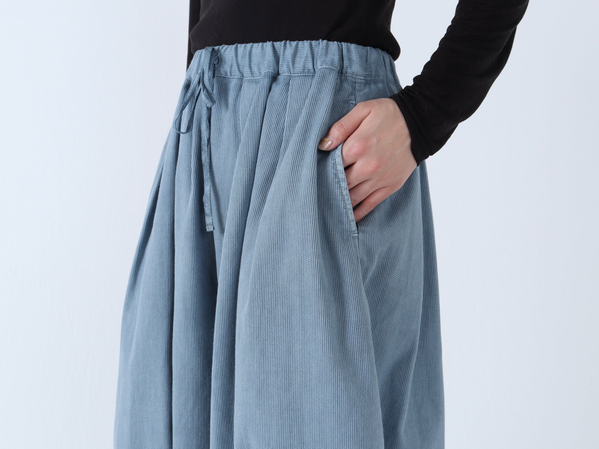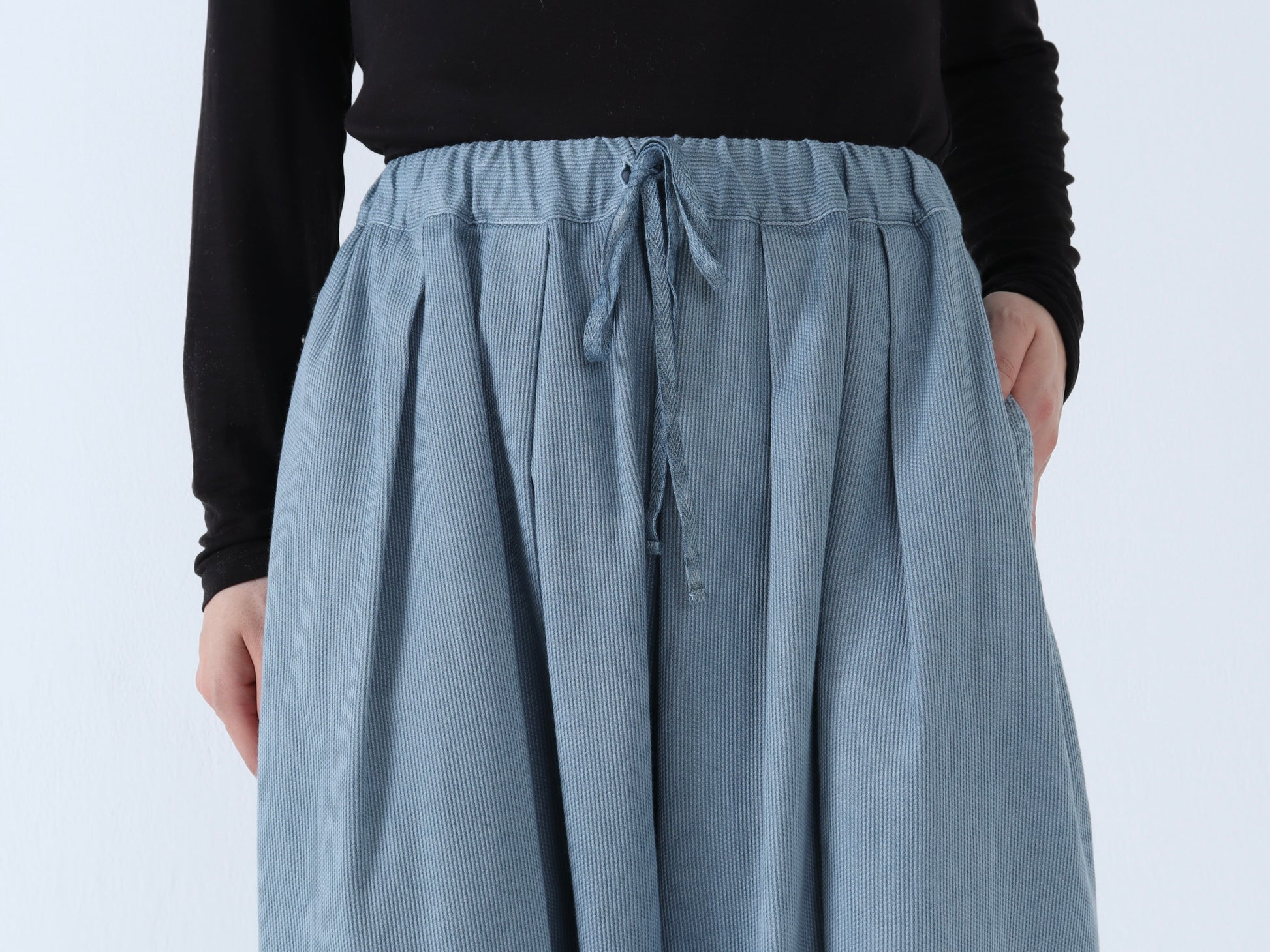 裾の表にプリーツをたたむことで、履く人の動きに合わせてプリーツが波打つような動きに。