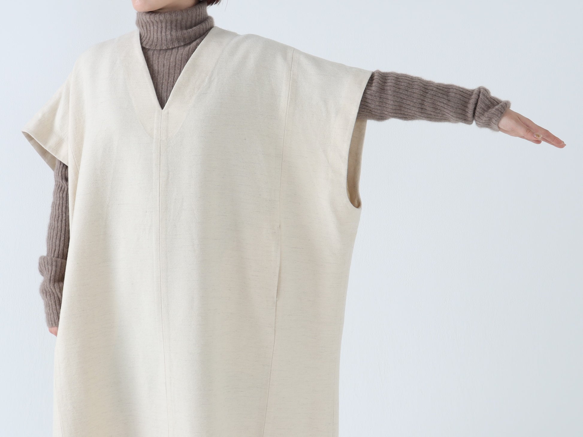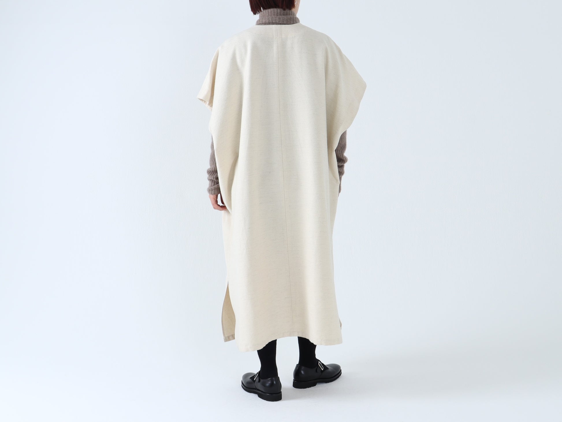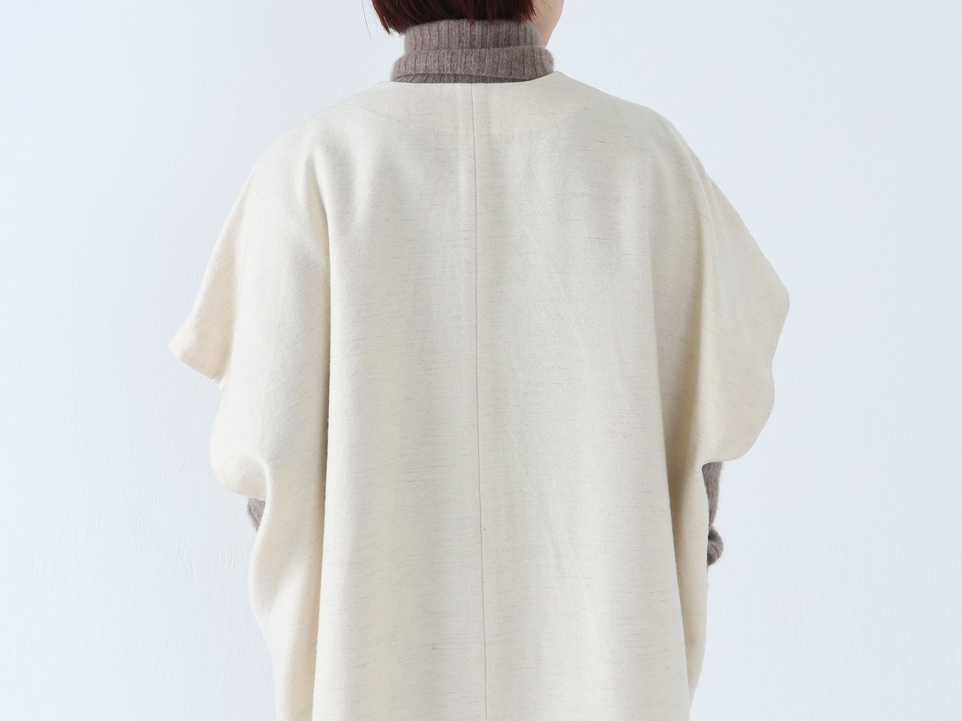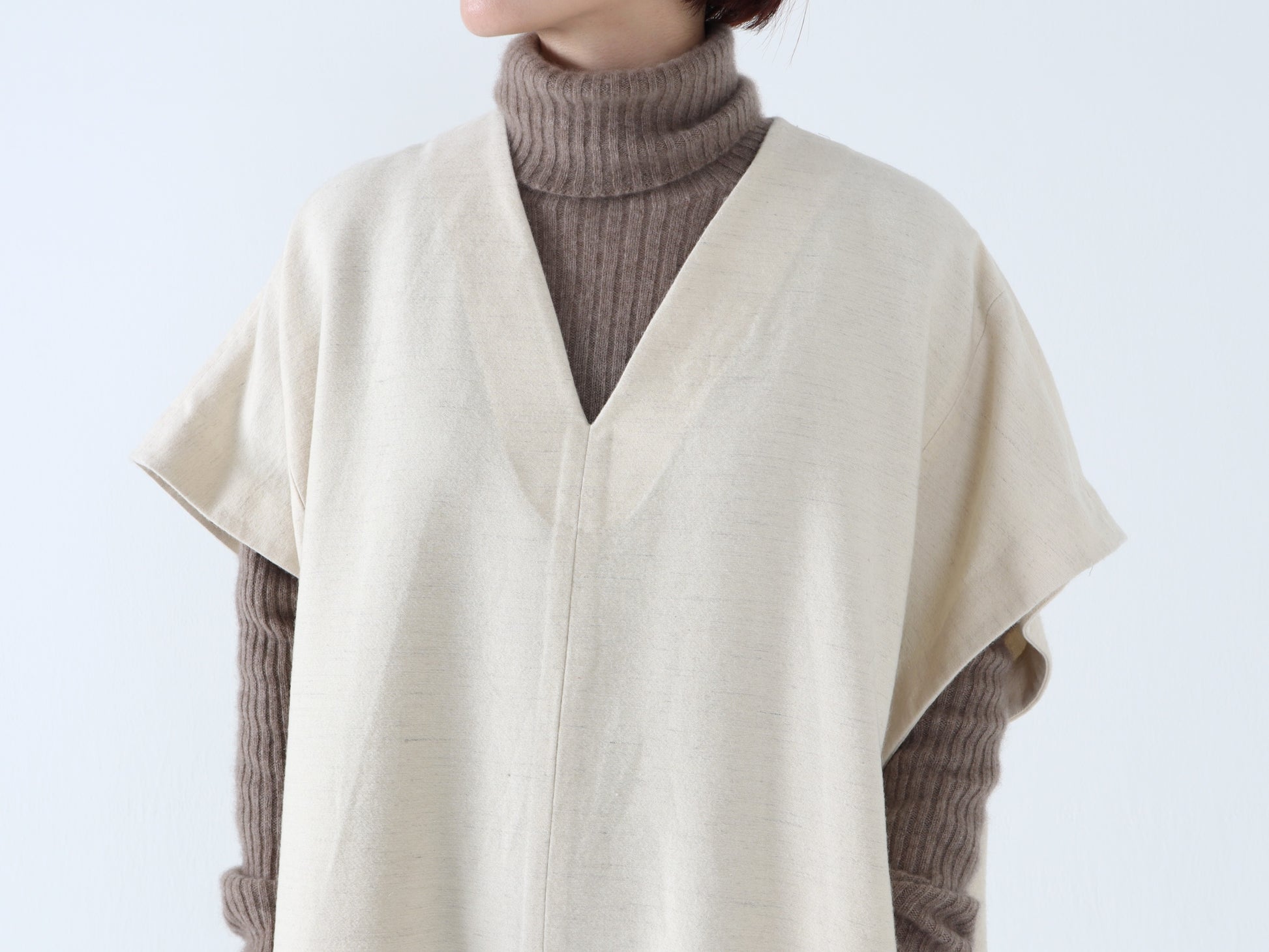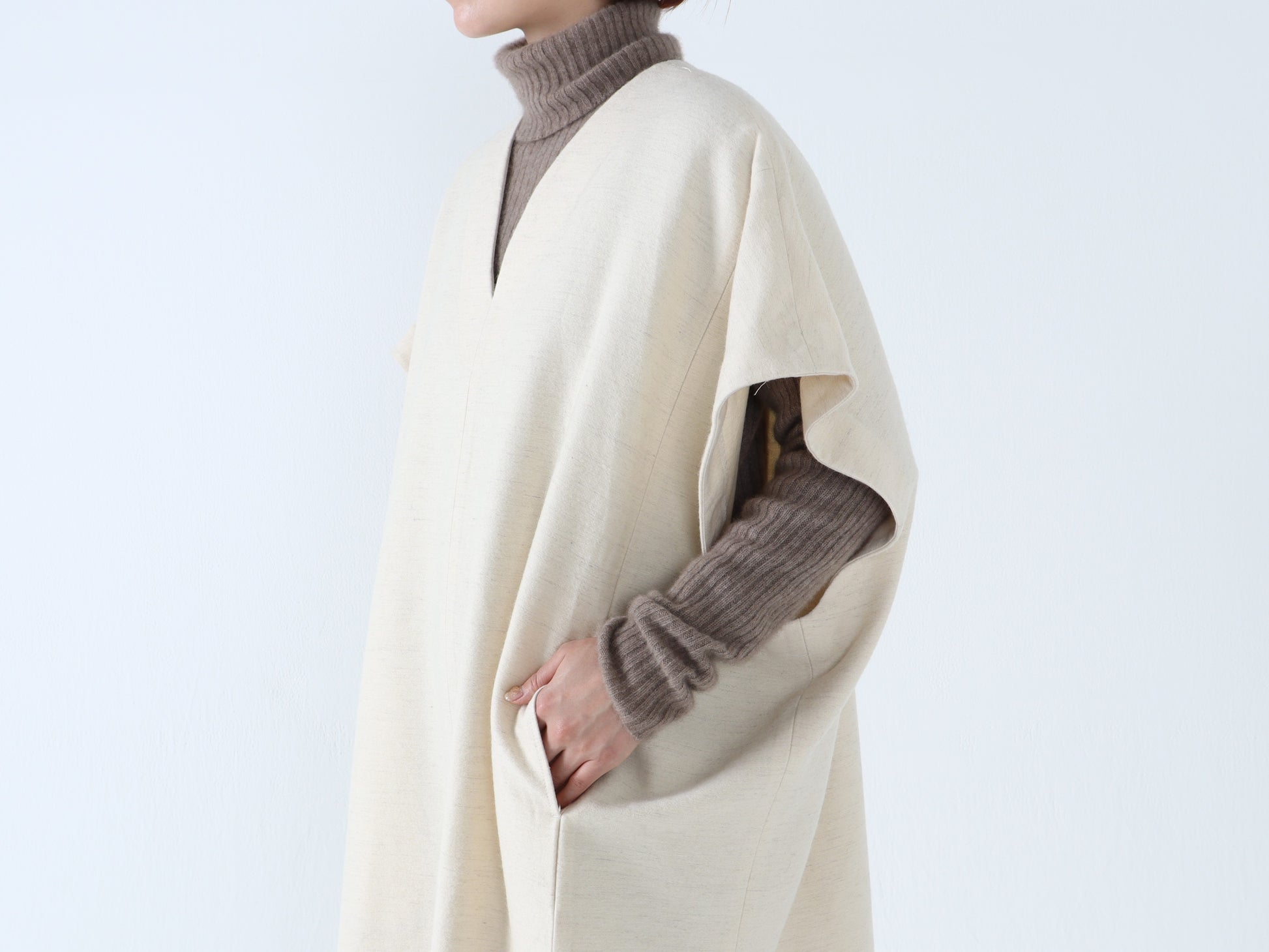重ね着に便利なポンチョを、少し深めのVネックですっきりした首周りに仕上げました。