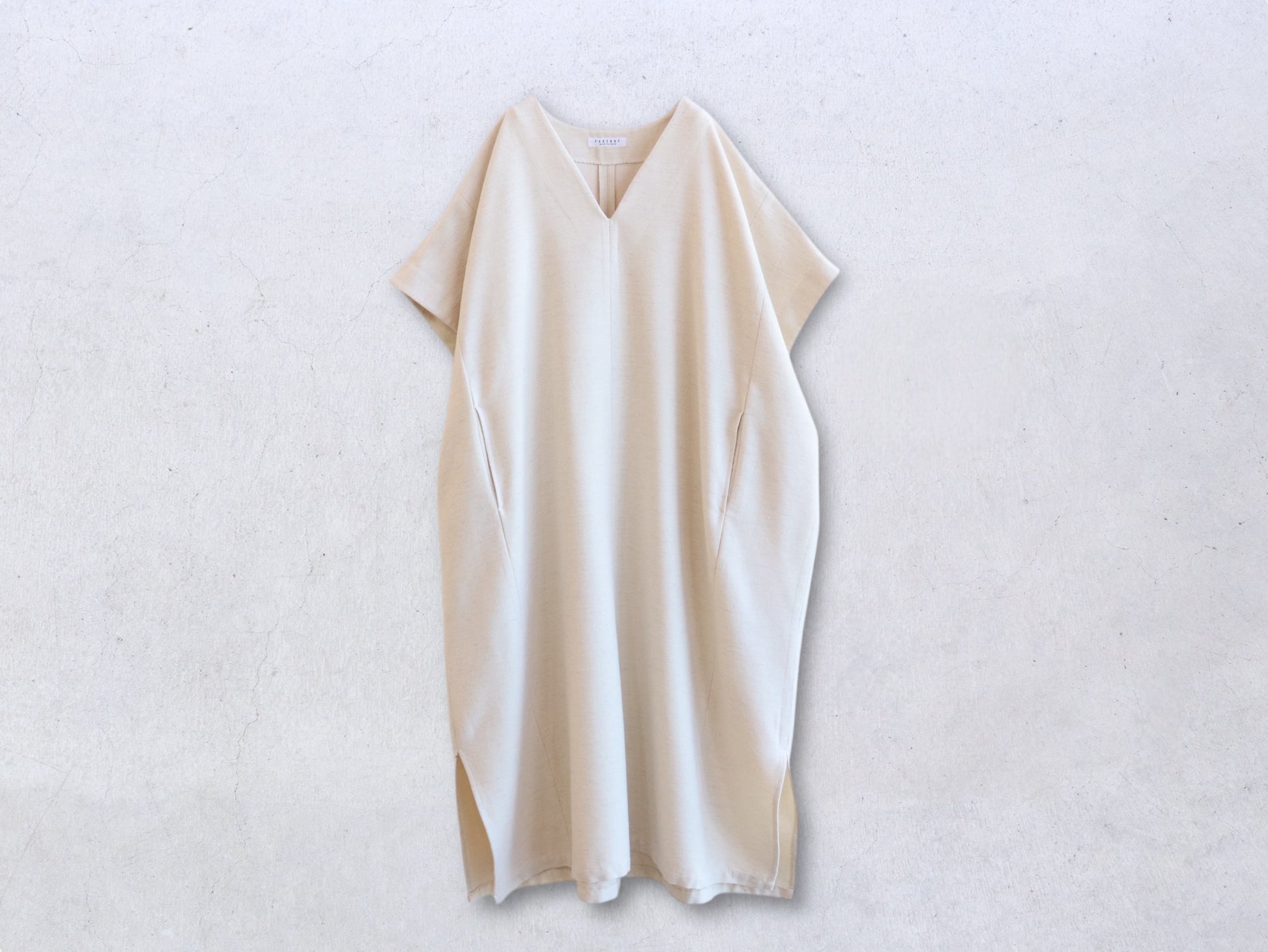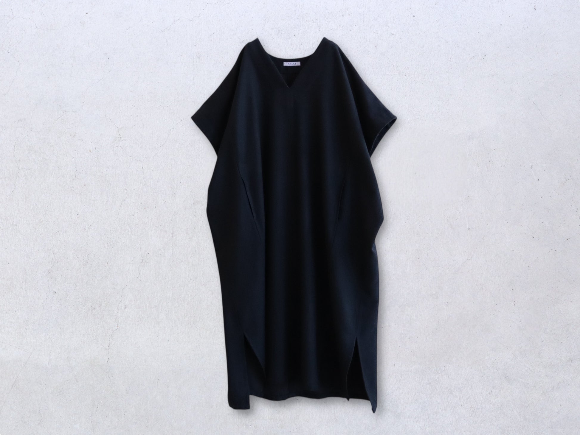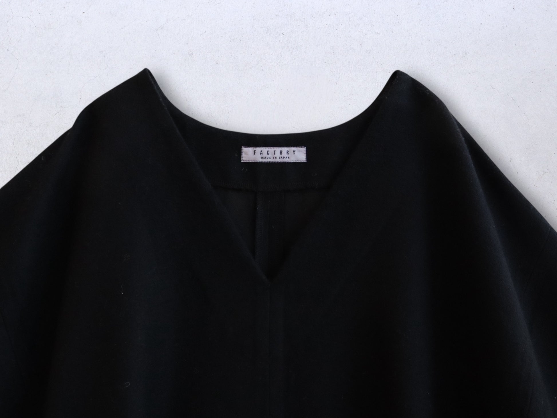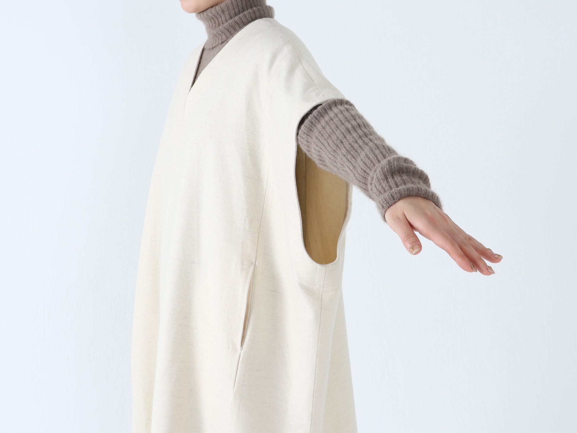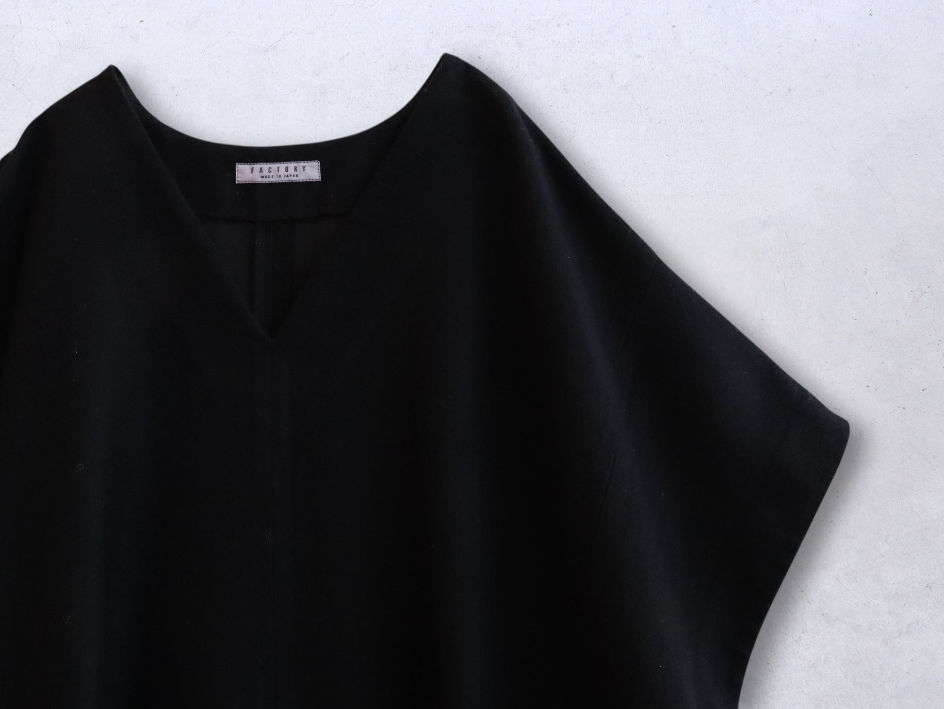 重ね着に便利なポンチョを、少し深めのVネックですっきりした首周りに仕上げました。