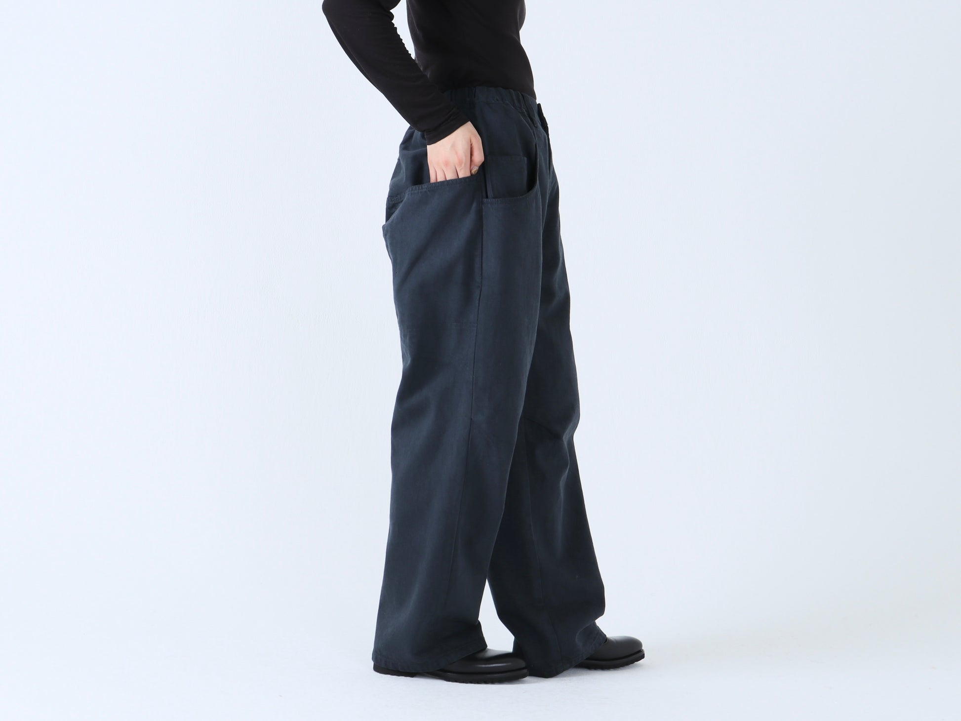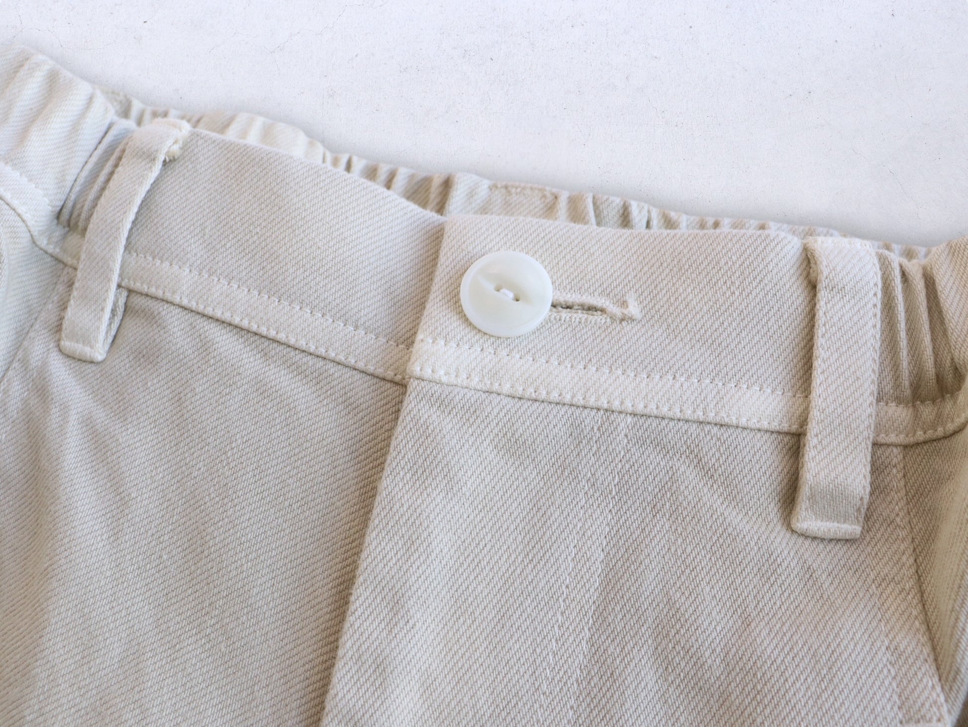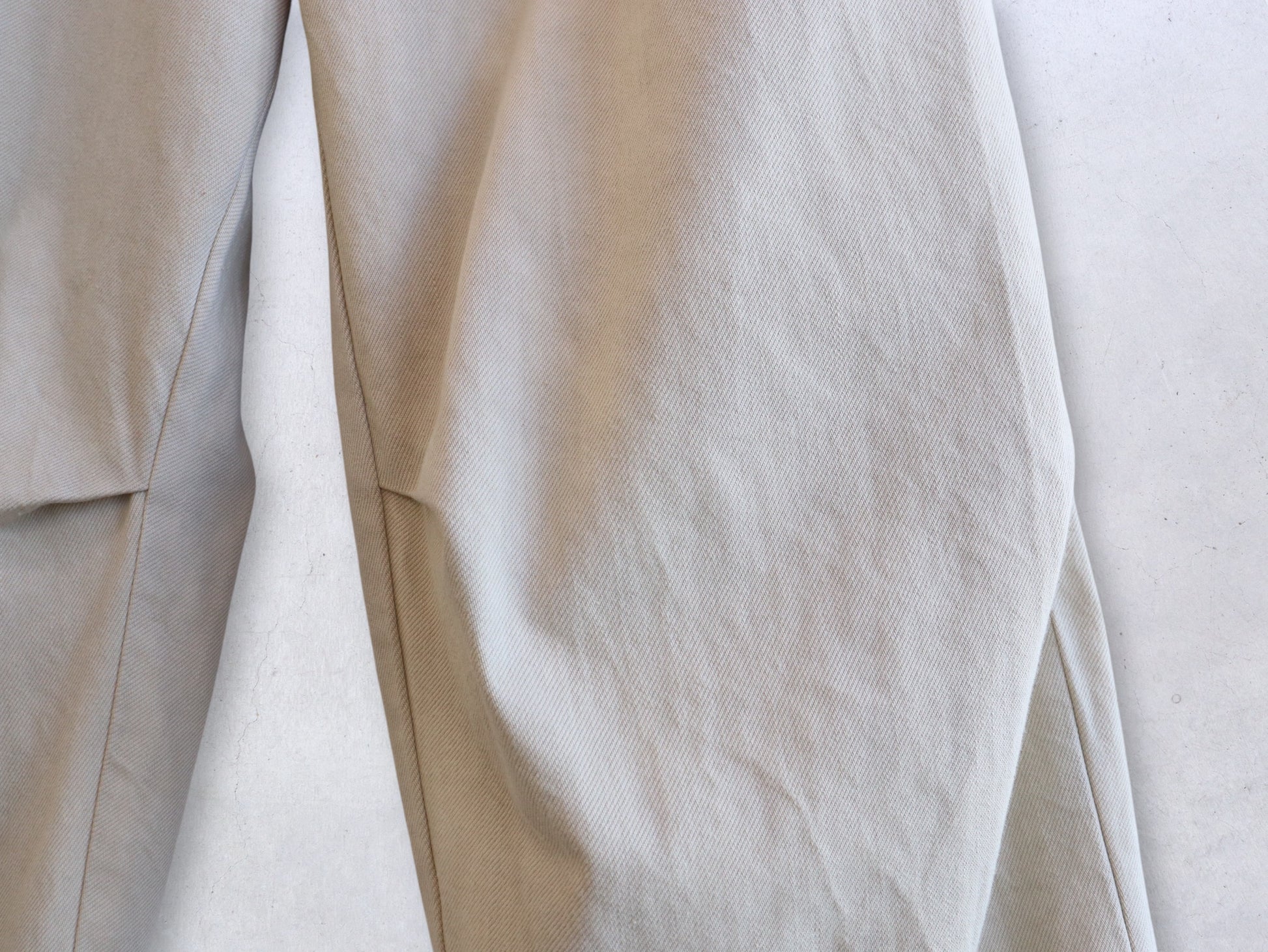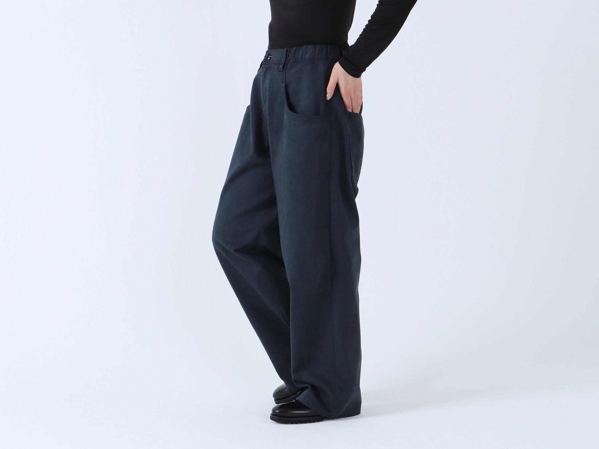 また、膝の両サイドにタックを施した、ワイドなシルエットながら軽快さと立体感のあるフォルムが特長。