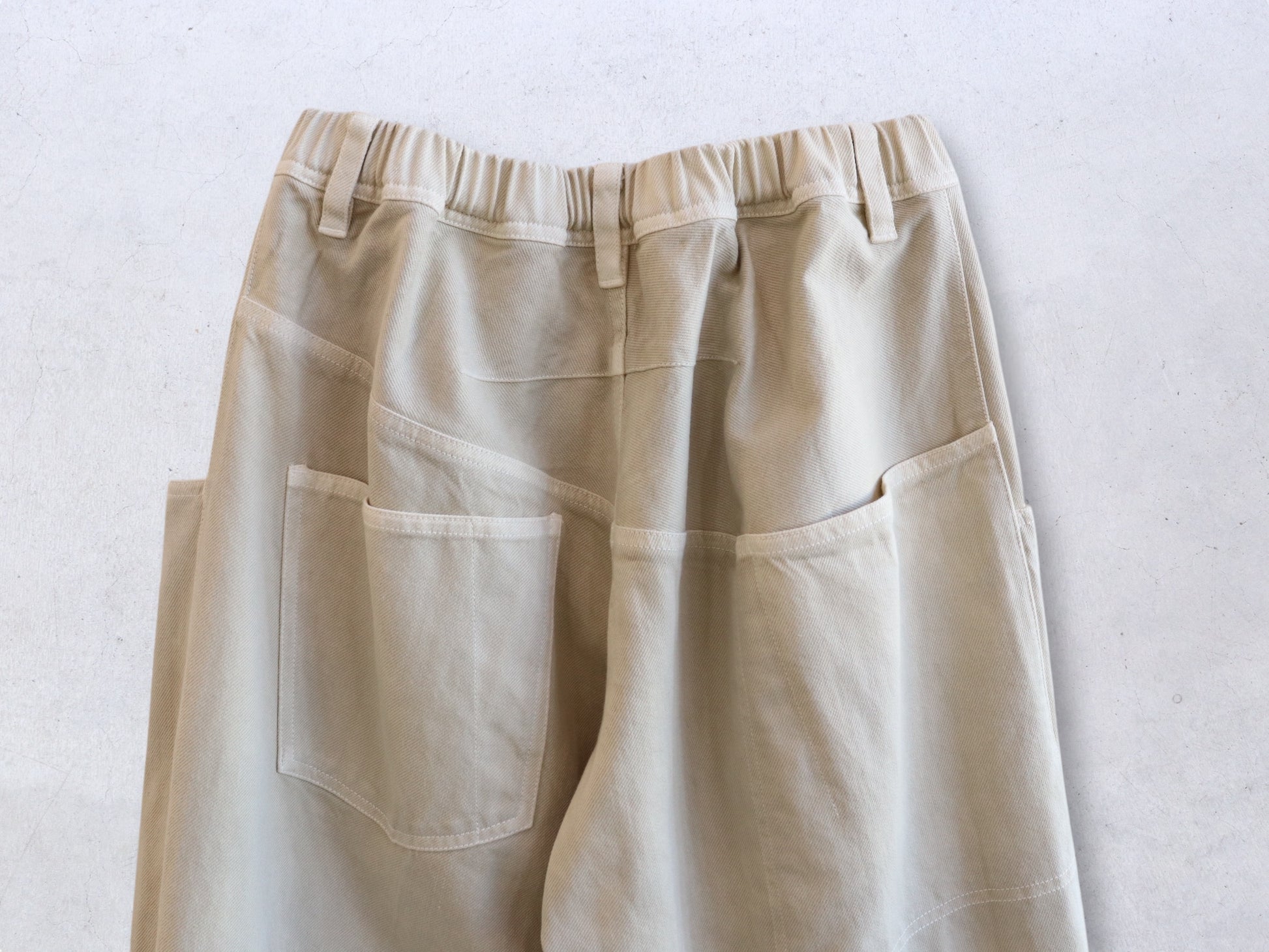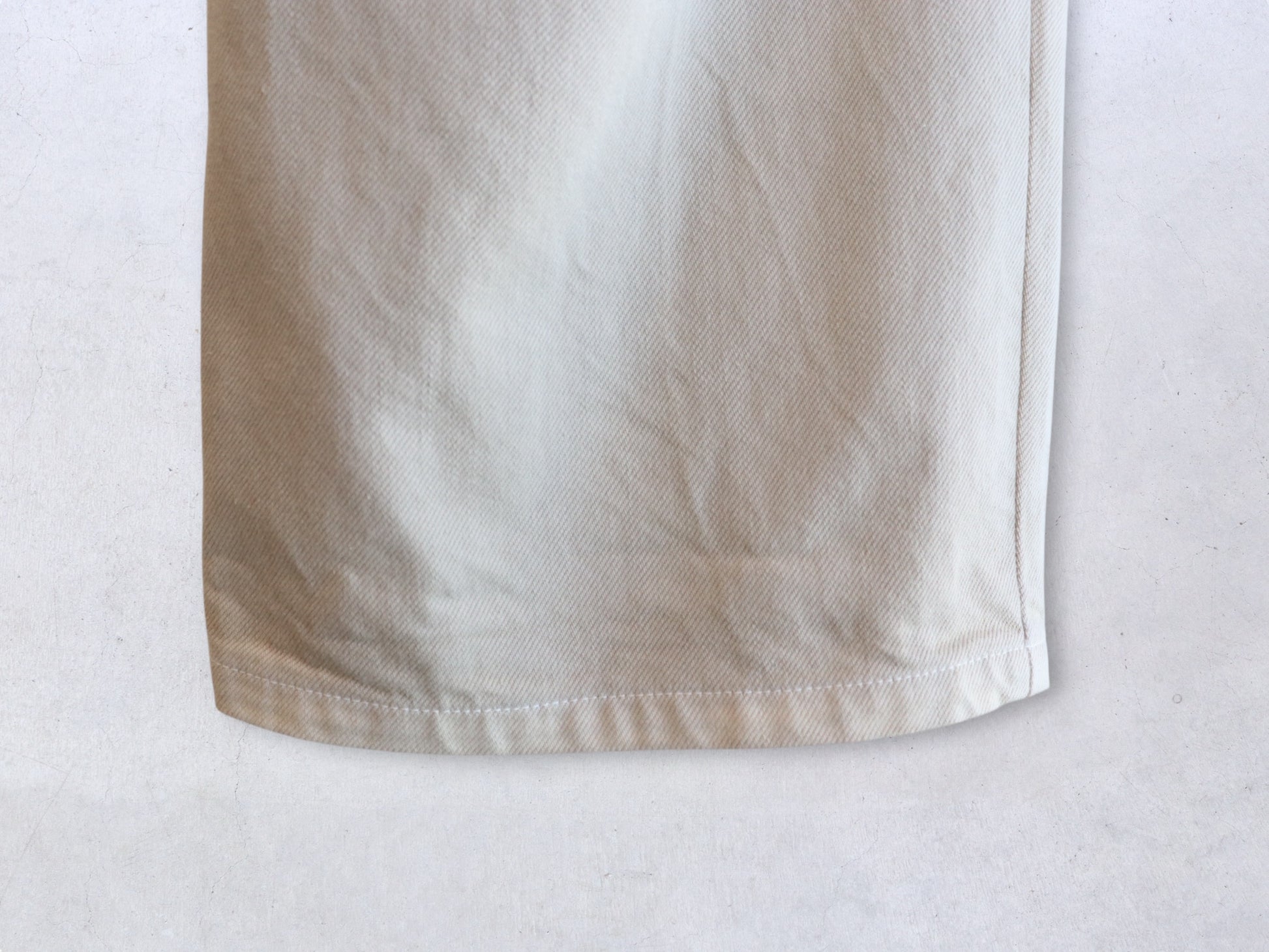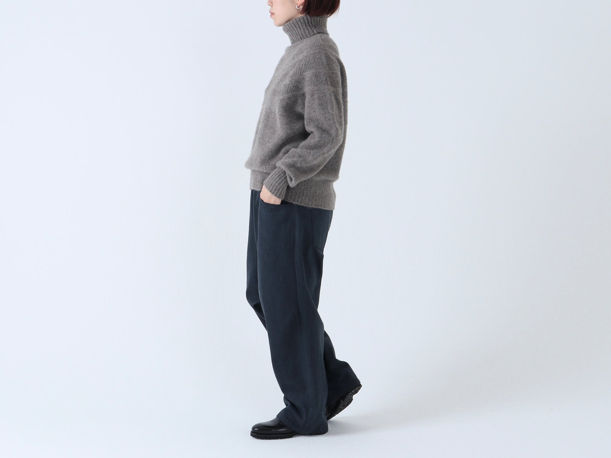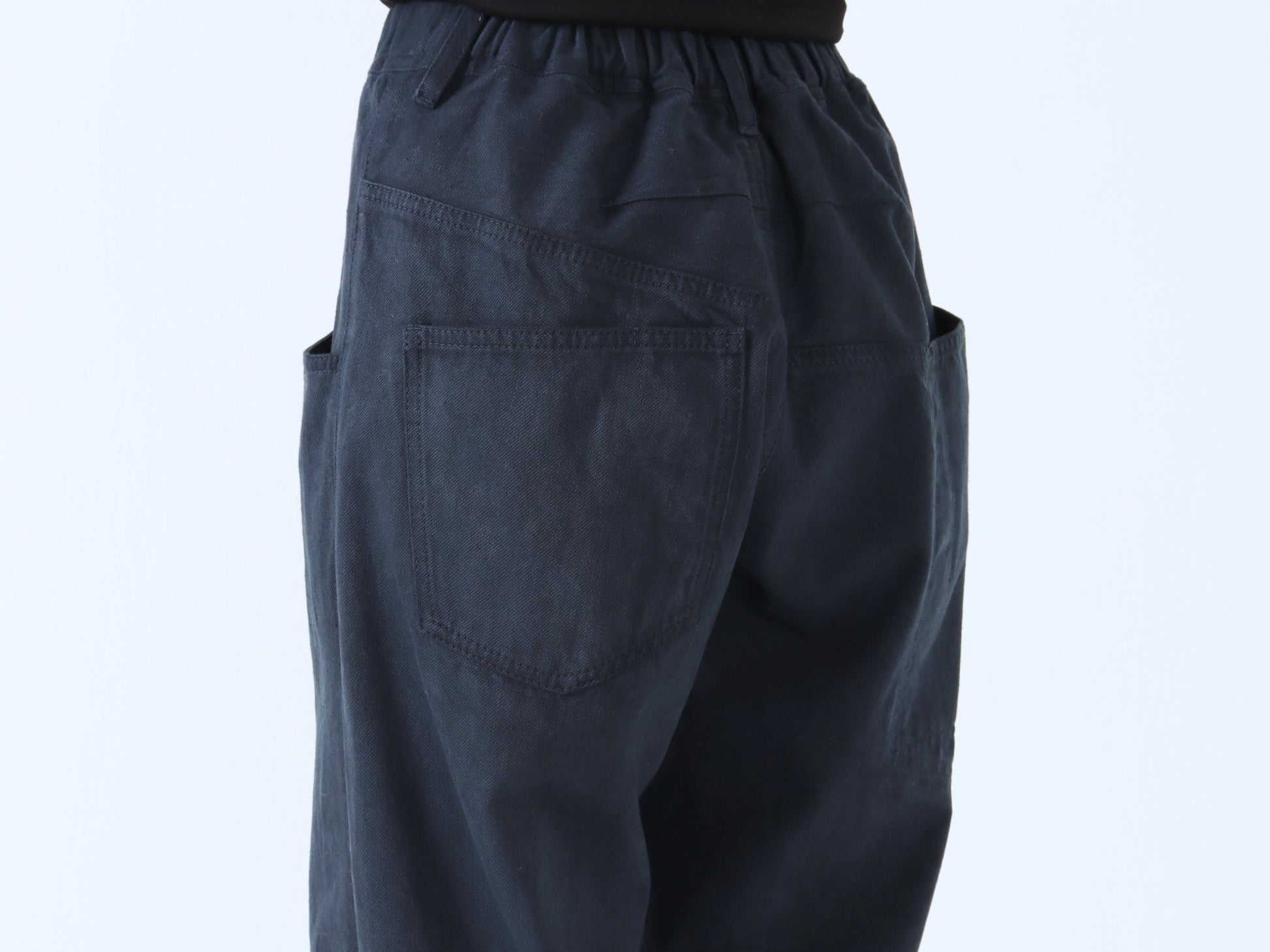 また、膝の両サイドにタックを施した、ワイドなシルエットながら軽快さと立体感のあるフォルムが特長。