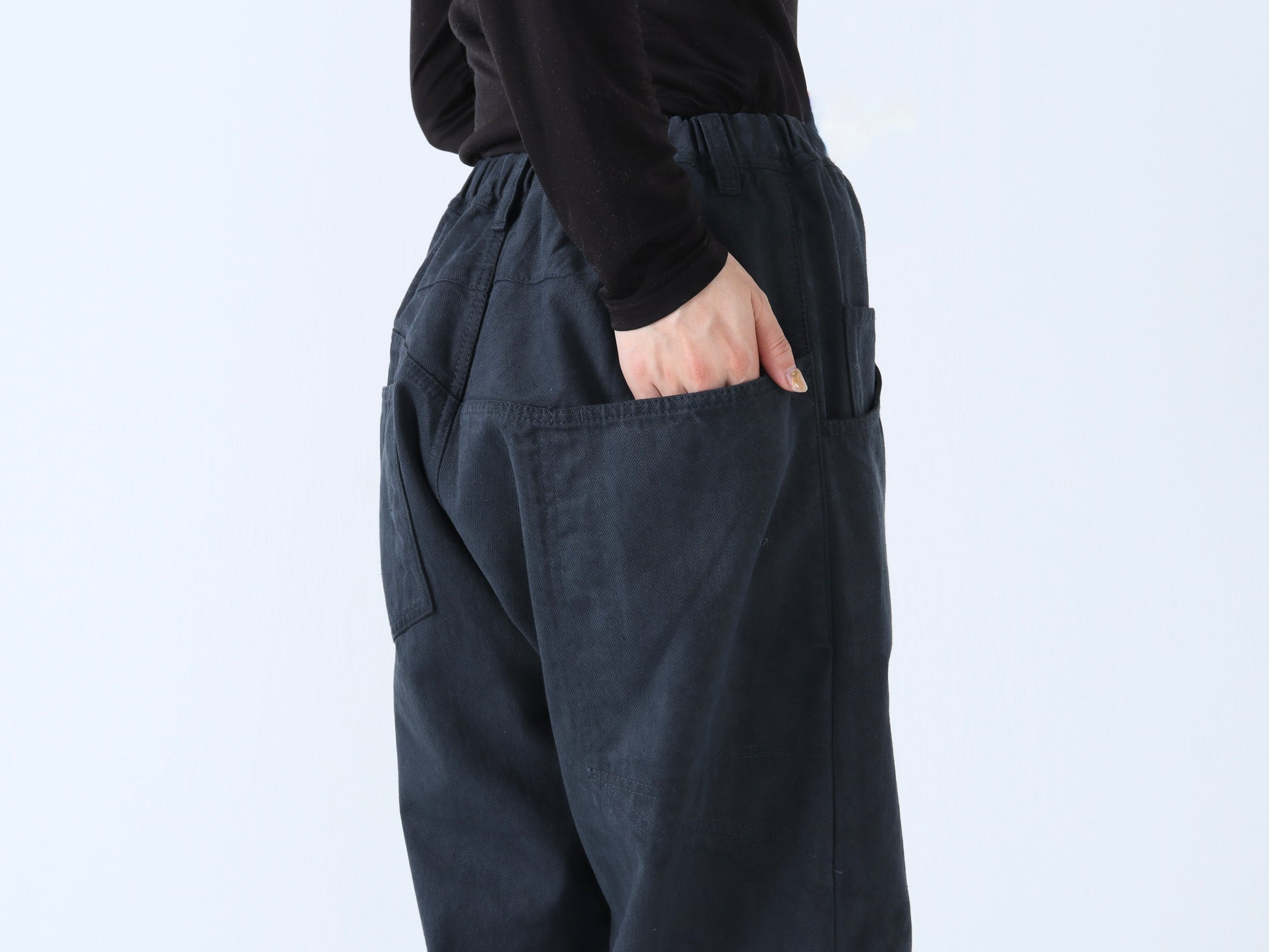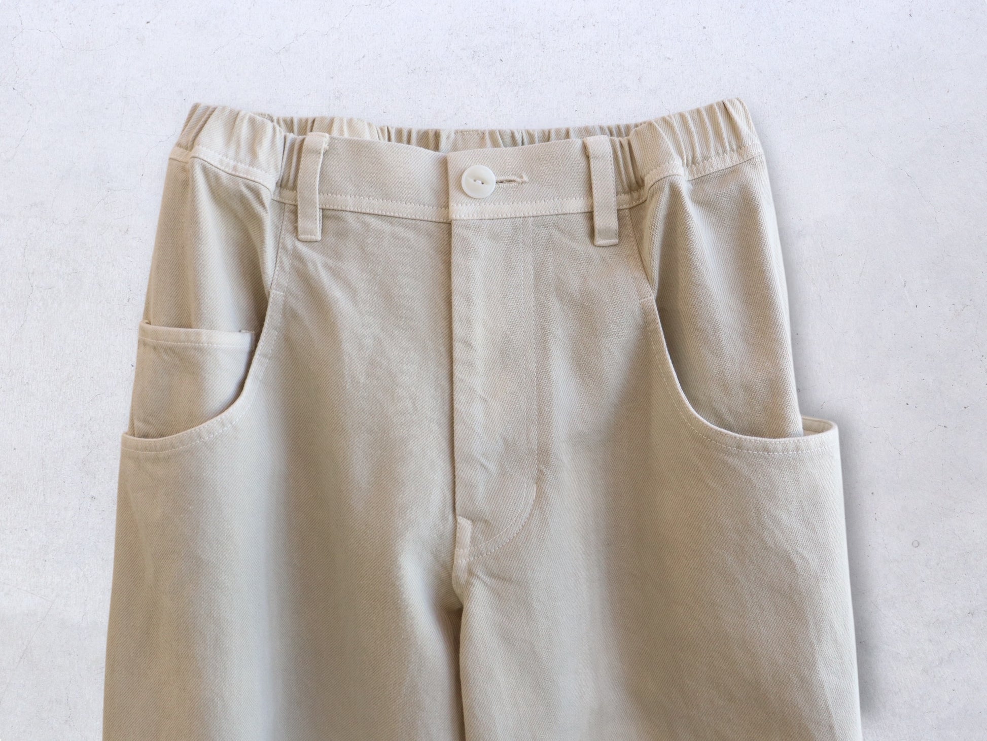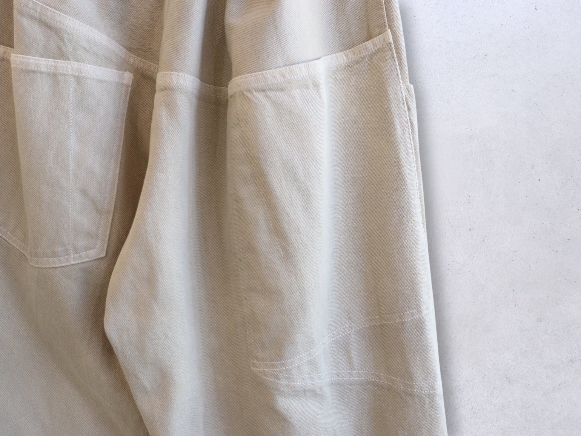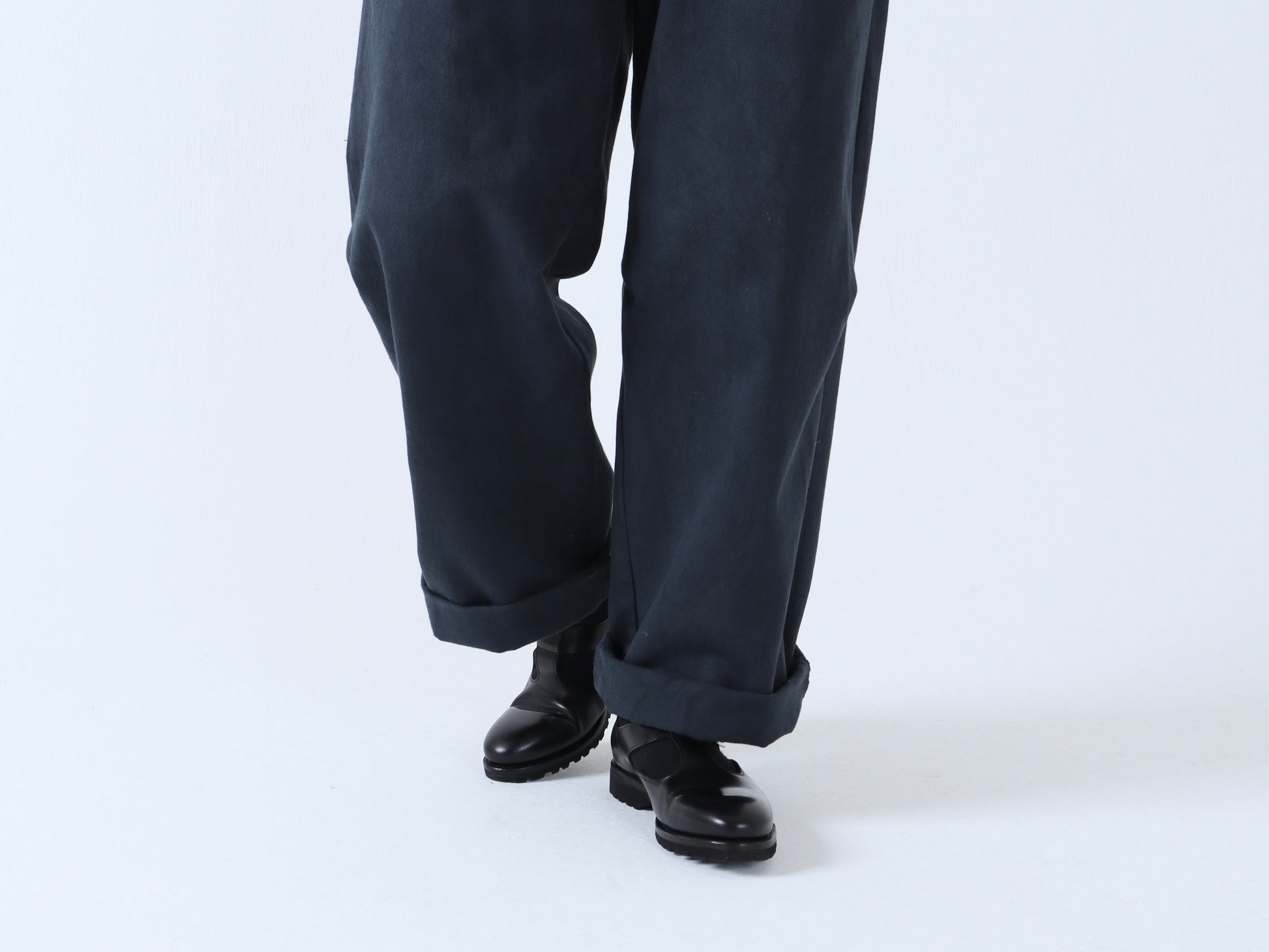 また、膝の両サイドにタックを施した、ワイドなシルエットながら軽快さと立体感のあるフォルムが特長。