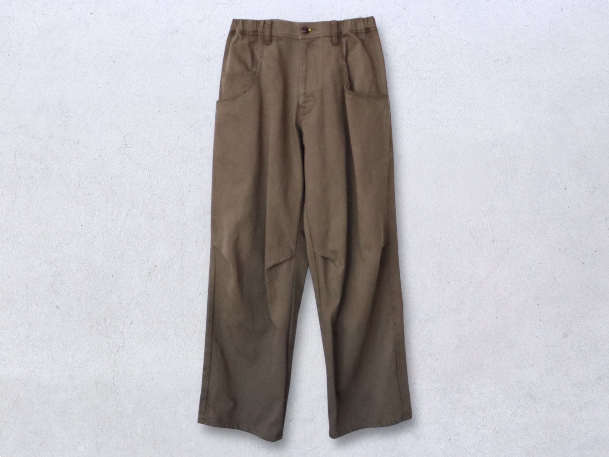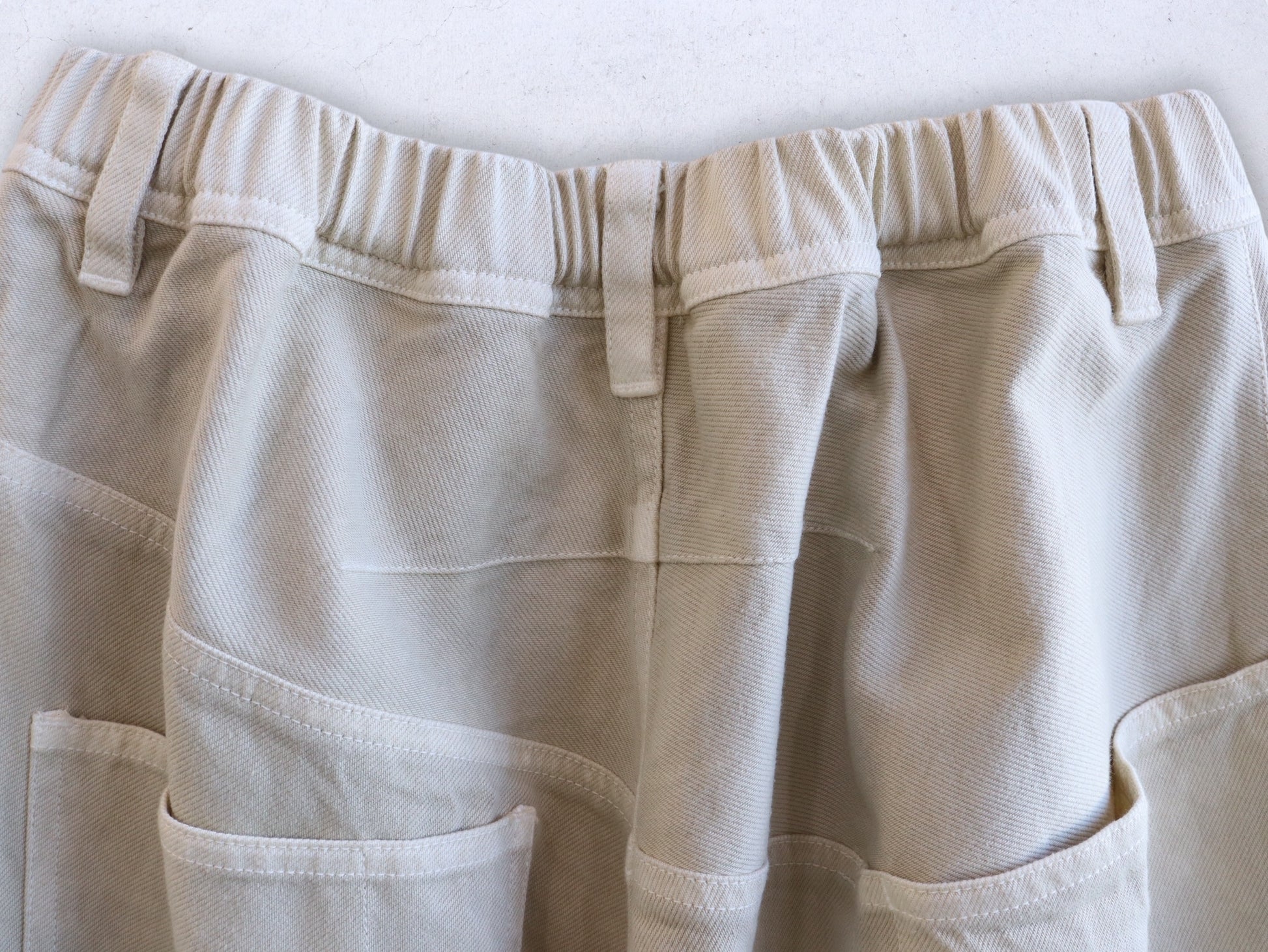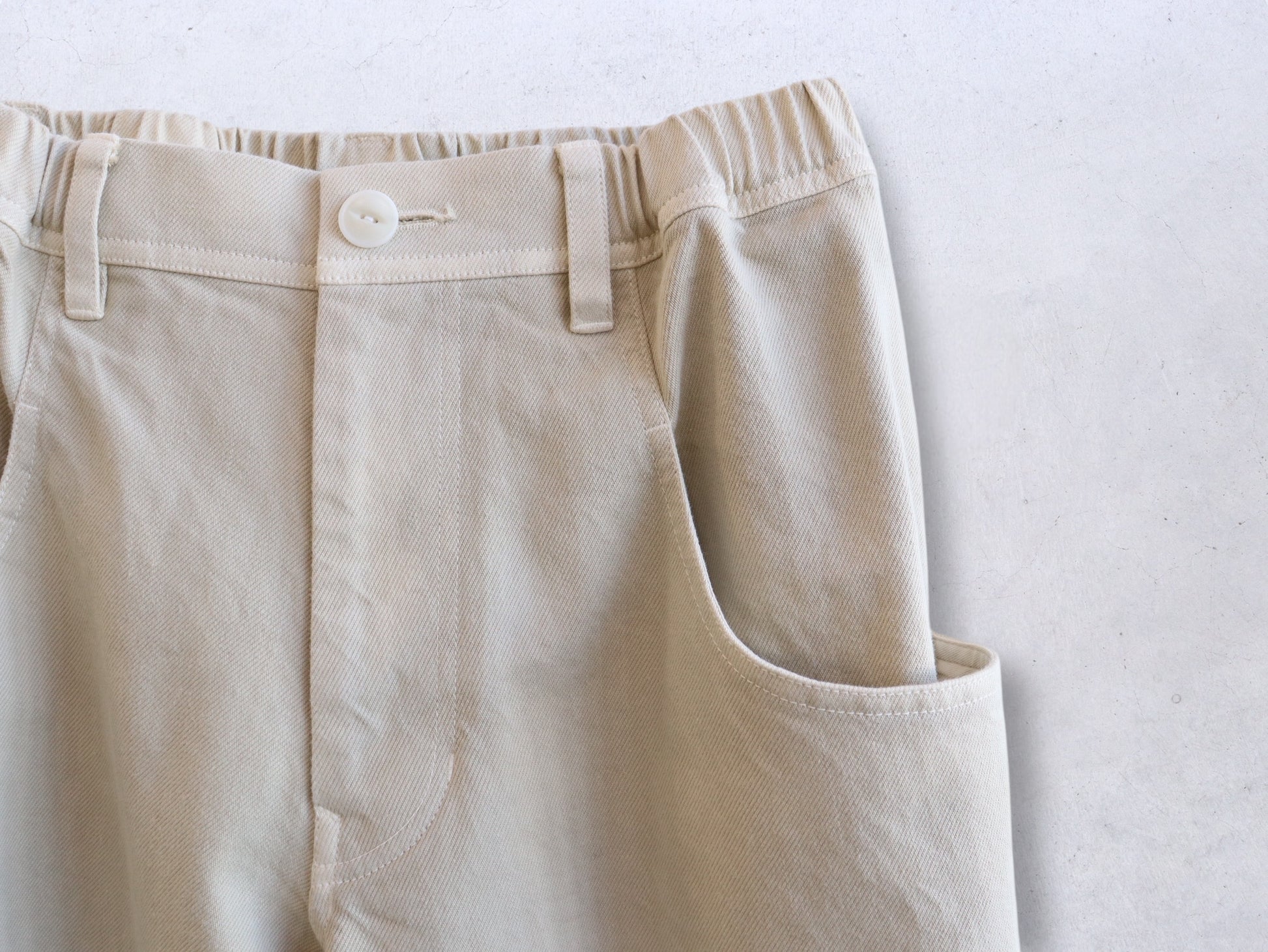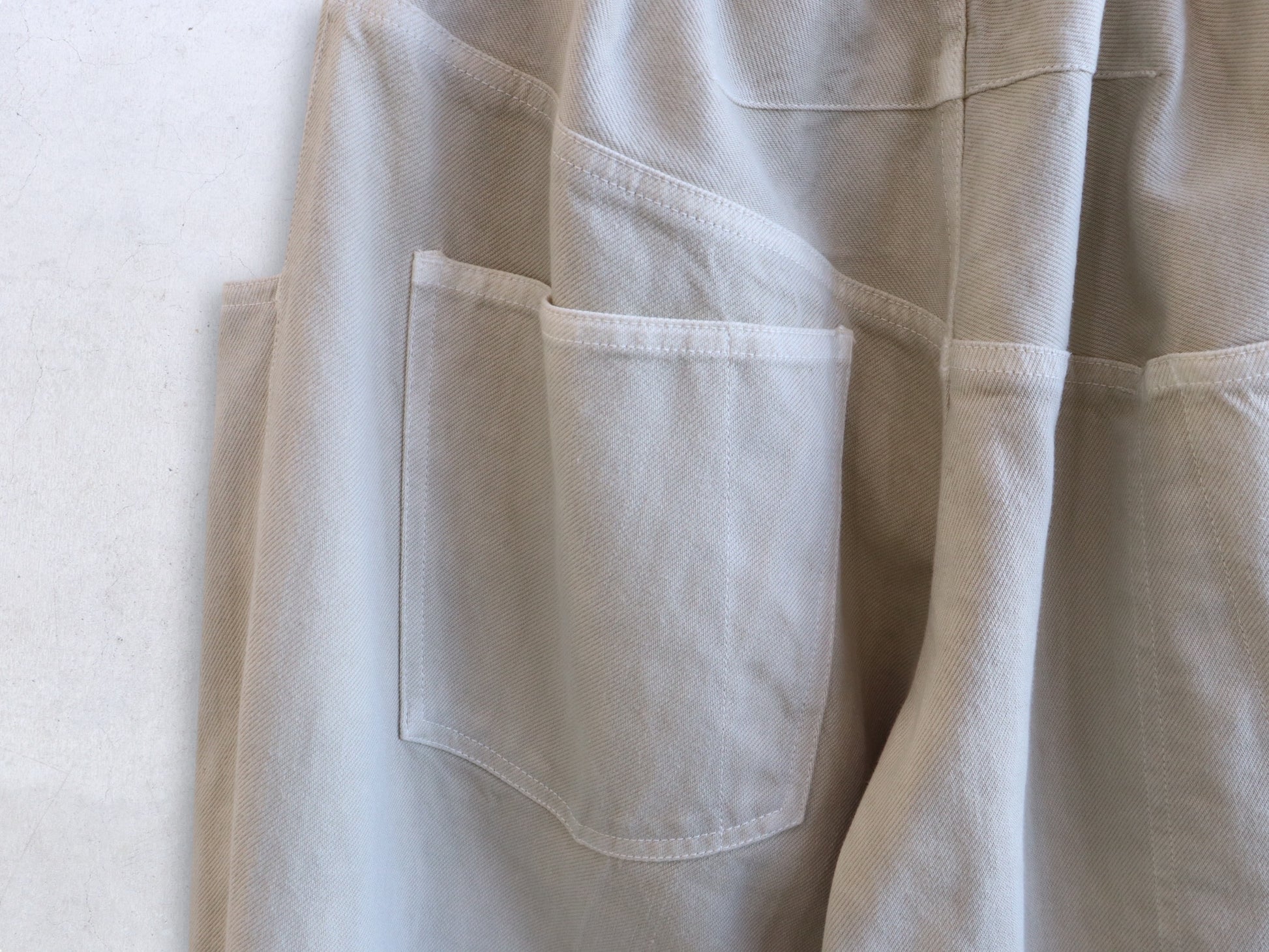 また、膝の両サイドにタックを施した、ワイドなシルエットながら軽快さと立体感のあるフォルムが特長。