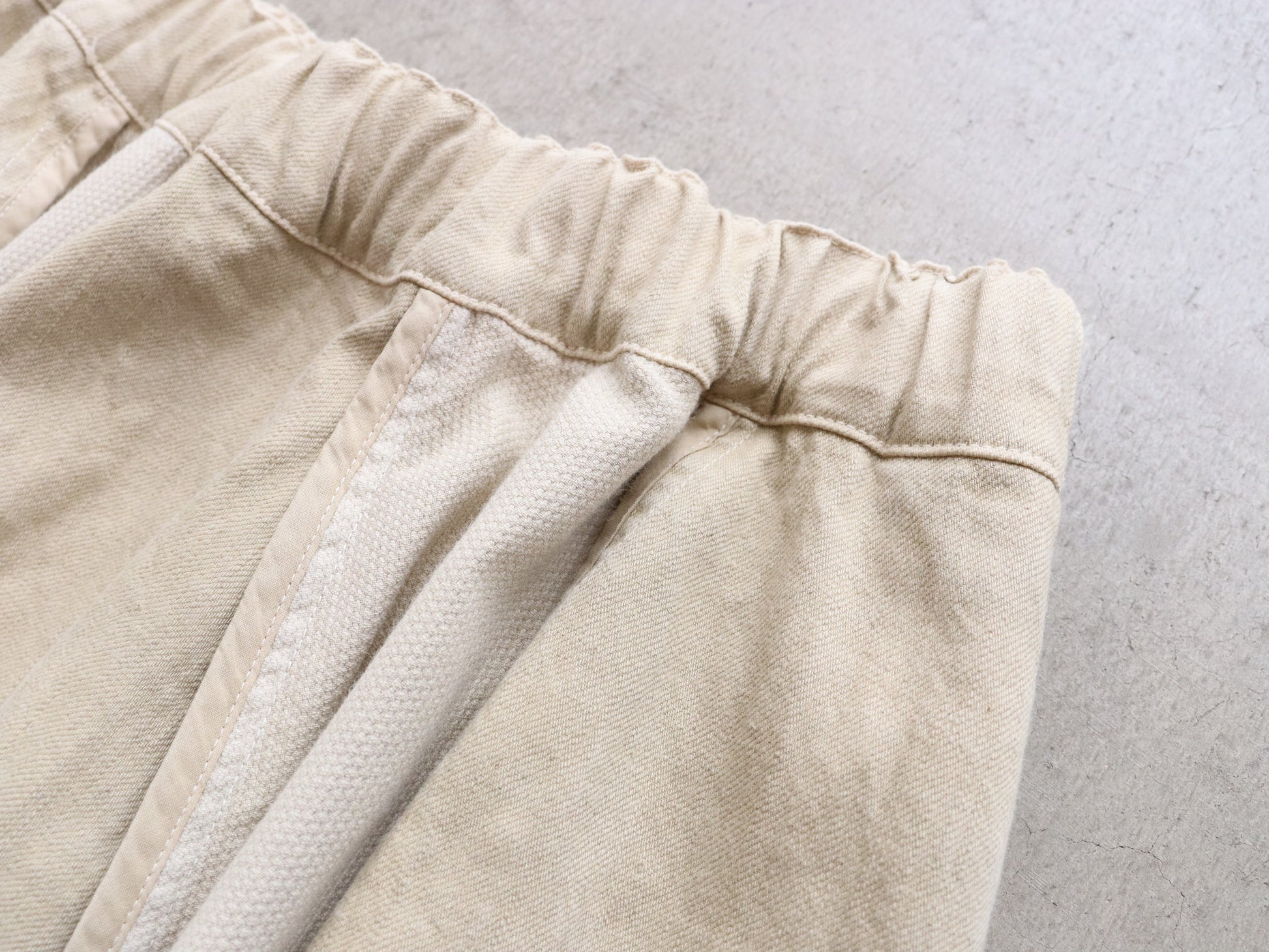 製品染めによる色の陰影が生地に豊かな表情を生み、シンプルなトップスと合わせるだけで着映えが叶います。