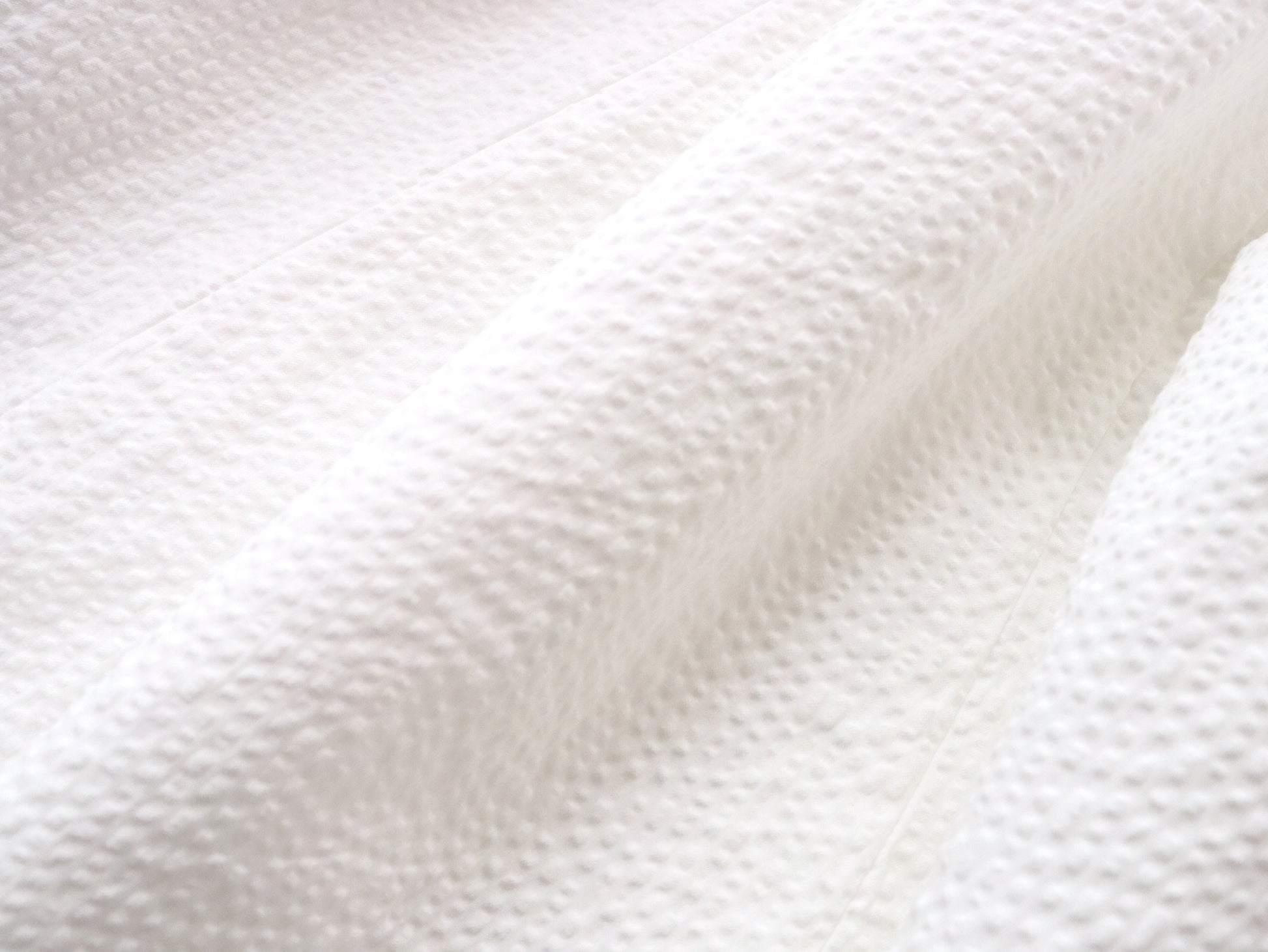 経糸の張力に差をつけて織り上げることで、表面に自然な凹凸を生み出しています。