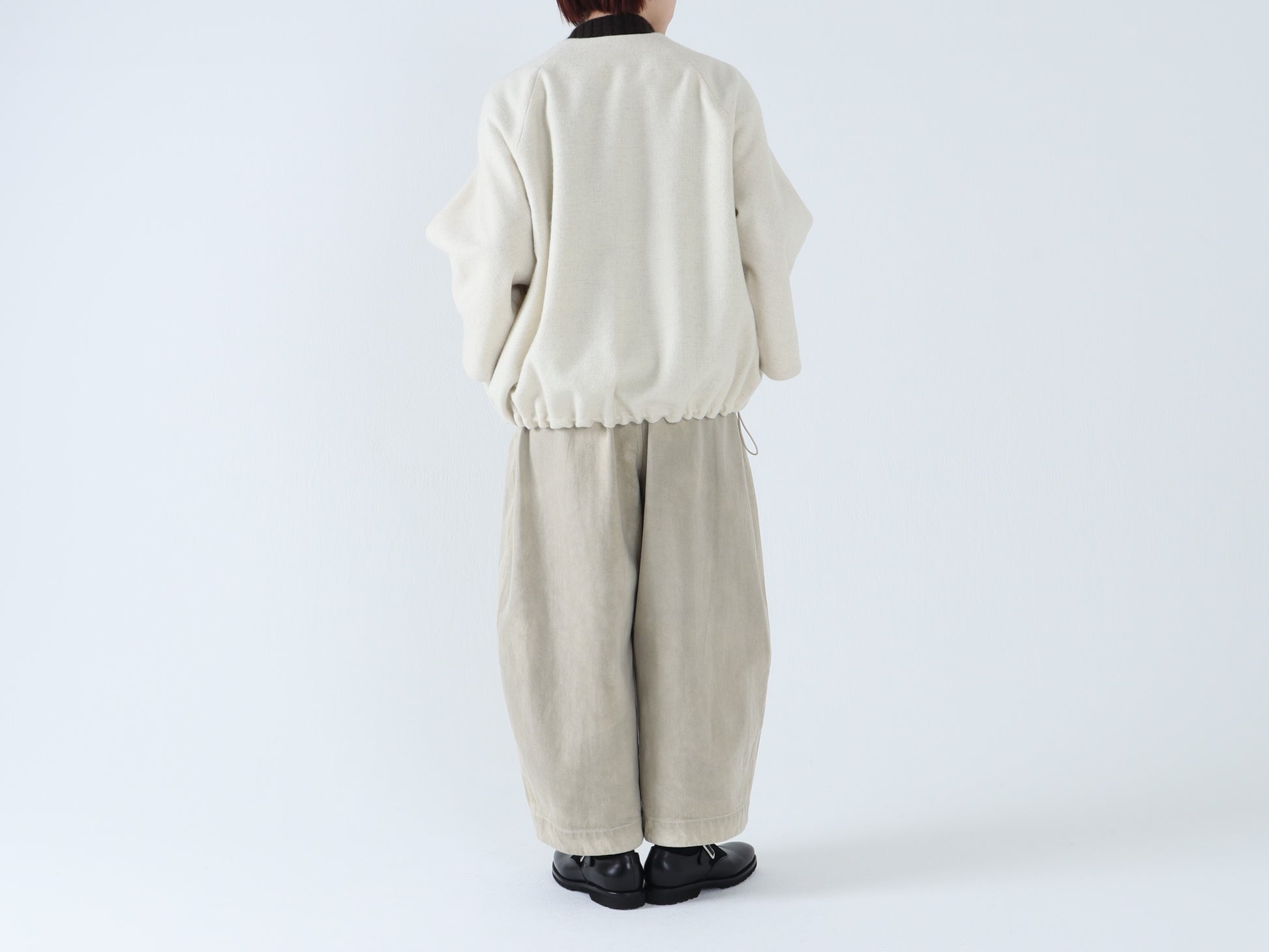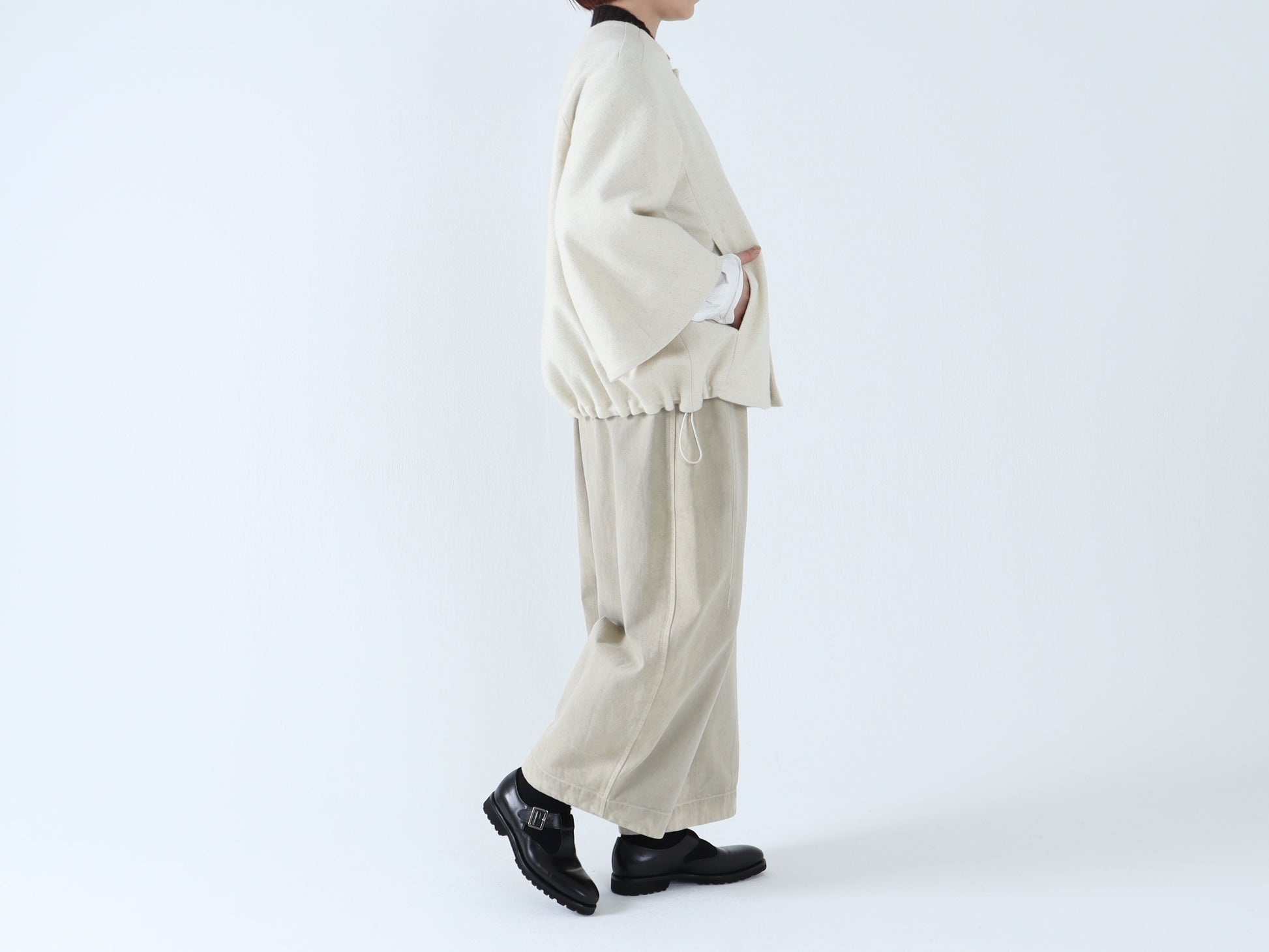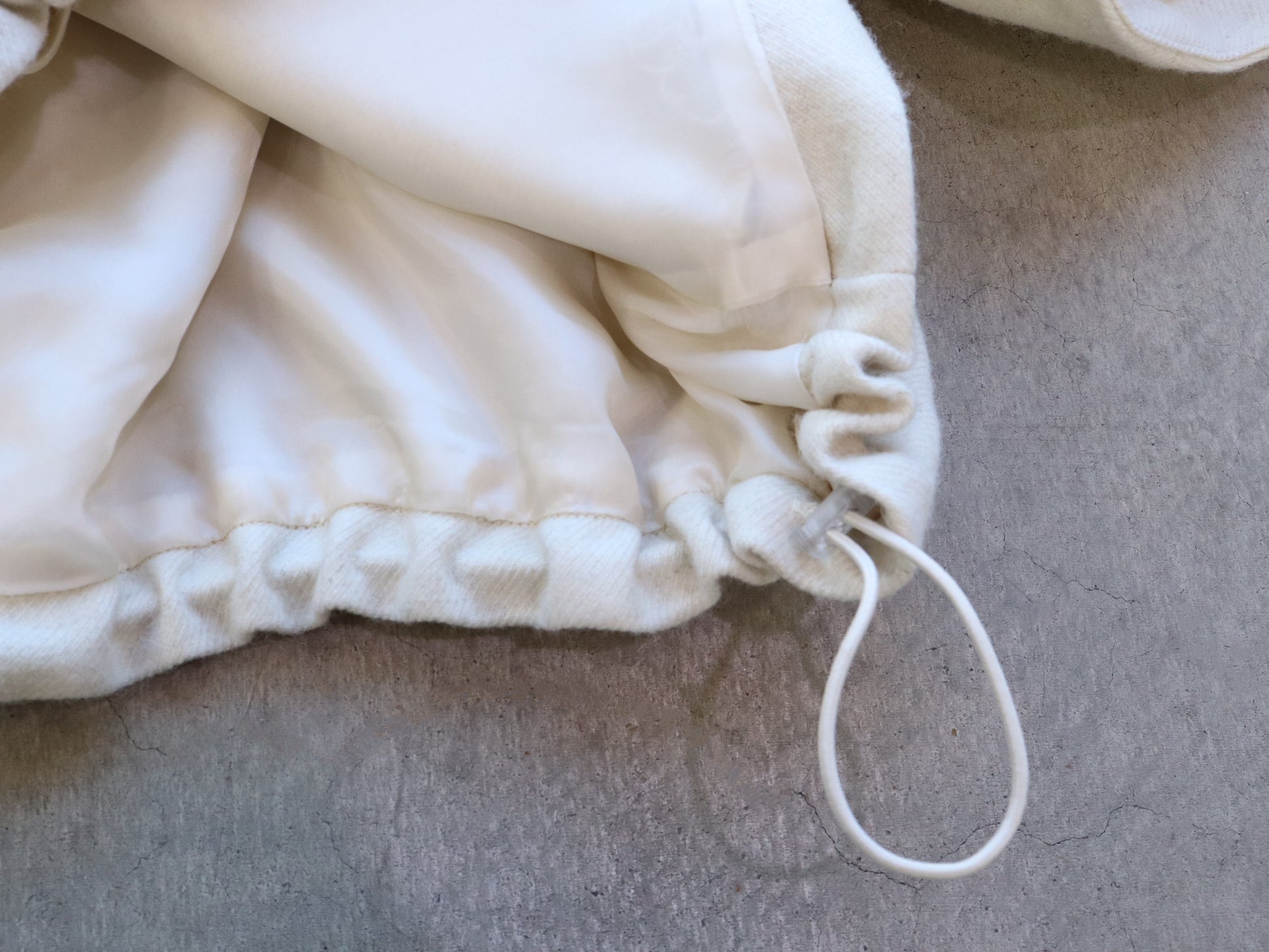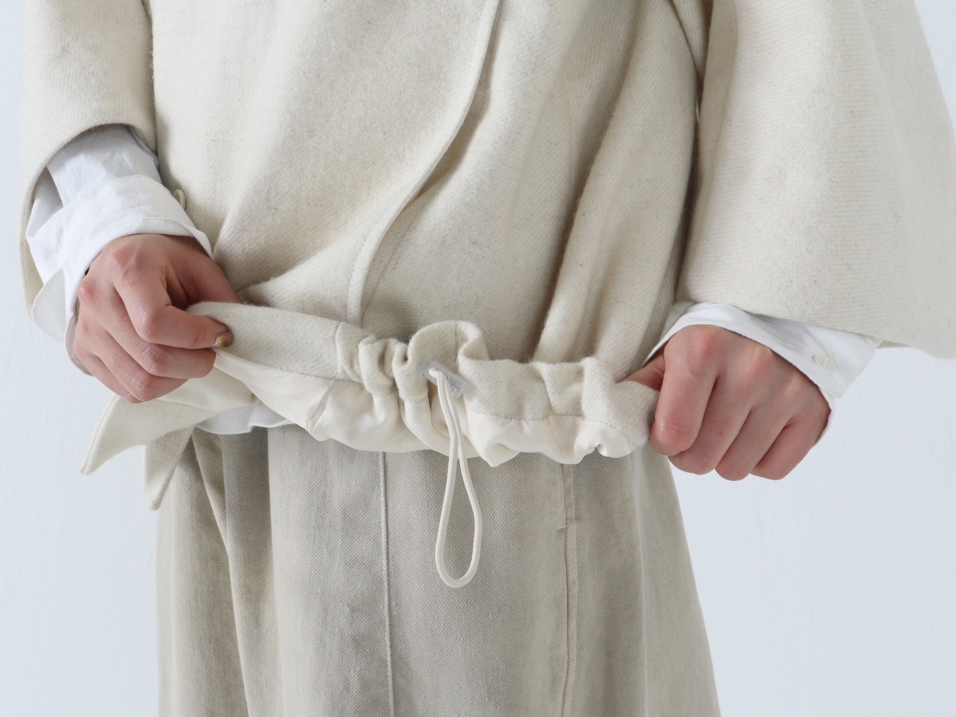 裾にはドローコードを配し、絞ることでふんわり感が増し、シルエットの変化も楽しめます。
