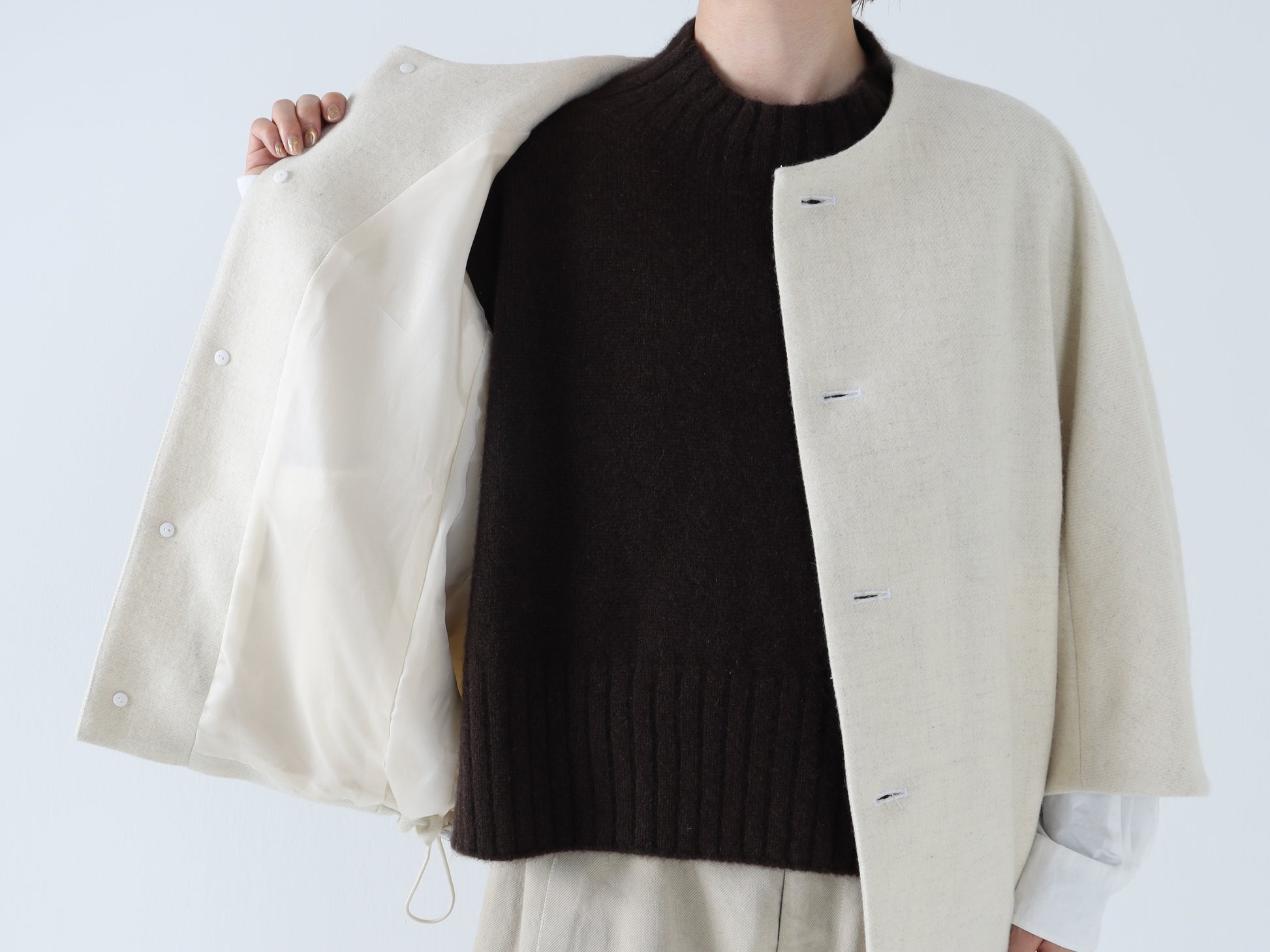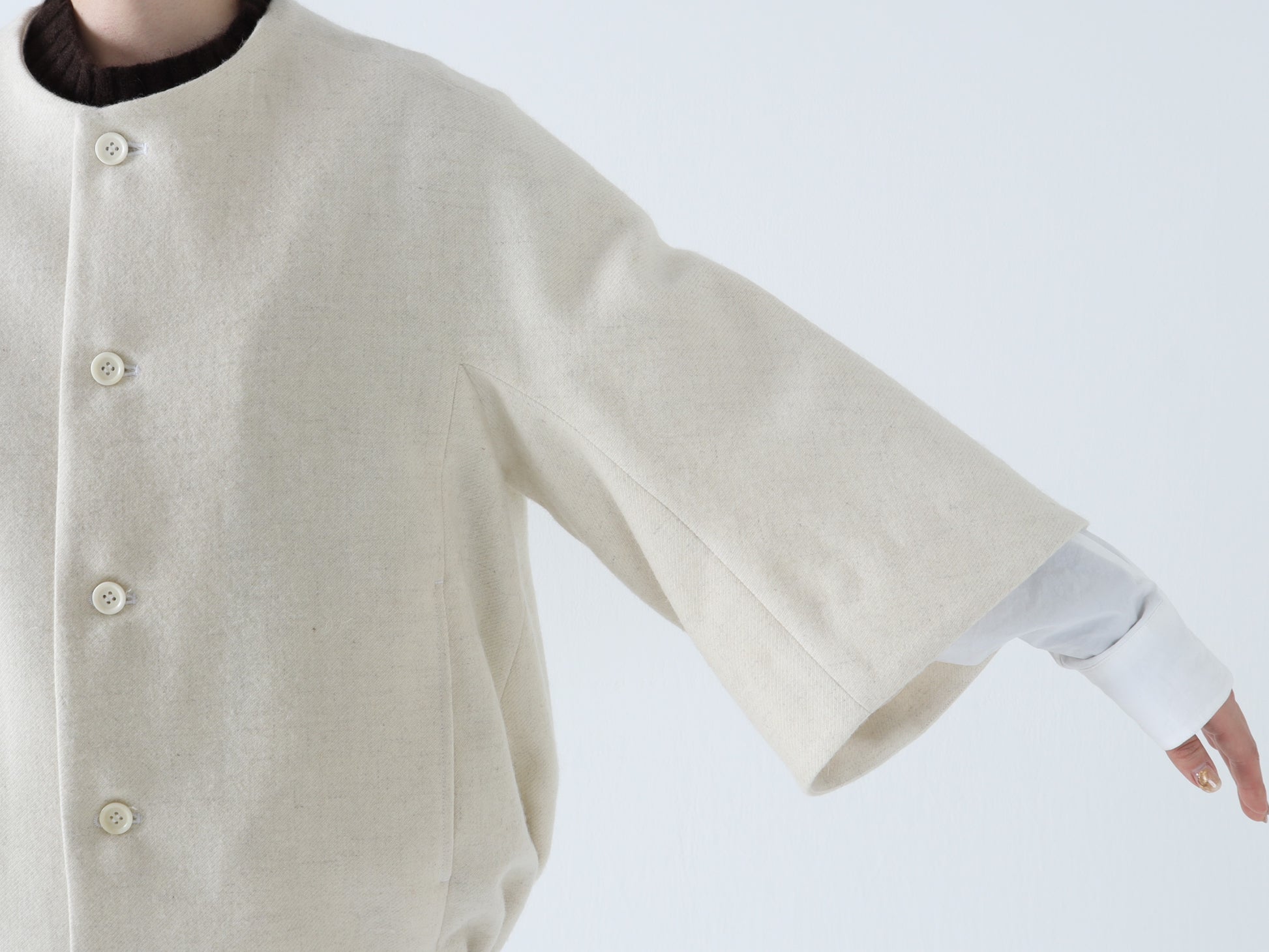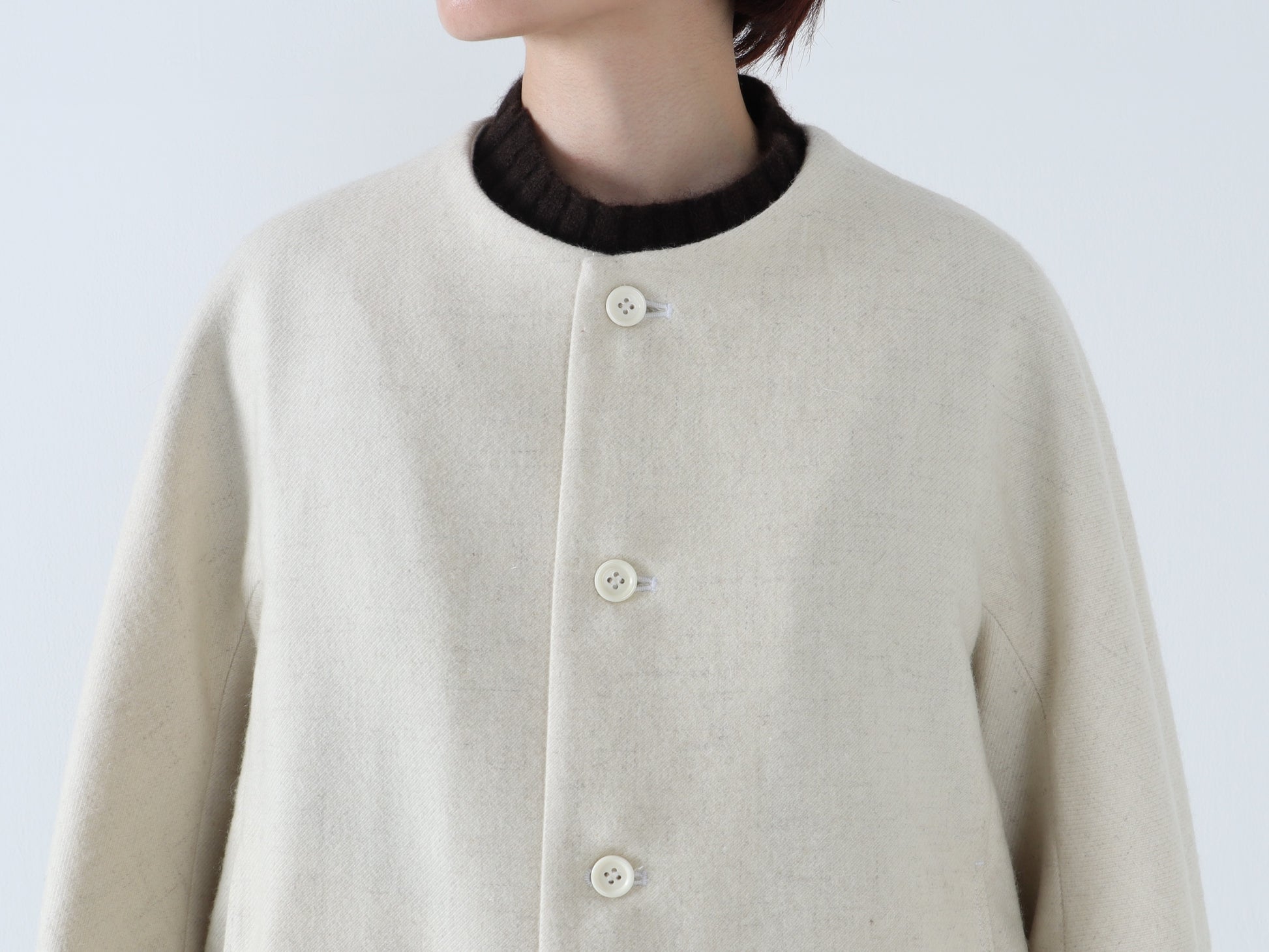 裏地付きでしっかりとあたたかく、ウール素材のホワイトは冬のコーディネートを明るくしてくれる一着です。