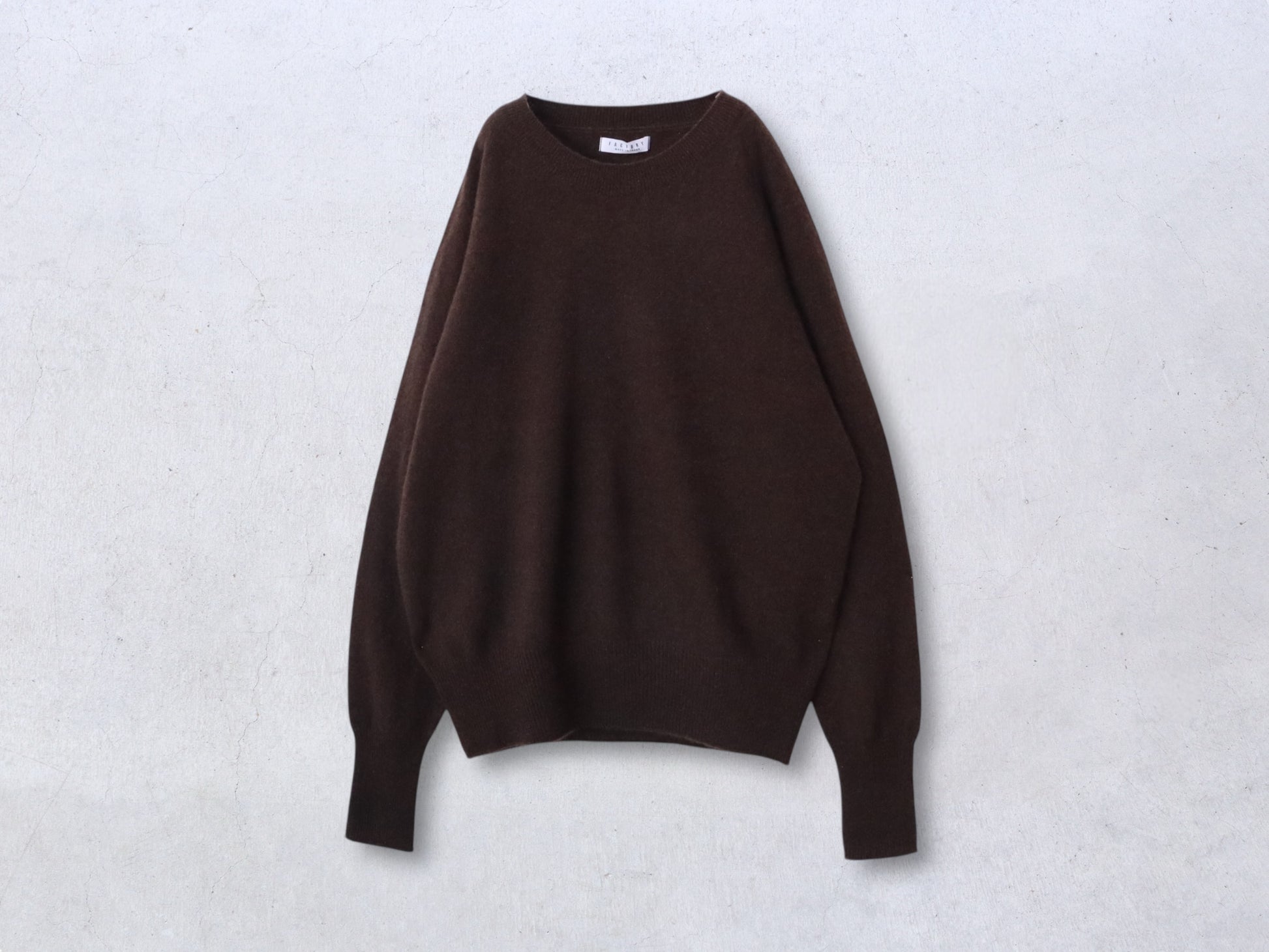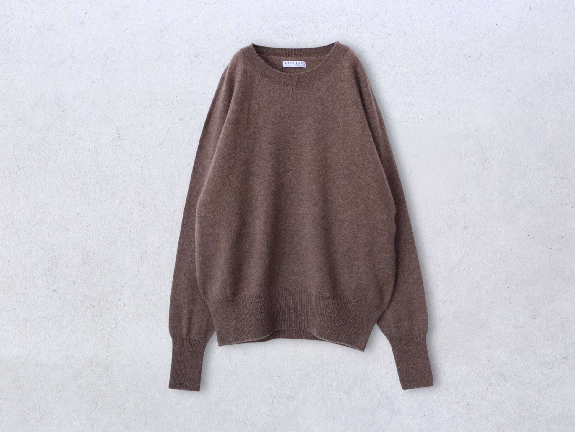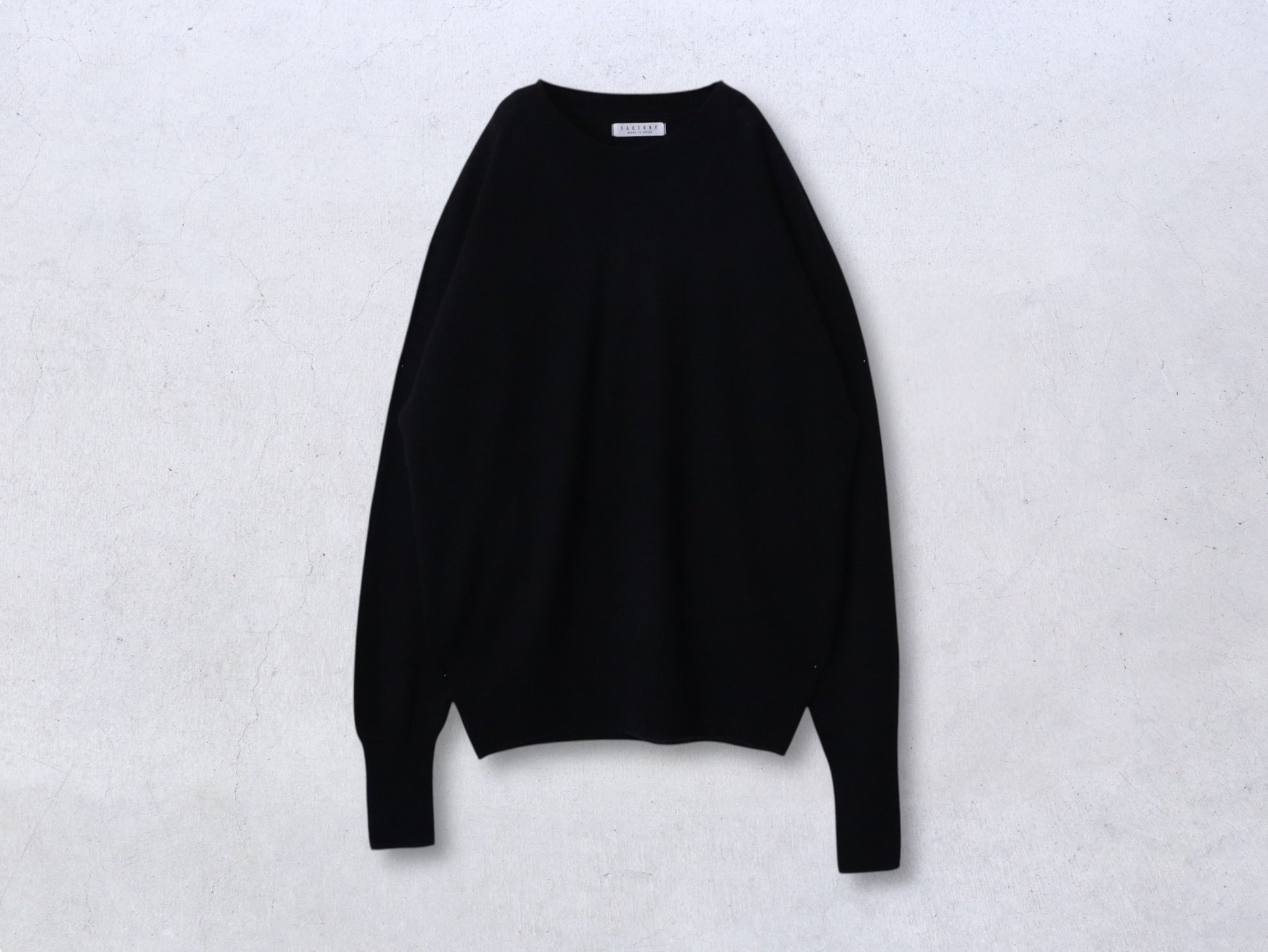 すっきりとしたデコルテを作るラグランセーター。