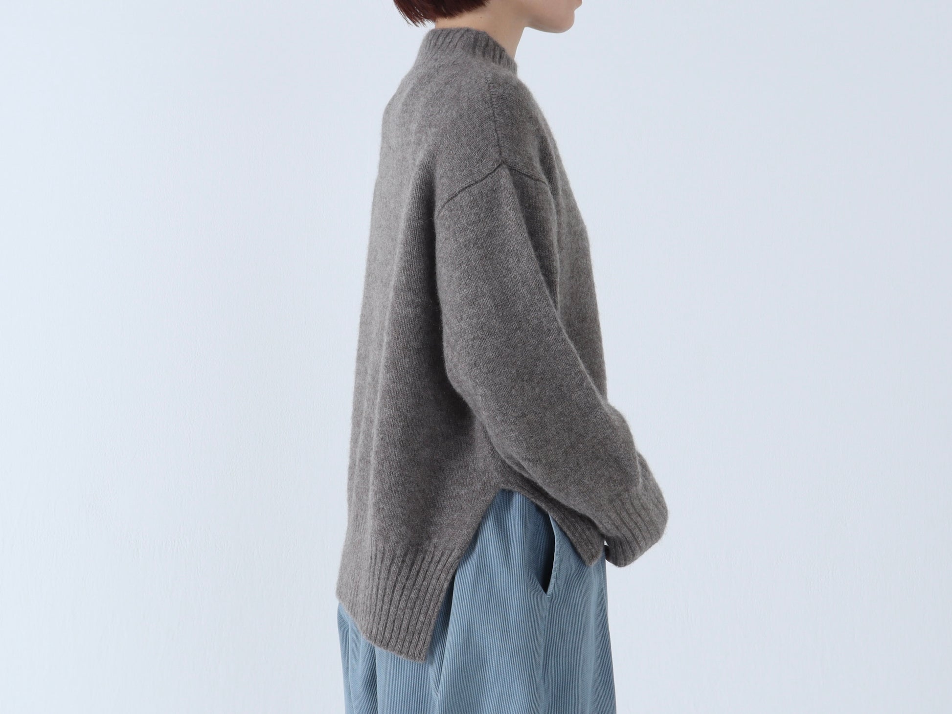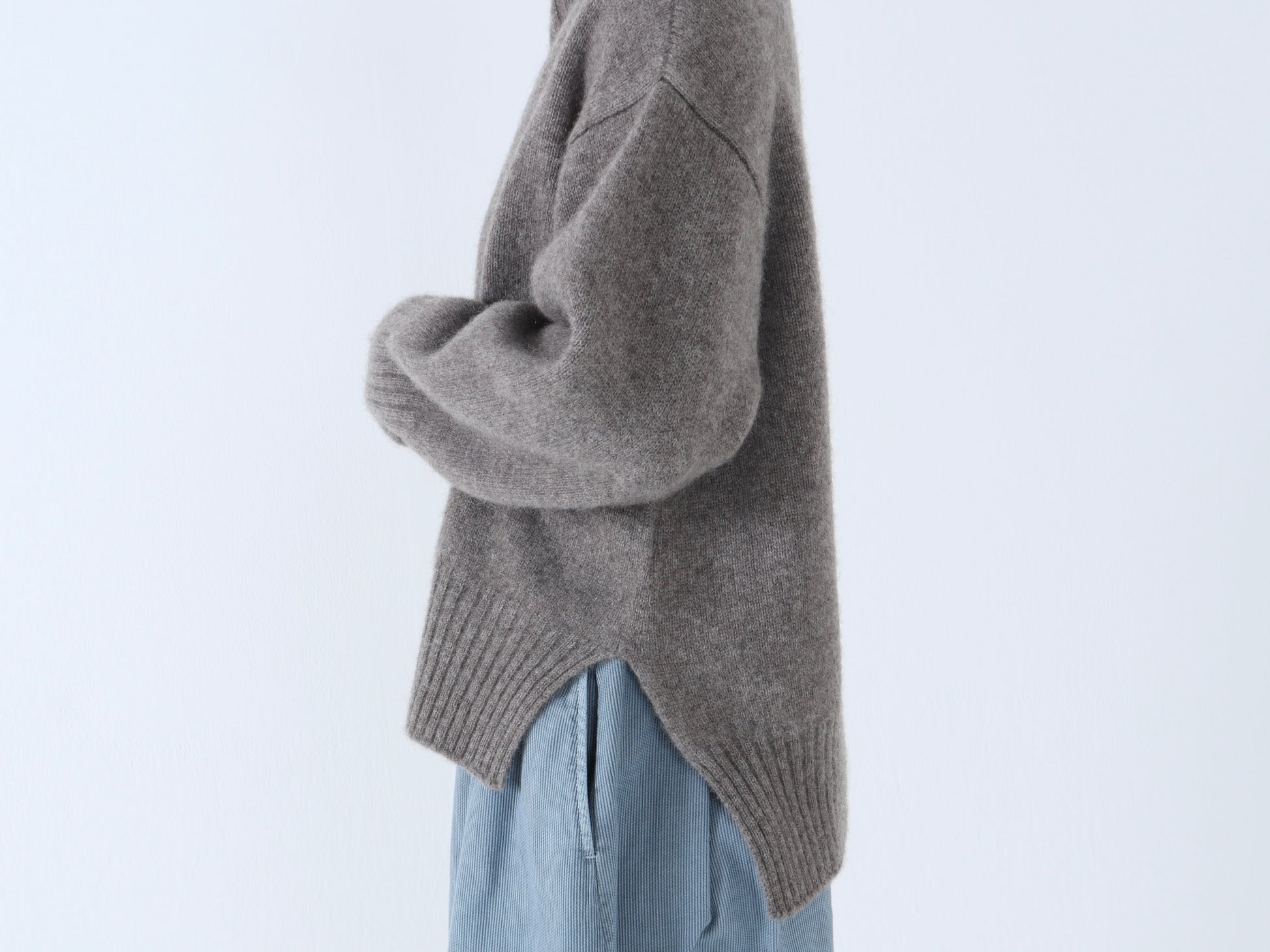 立ち襟が抜け感を出し、サイドスリットでスカートに合わせやすいデザインです。