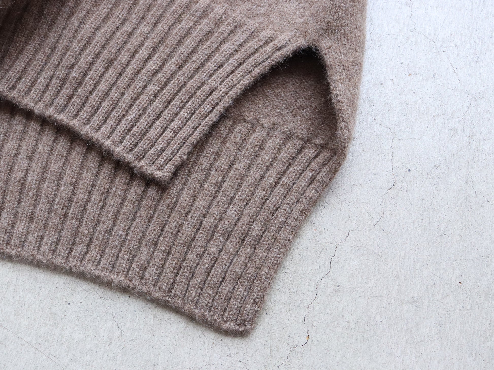 立ち襟に合わせた長めの袖口とリブは、シャツと重ねてもきれいです。